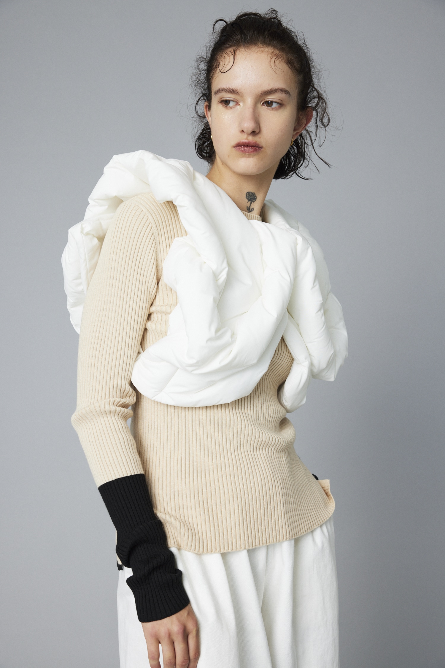 ニット製品はニット素材の特性上、サイズ感には若干の個体差がございます。予めご了承ください。