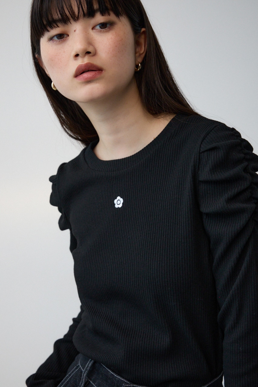 ・MARY QUANTのシンボル、デイジーをフロントに刺繍したリブトップス。: