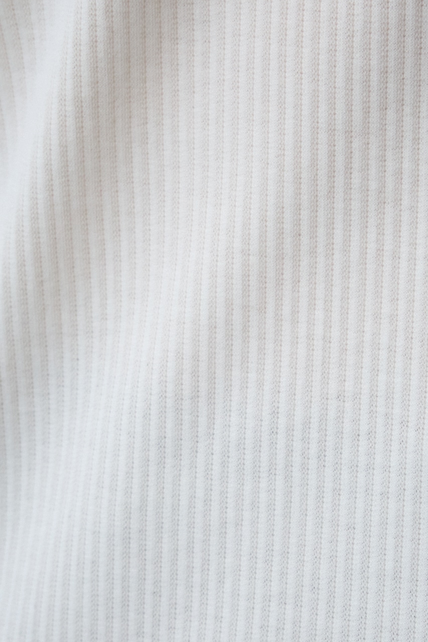 ・伸縮性のあるリブ素材を使用しているので、程よいフィット感で女性らしいラインを叶えてくれます。: