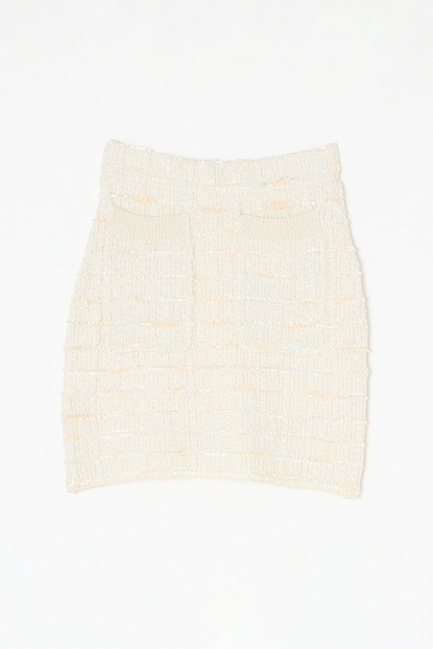■POINT:数種類の糸を使用したこだわりのツイードニットスカート。ラメ糸をミックスして表面感のある一枚に仕上げています。