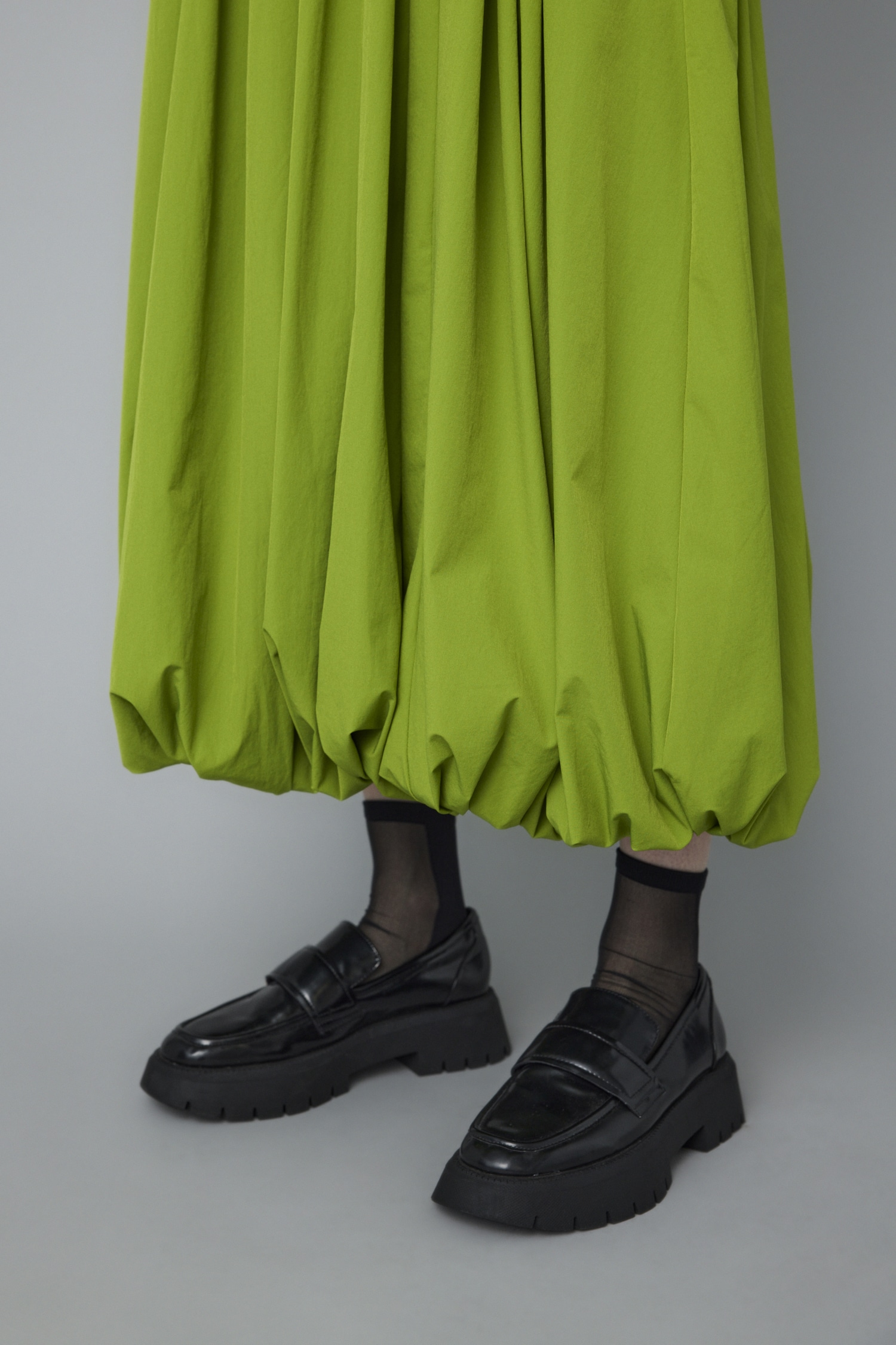 スカート部分はナチュラルな表面感とハリの有るポリエステル/ポリウレタン素材を使用しています。