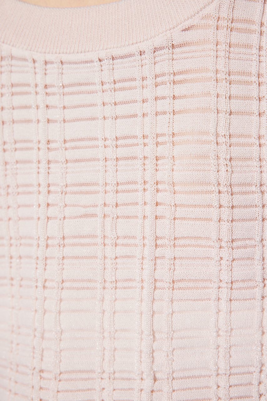夏らしいサラッとしたタッチ感のニットは、ラメ糸が編みこまれていても派手過ぎない優しい印象に。