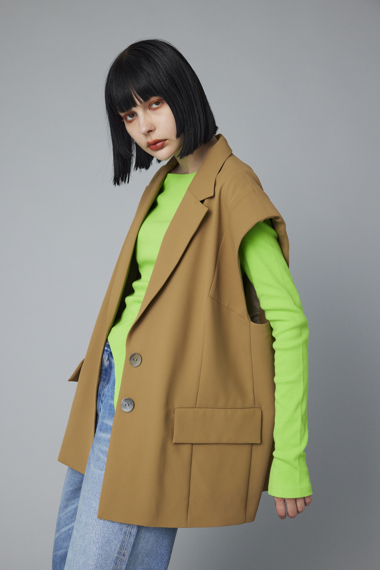同素材でパンツの展開もあり(530HAY31-0801 Tuck wide pants)、セットアップもおすすめ。