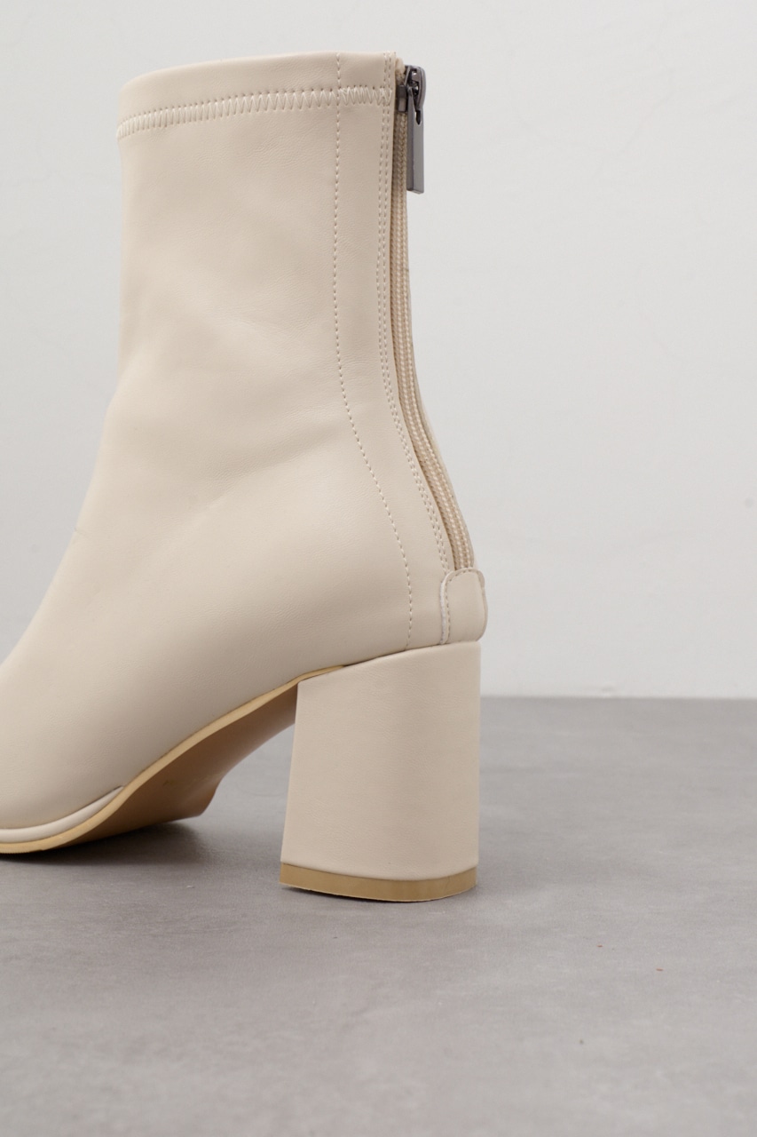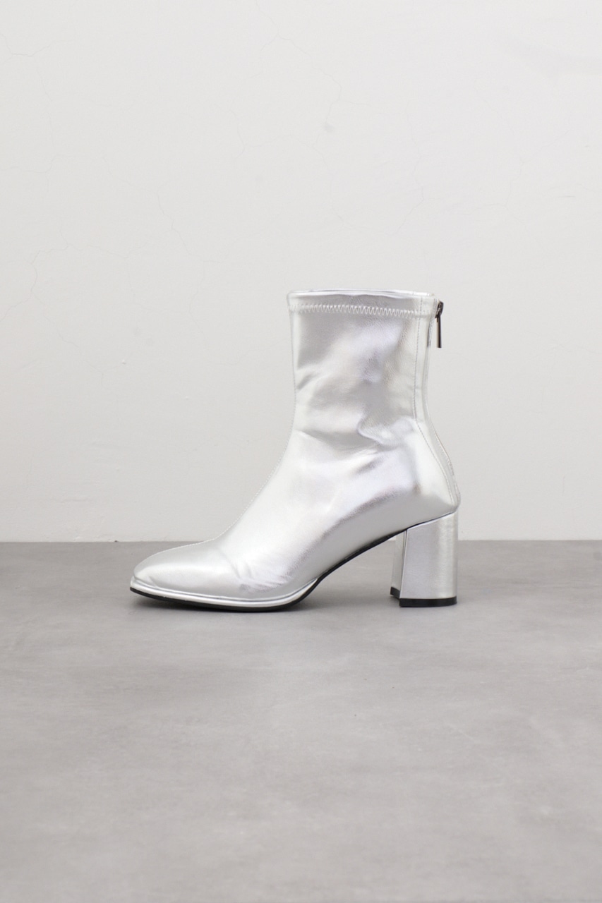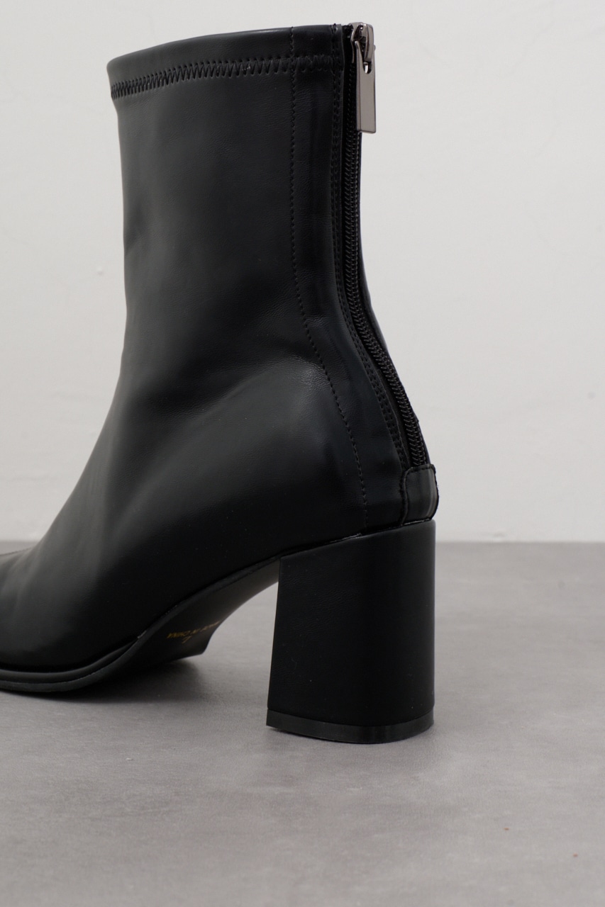 ■商品(デザイン)ポイント:魅力的な美脚ラインを演出するストレッチ合皮のショートブーツ。