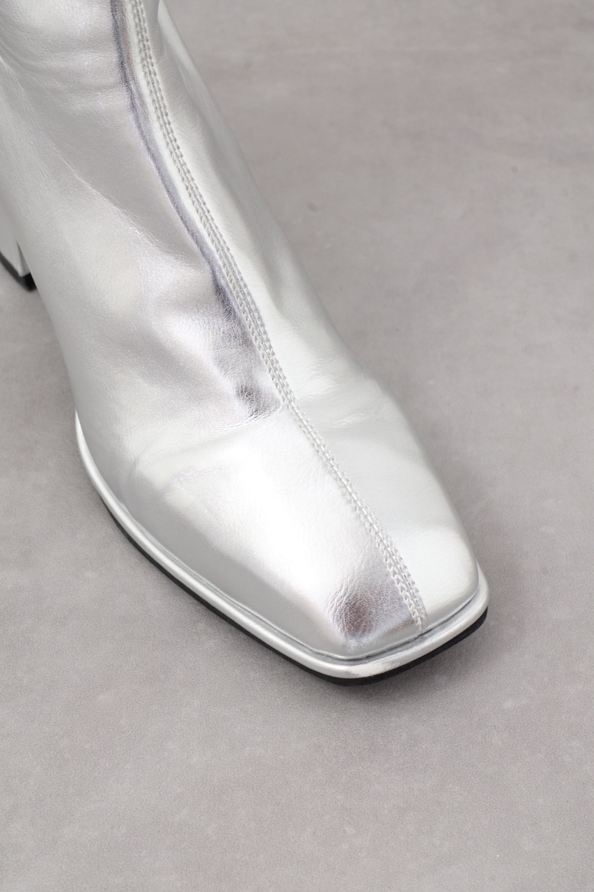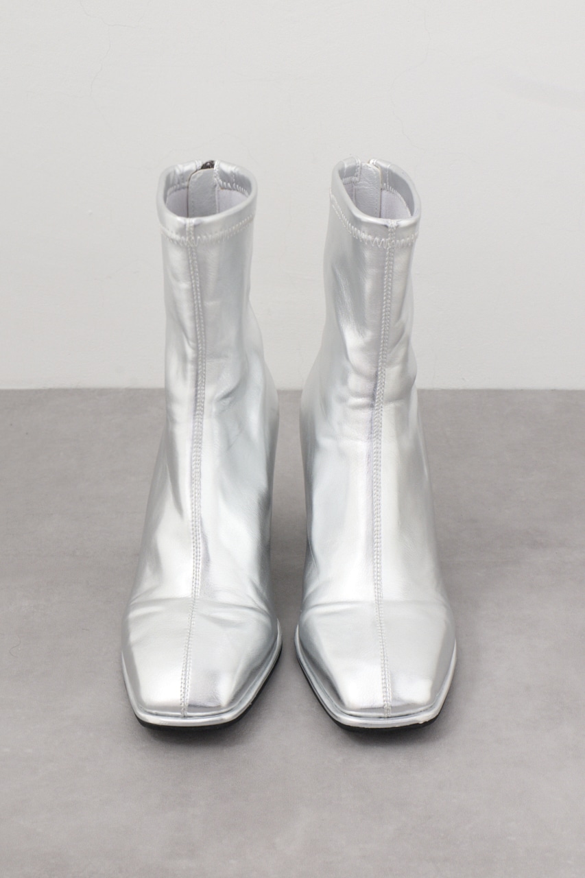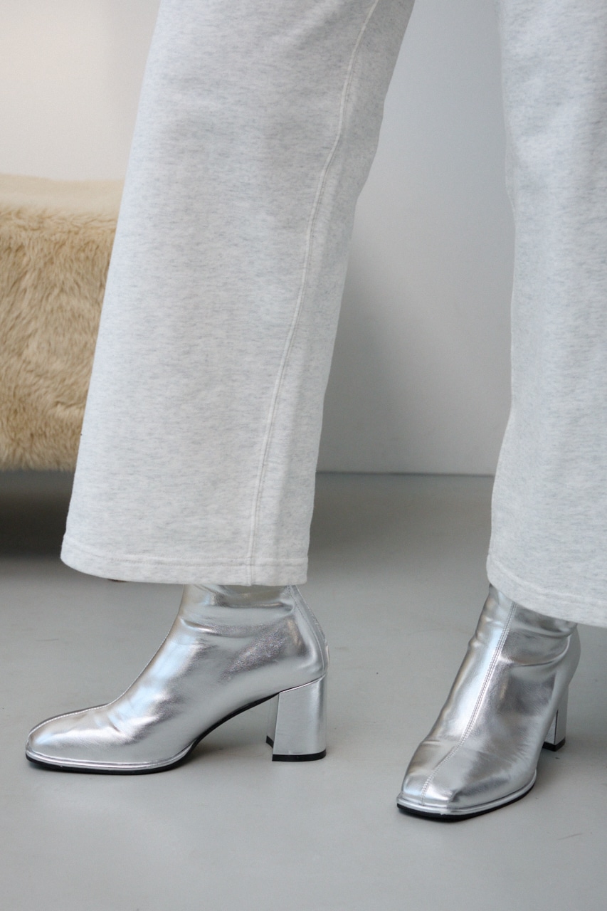 ■商品(デザイン)ポイント:魅力的な美脚ラインを演出するストレッチ合皮のショートブーツ。