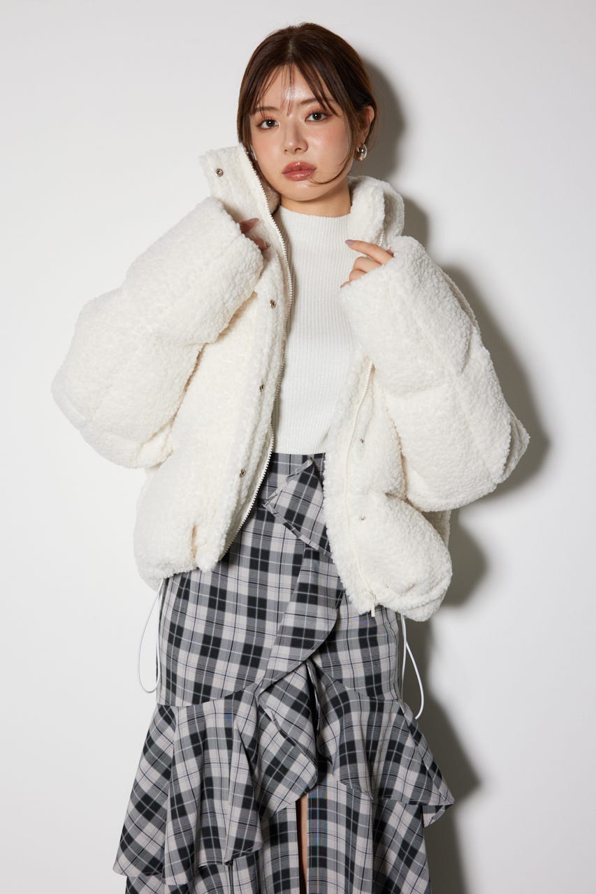 固すぎないフェイクボアの毛並みと、丸みのある女性らしいシルエットが
