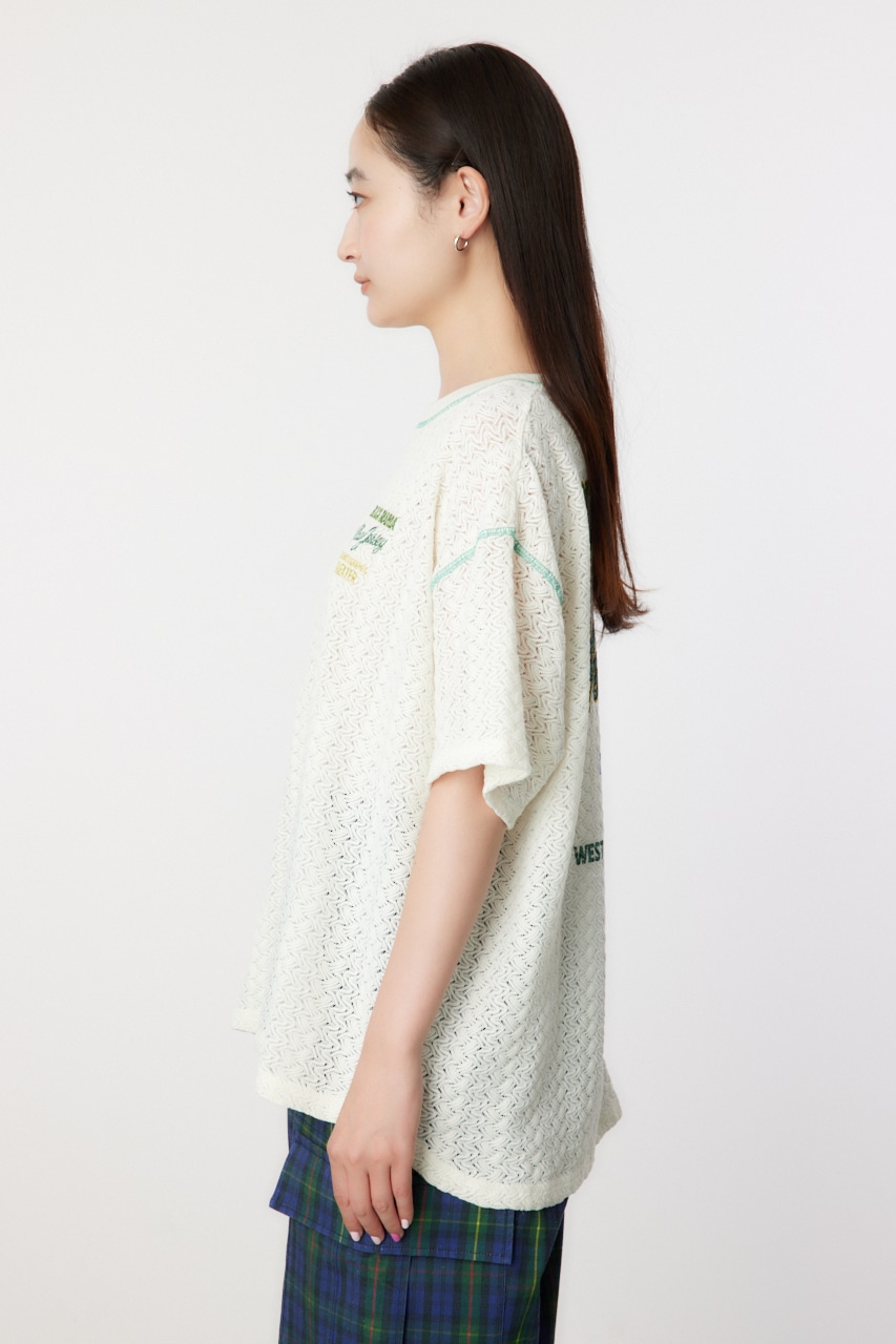 ラッセルレースの凹凸感が立体的で、程よい透け感のビックTシャツ。いつものTシャツではない一味違った表情を演出。ゆったりとしたサイズ感で体のラインを拾いすぎず、華奢見え効果も期待できます。