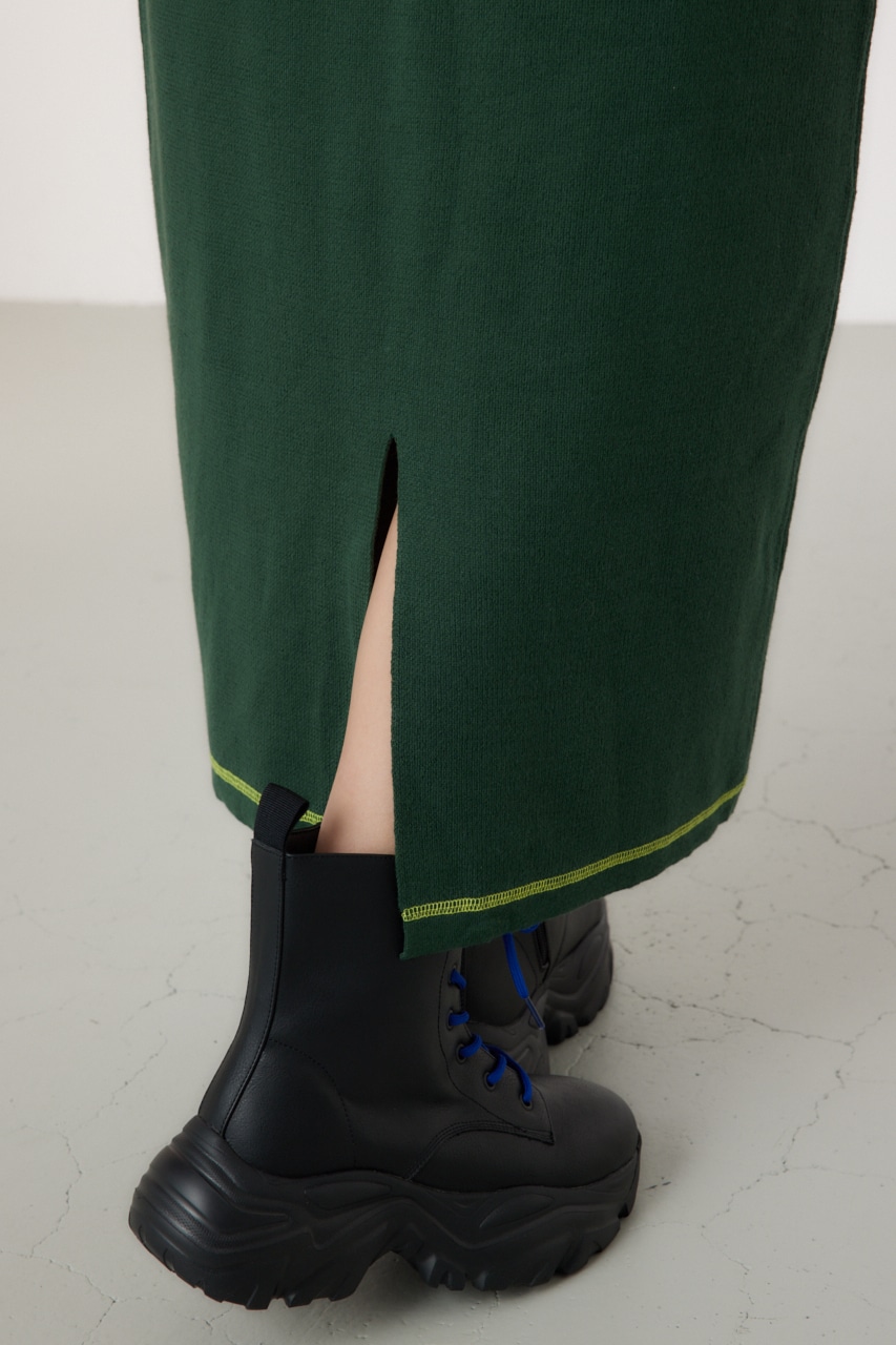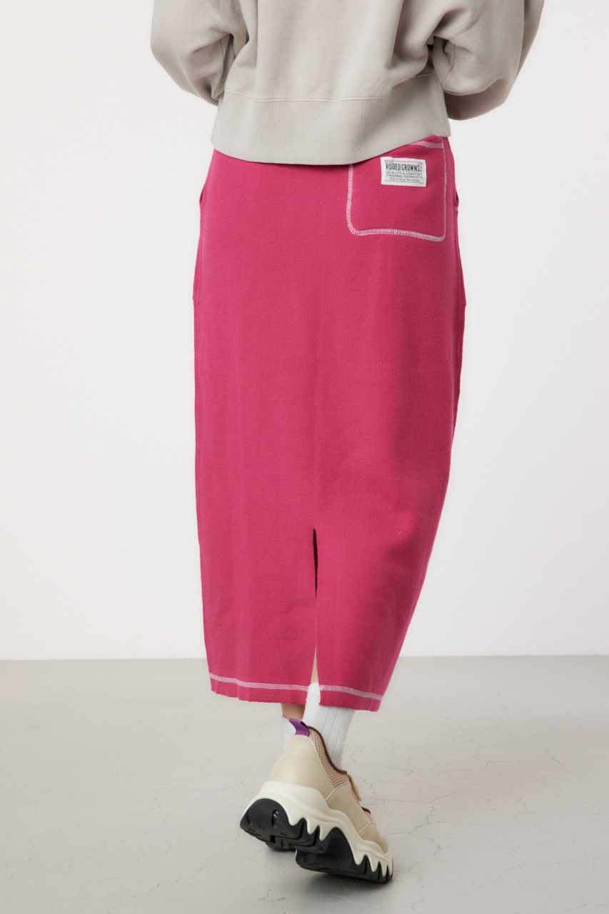 ※マシンウォッシャブル可能アイテム スウェットライクでソフトタッチの素材を使用したシンプルなニットスカート。配色ステッチと後ろのスリット開きがポイント。同素材で展開しているパーカー(420HAH70-0781)とのセットアップで着用するのもおすすめ。