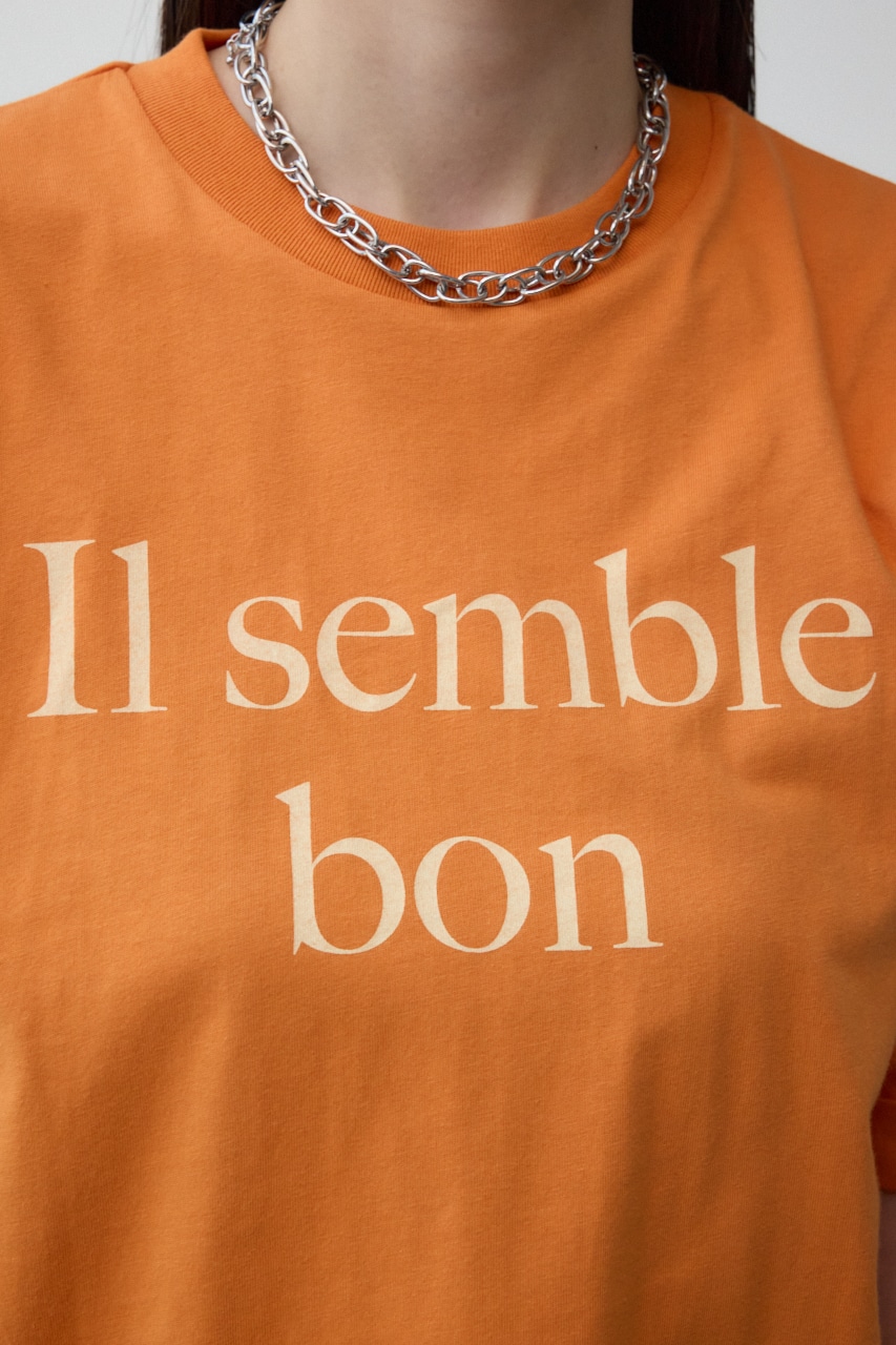 ■商品(デザイン)ポイント:ボックスシルエットのロゴTシャツ。カラーごとにメッセージが異なります。(「Bonne chance」=幸運をの意味 「Amuse toi bien」=楽しんでの意味 Ilsemble bon」=良さそうだねの意味)