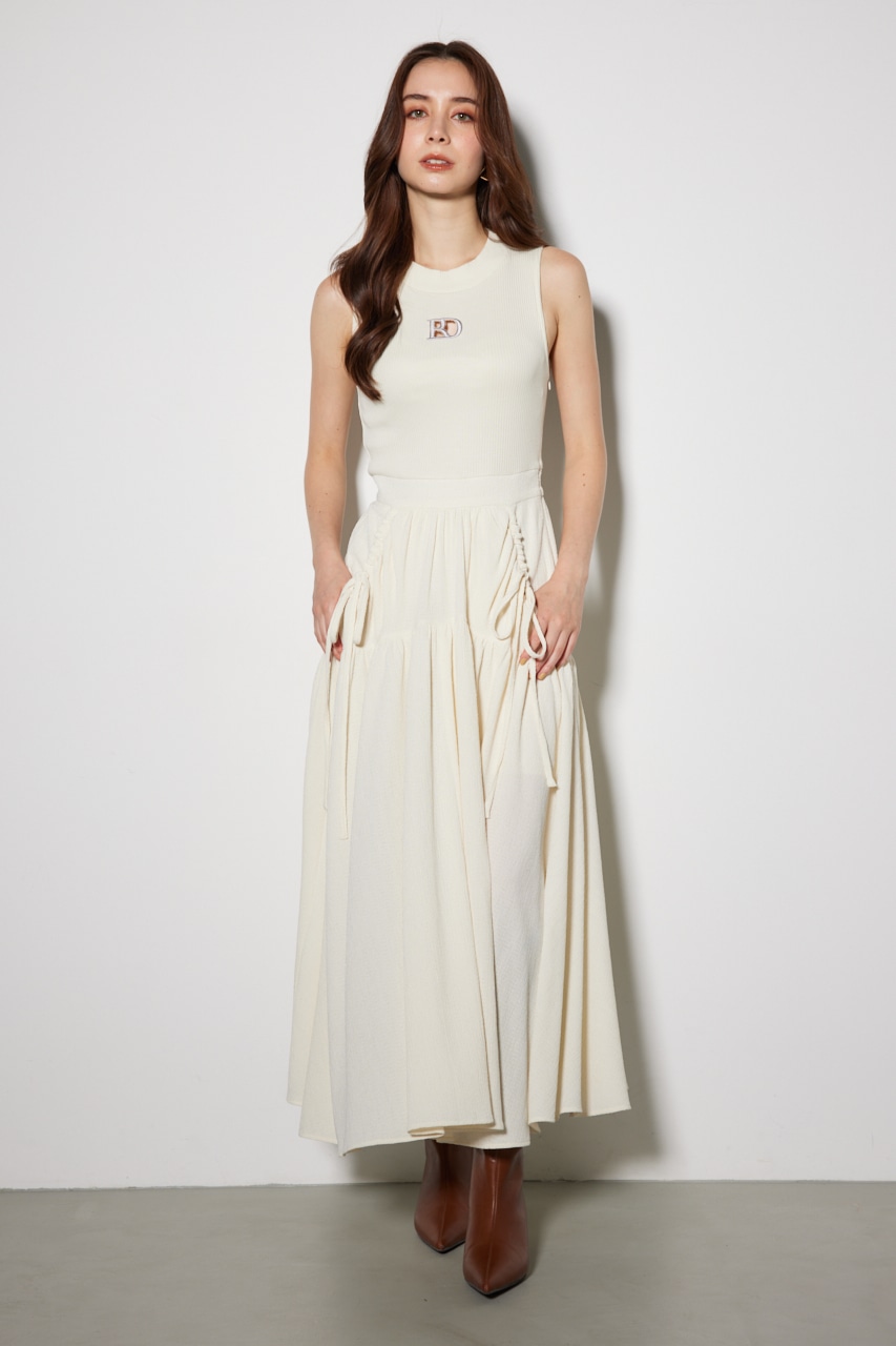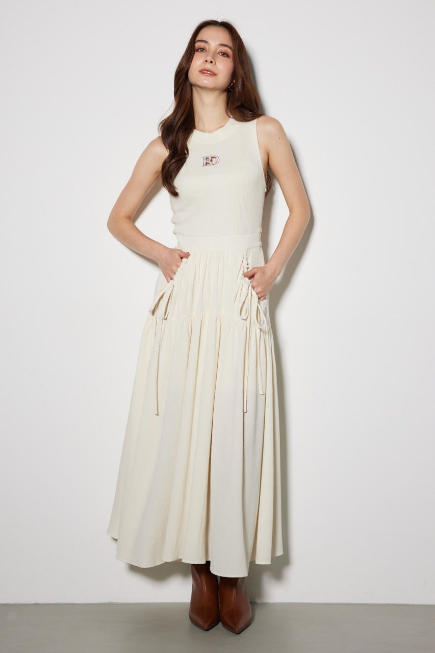 上身頃はカットRIBでタイトめに、裾はポケットデザインが付いたフレアディテールが女性らしく着られます。
