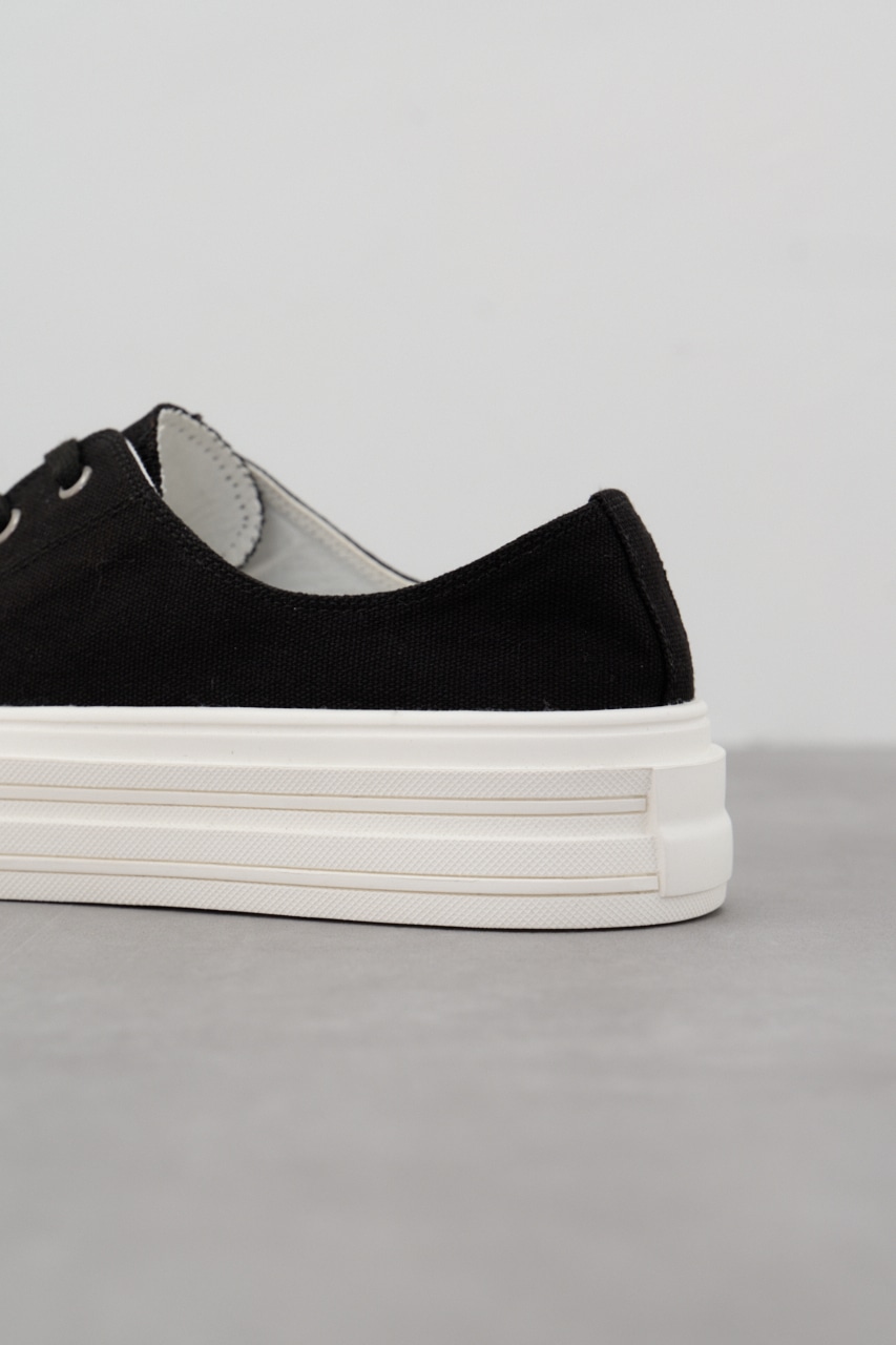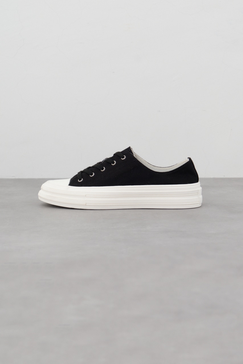 シンプルなキャンバススニーカーですが厚底なので通常のローカットよりも、スタイルアップできるのがポイントです。