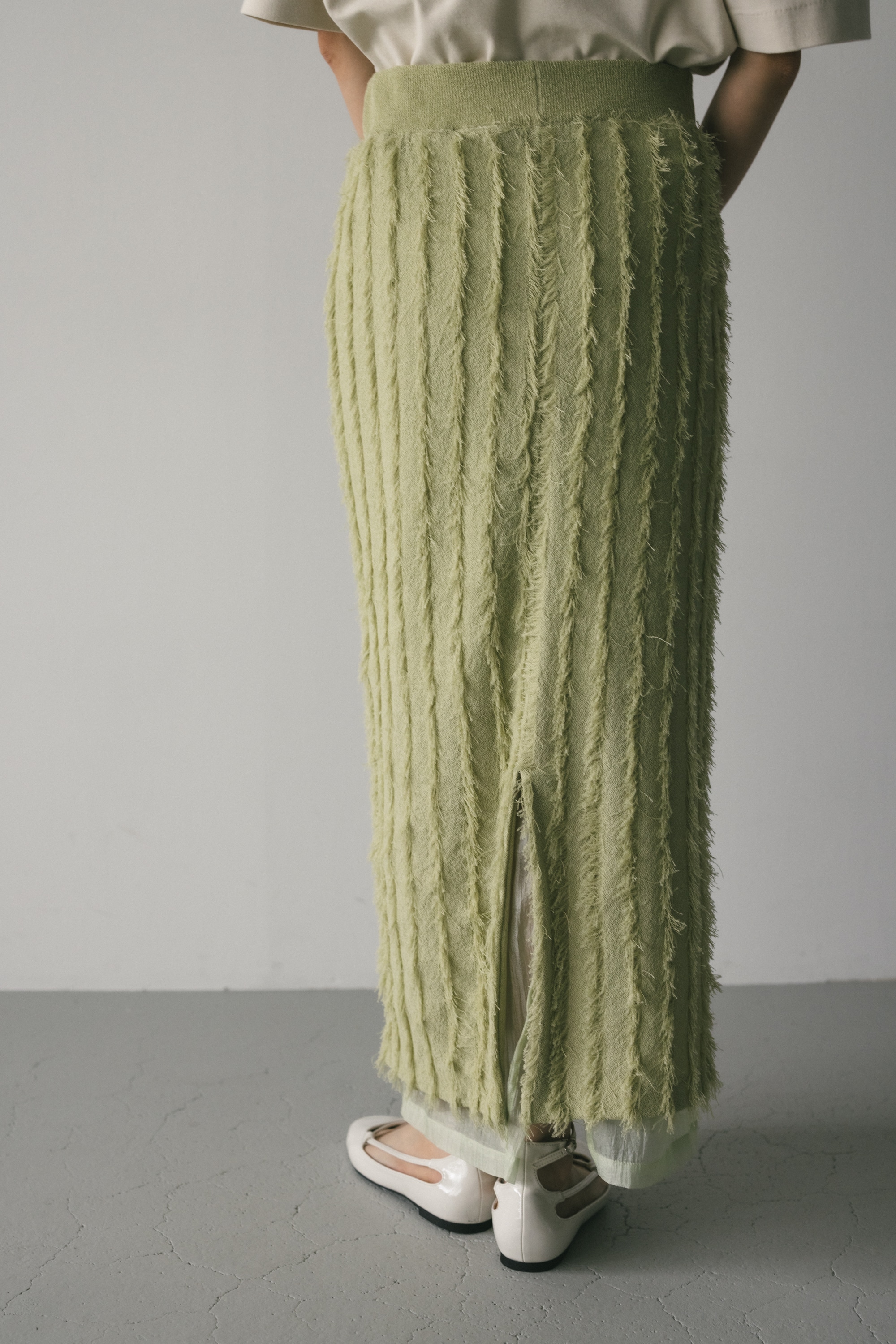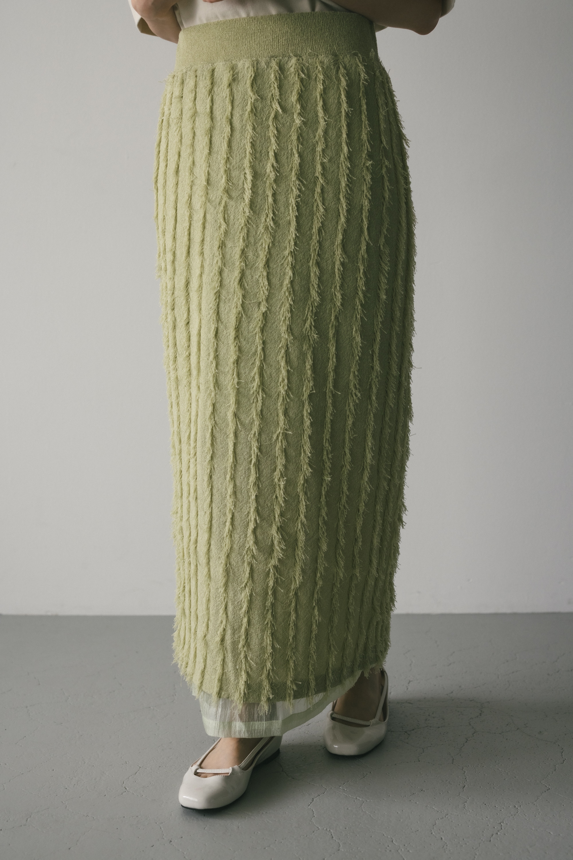 毛足長めのフリンジの表面感が大人可愛いIラインシルエットのフリンジスカート。