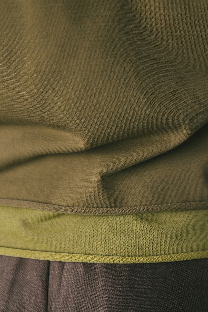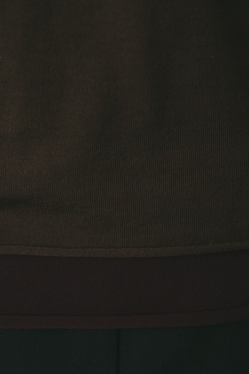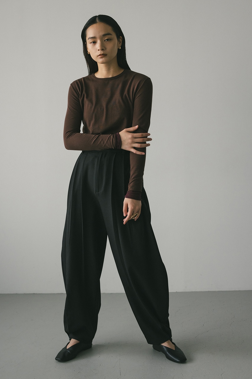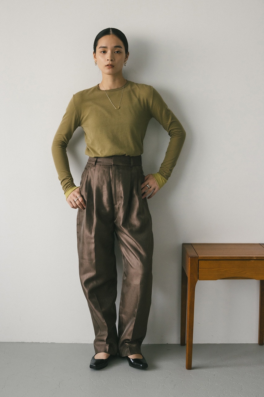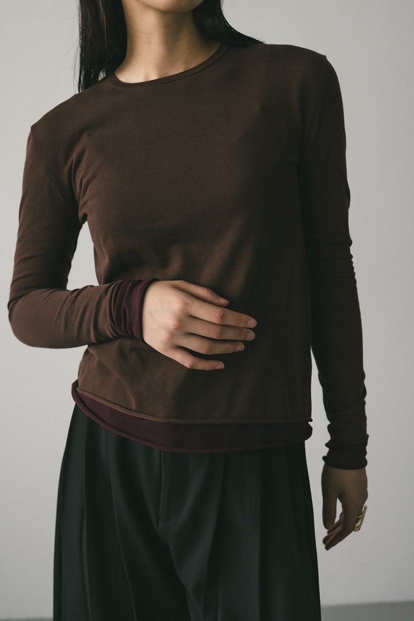ほのかな透け感と袖口と裾のレイヤーデザインがスタイリングのポイントになる一枚です。
