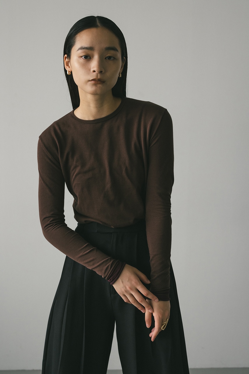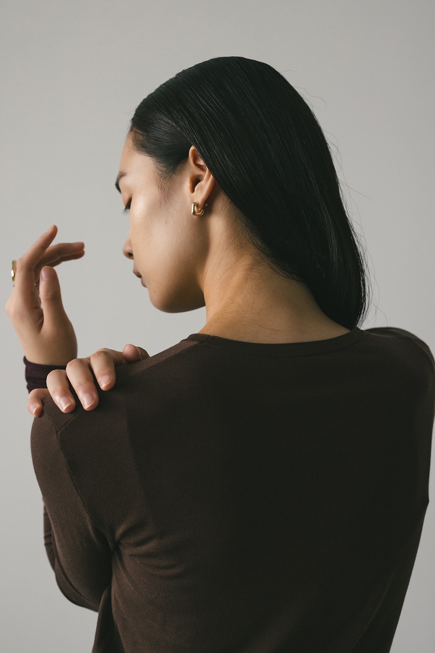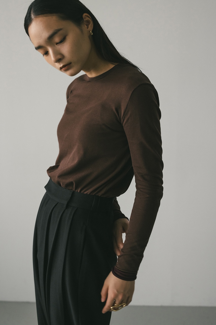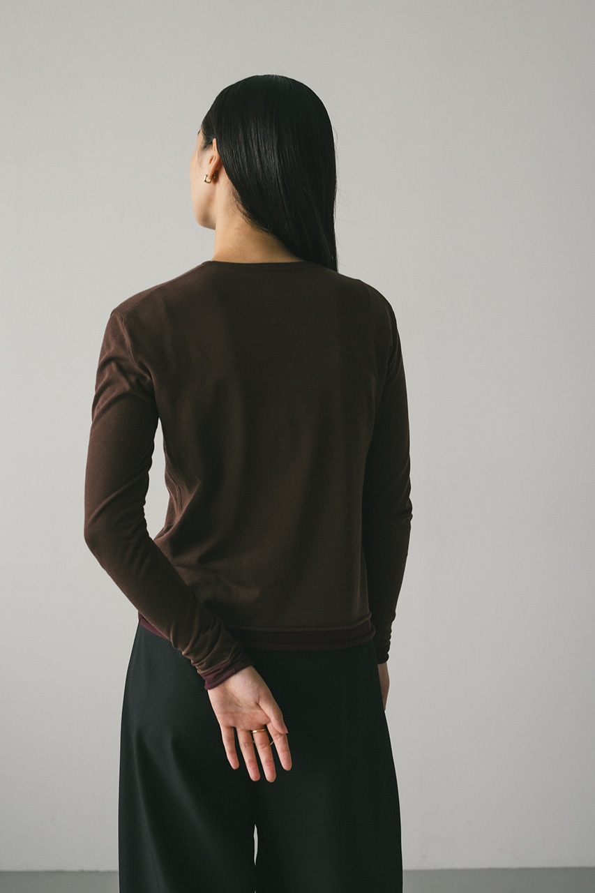 肌なじみの良いドライタッチなシアーニットをダブルフェイスに編み立てたニット。