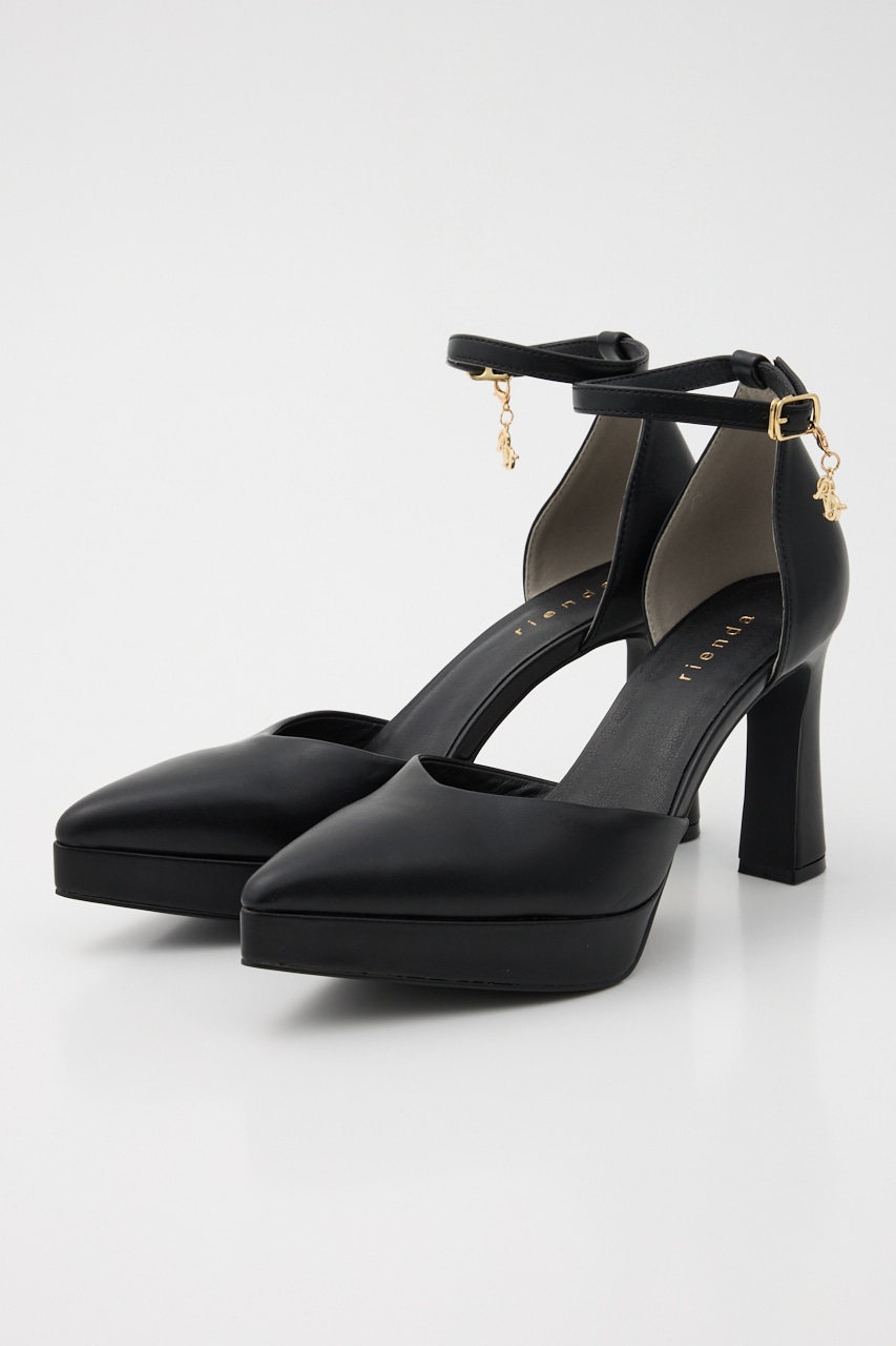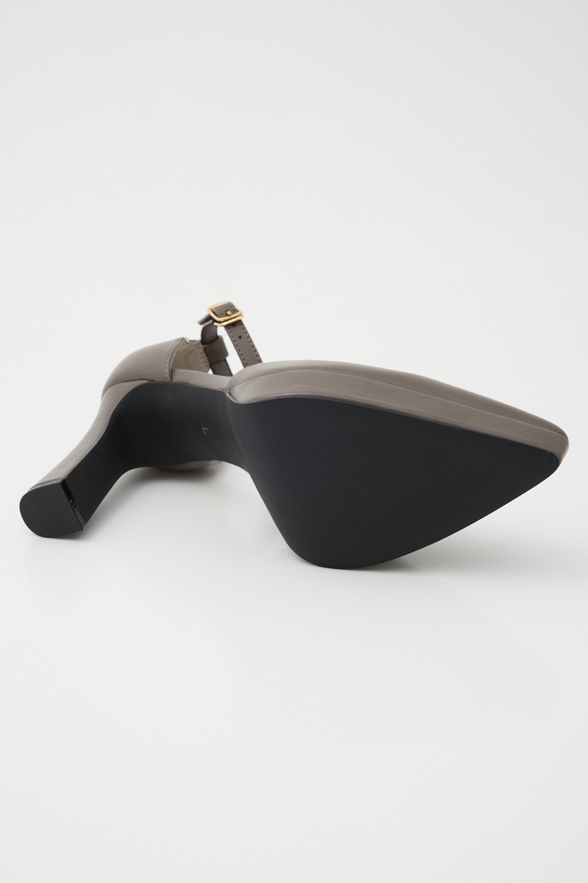 足元を華奢に細見えさせるためにポインテッドトゥのデザインを取り入れた、アンクルのアクセサリーがポイントのパンプス。