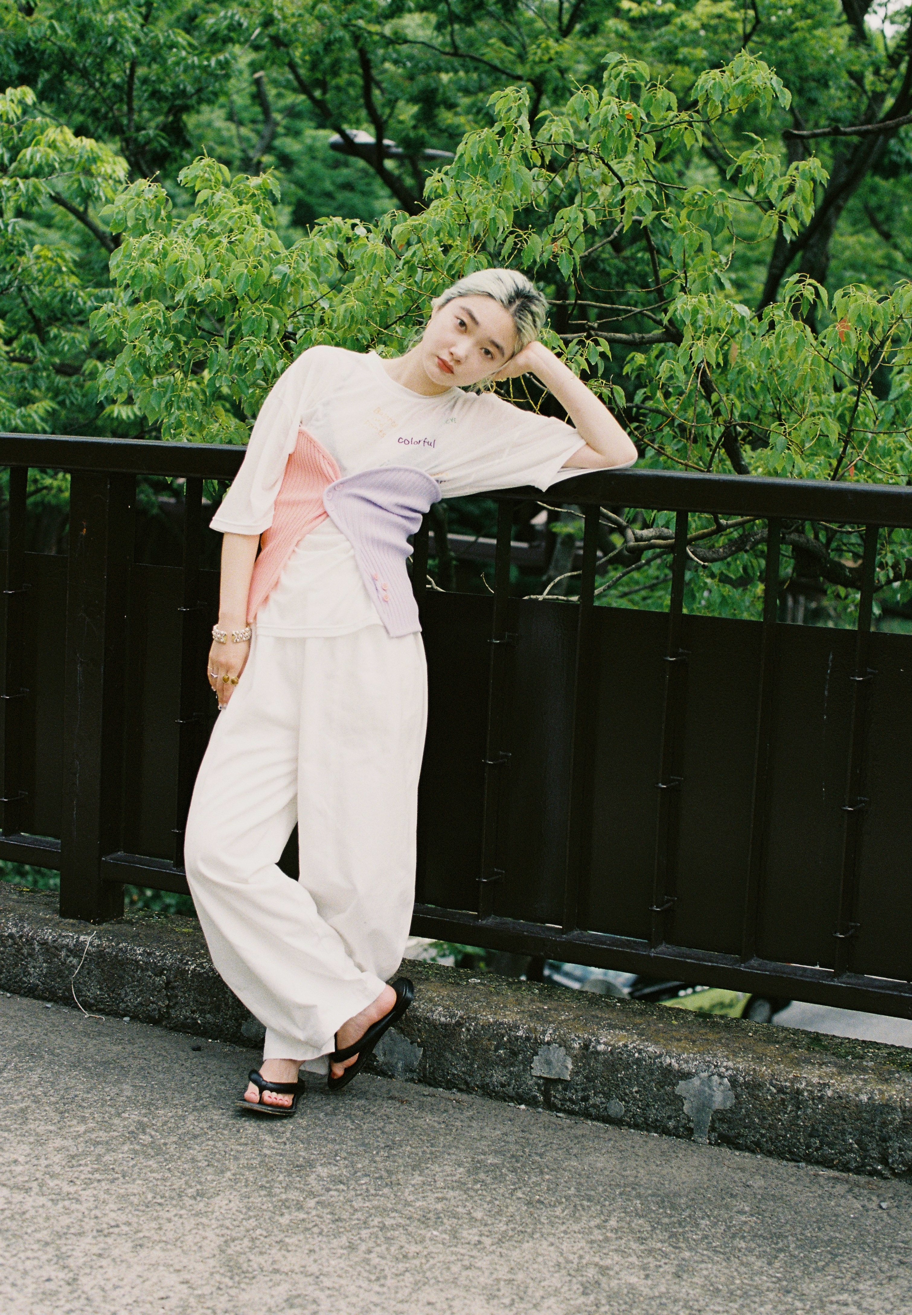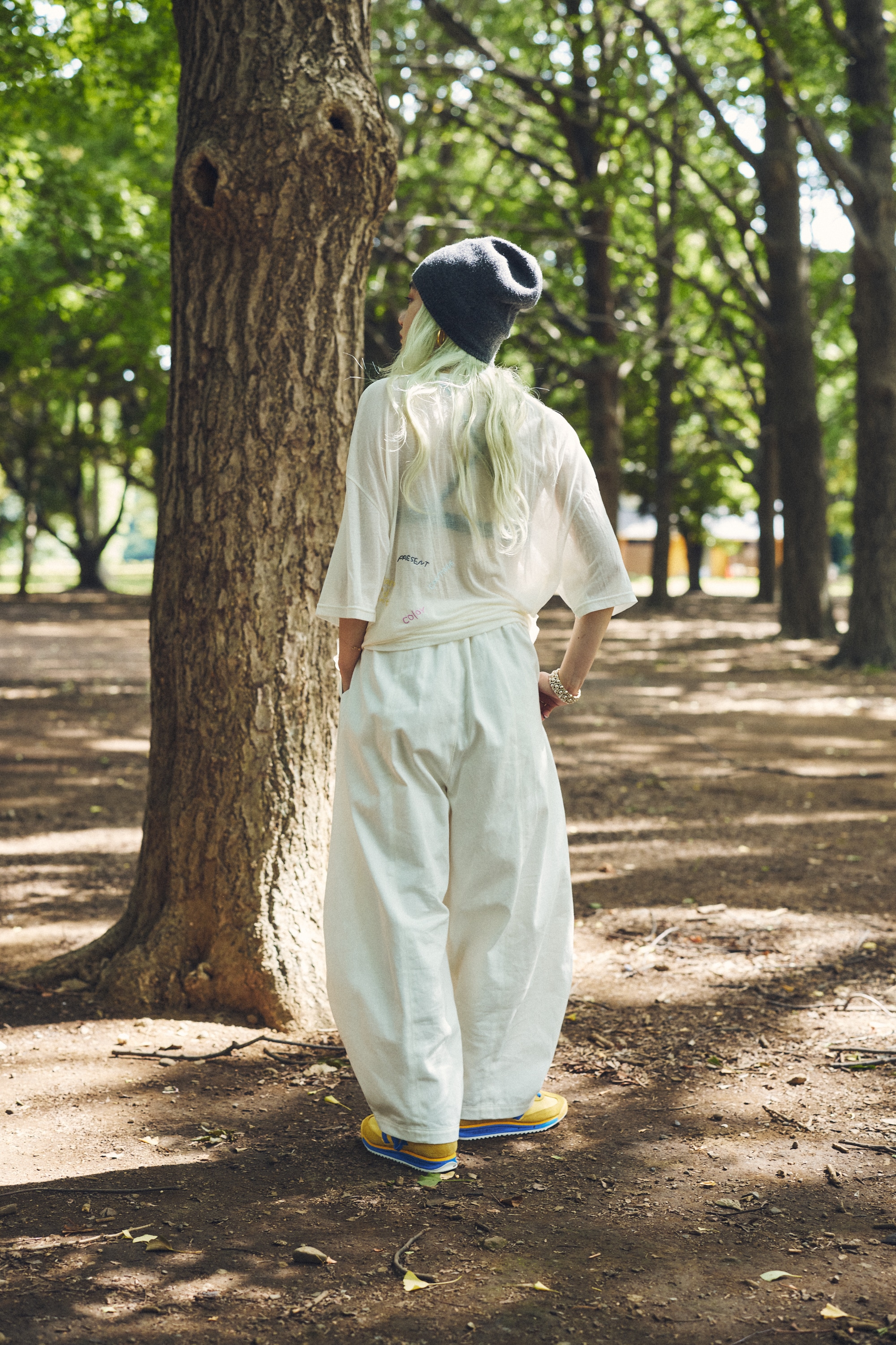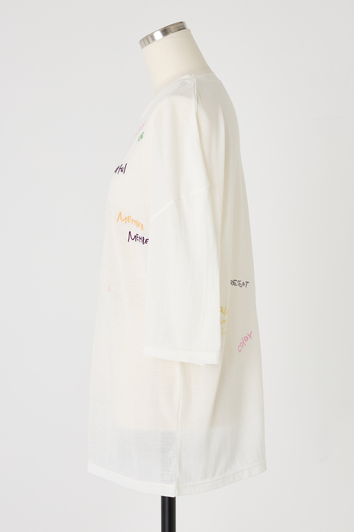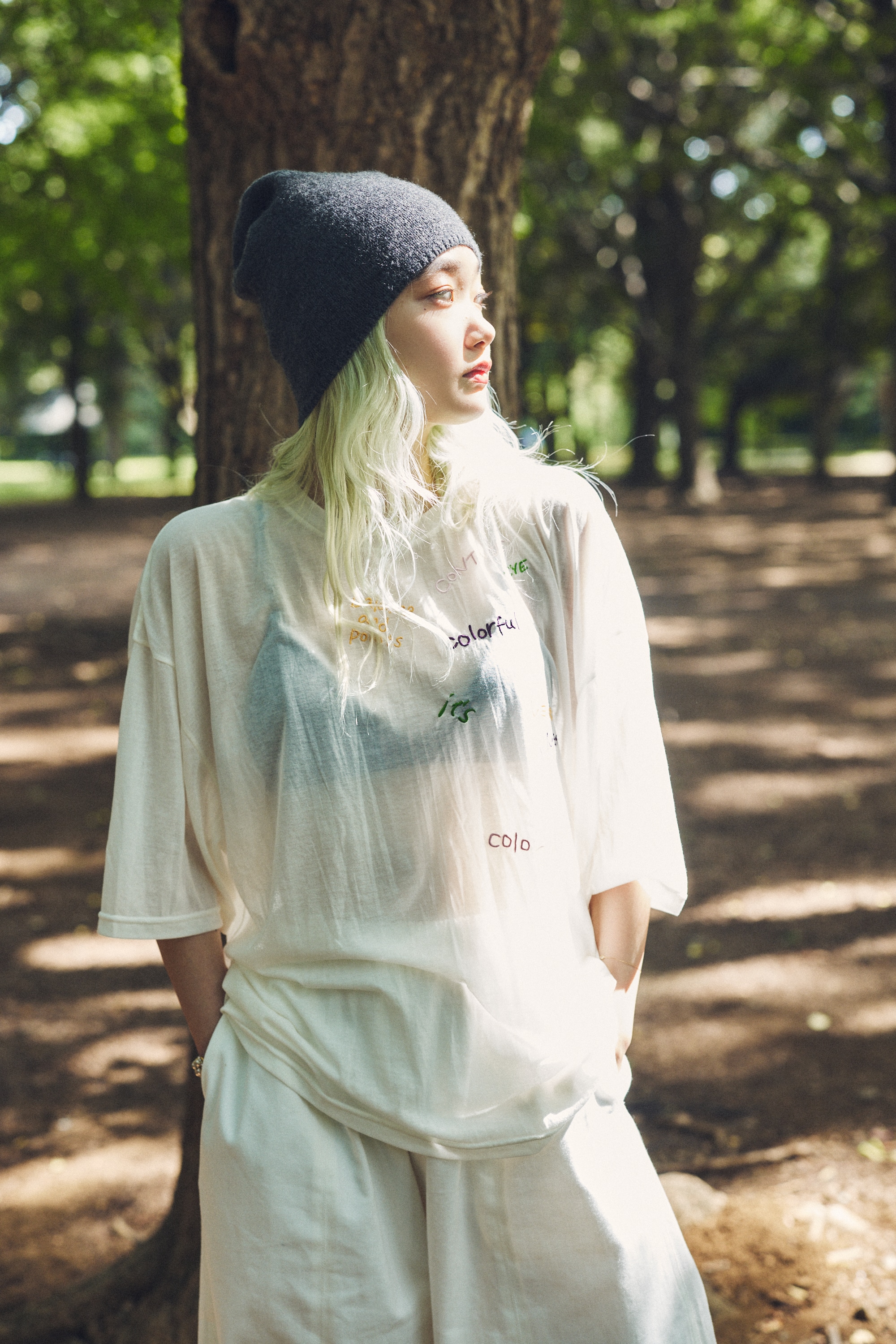 シアー素材のbigTeeにオリジナル刺繍を施した1枚。