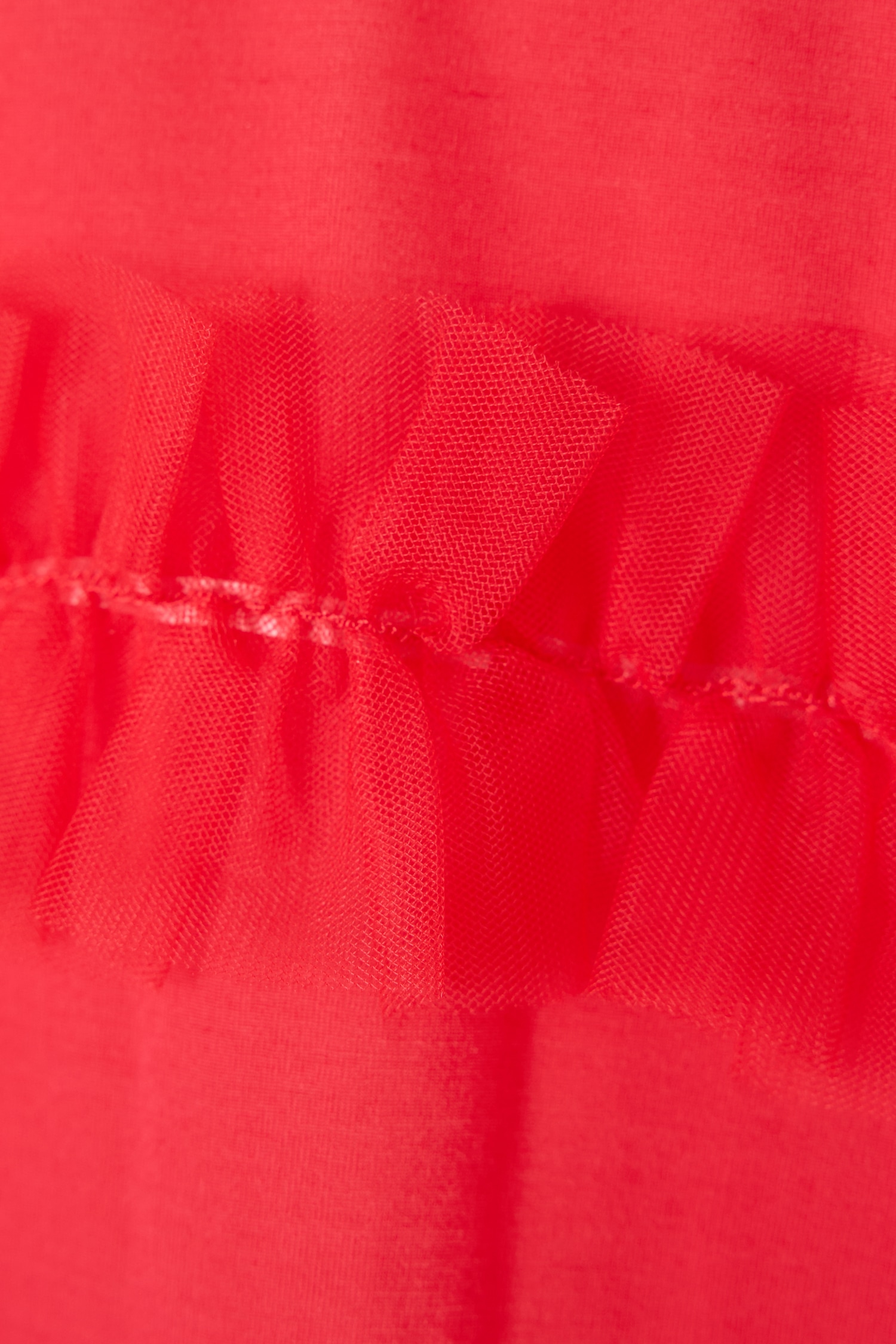 ギャザーをたっぷり寄せたチュールは程よい存在感があり、フロントからはシンプルな見た目なので取り入れやすいアイテムになっています。