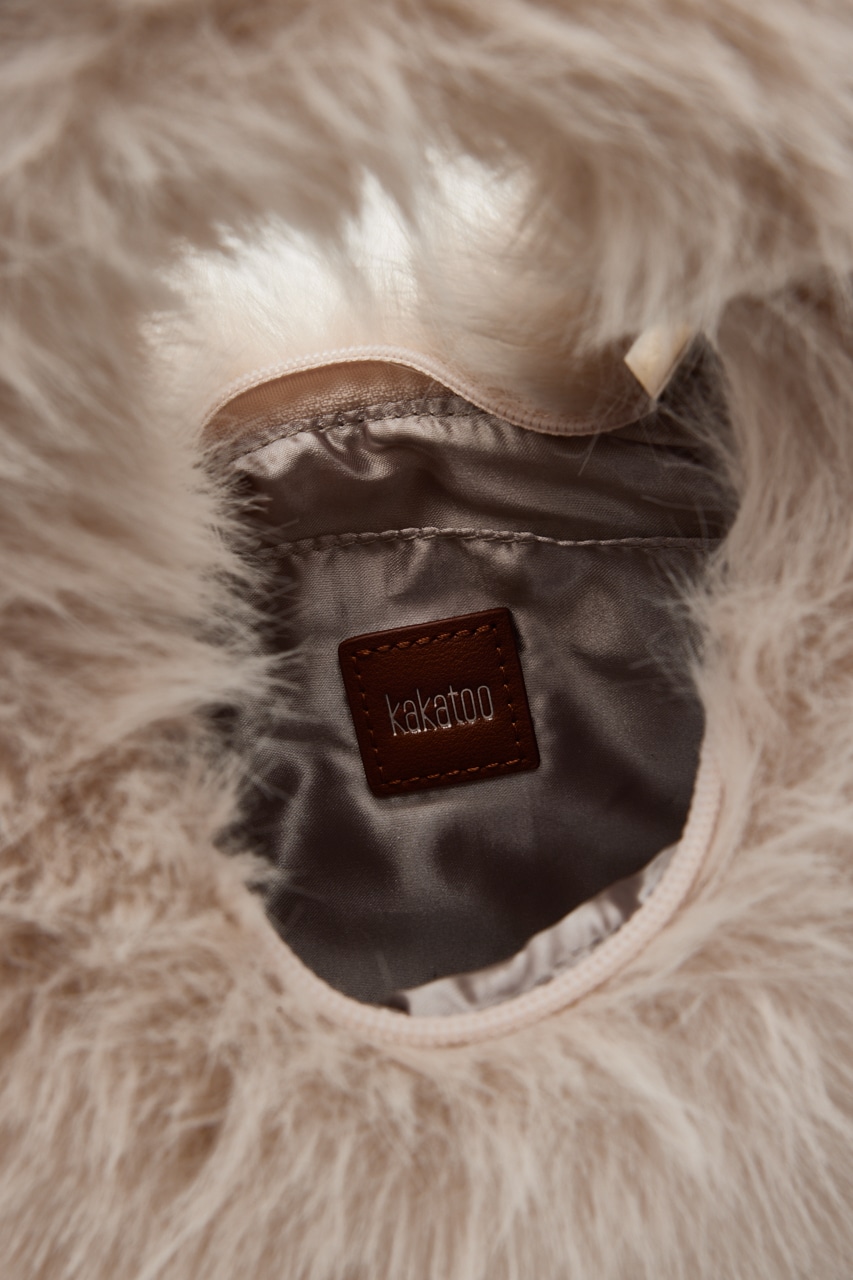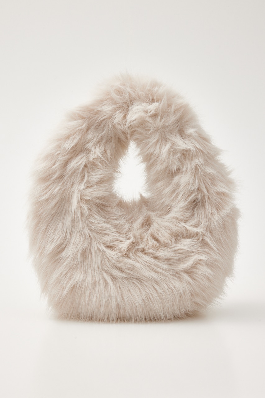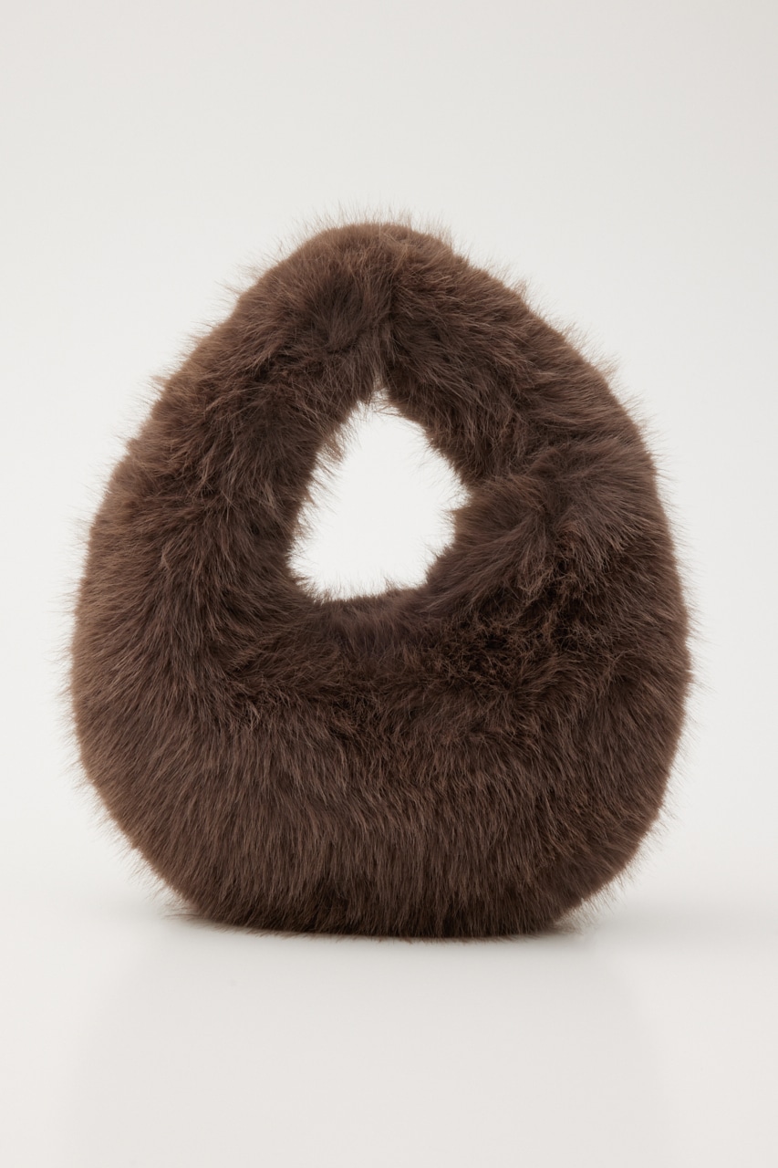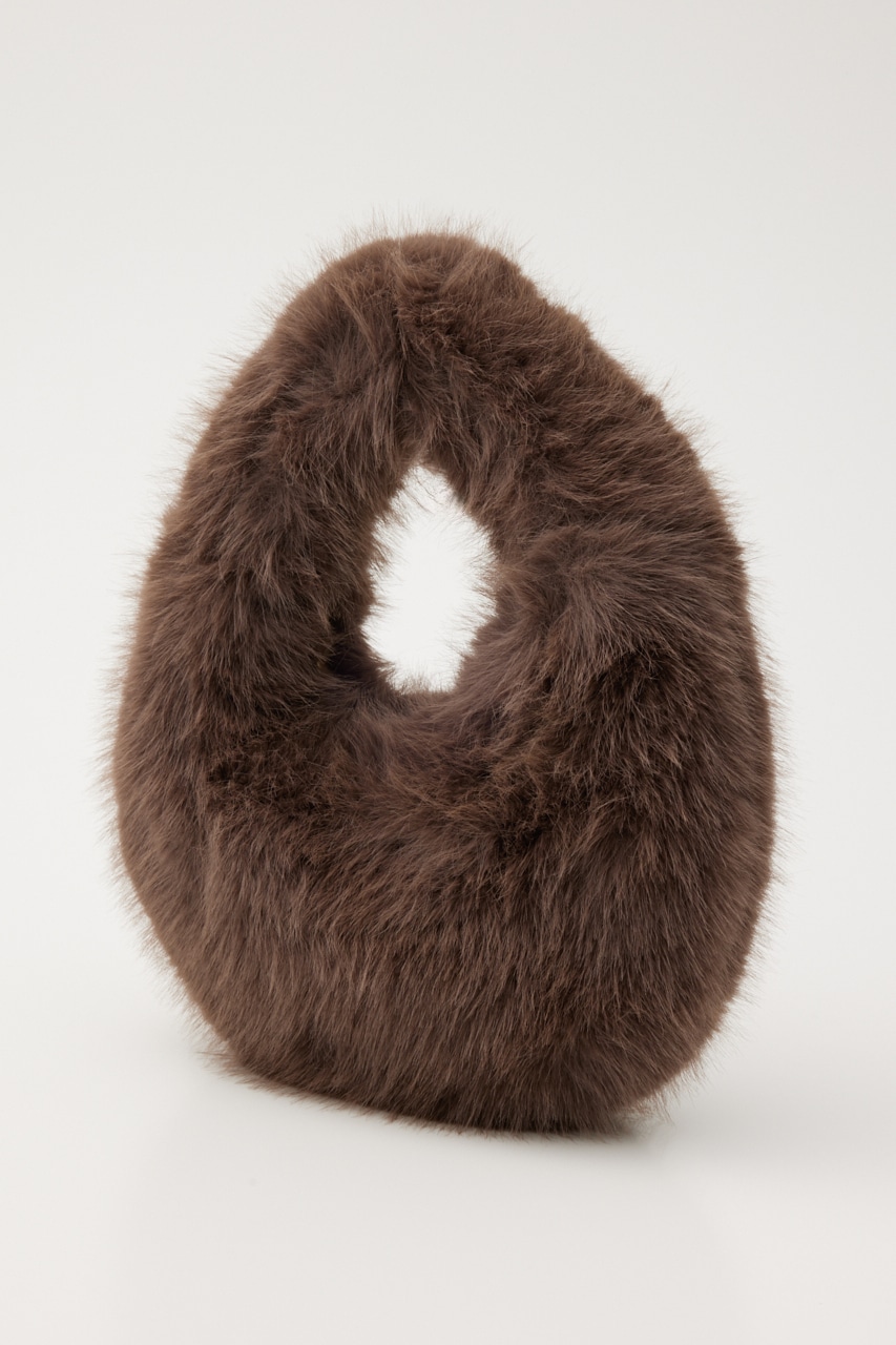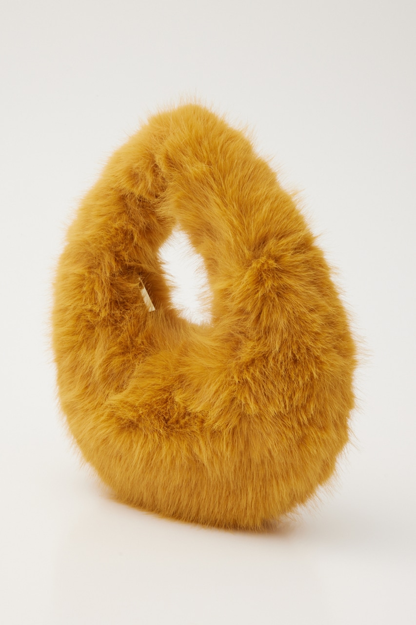 とても手触りの良いフェイクファーを使ったオーバル型の手提げバッグ。