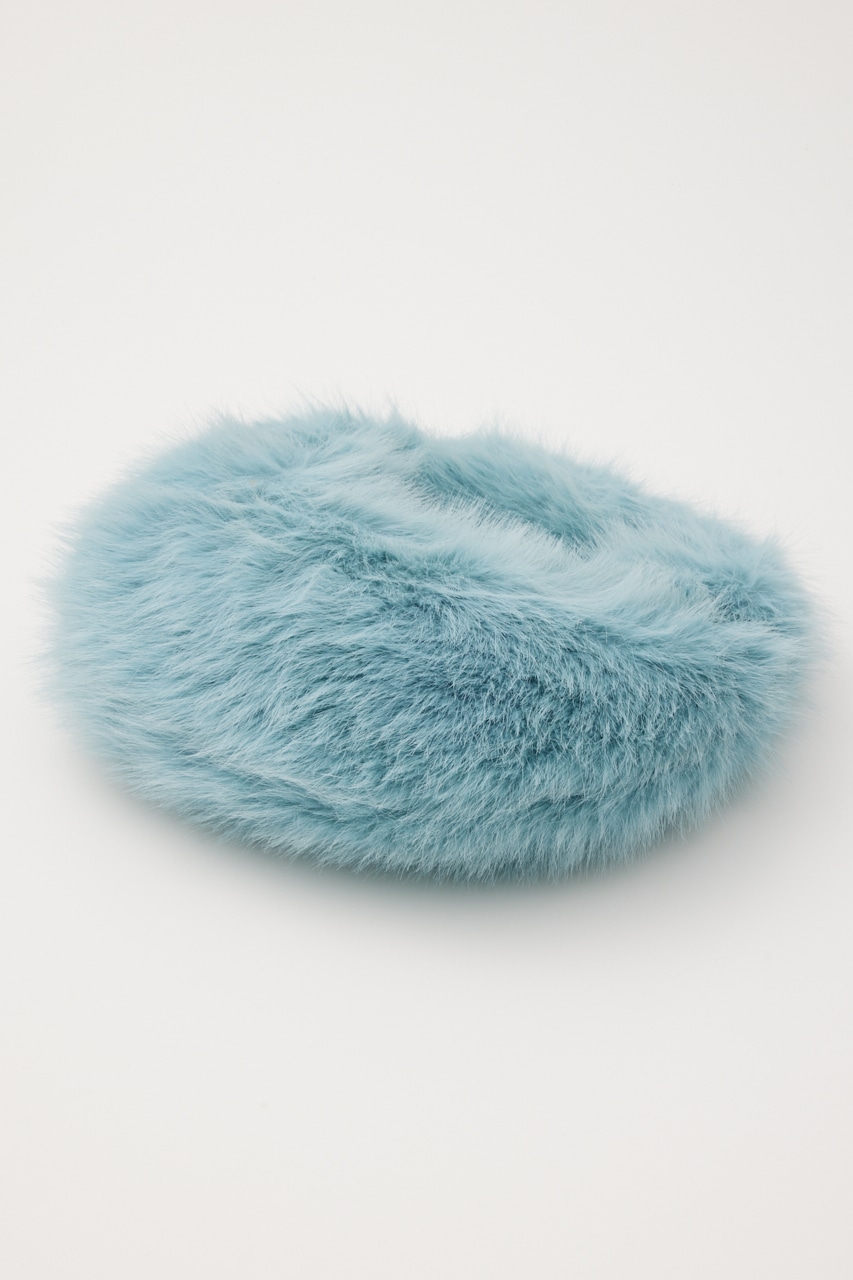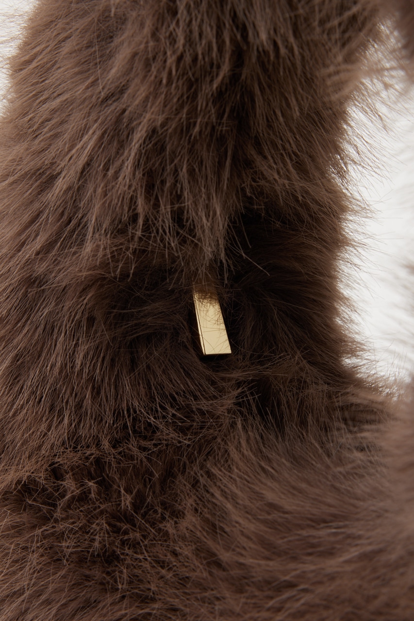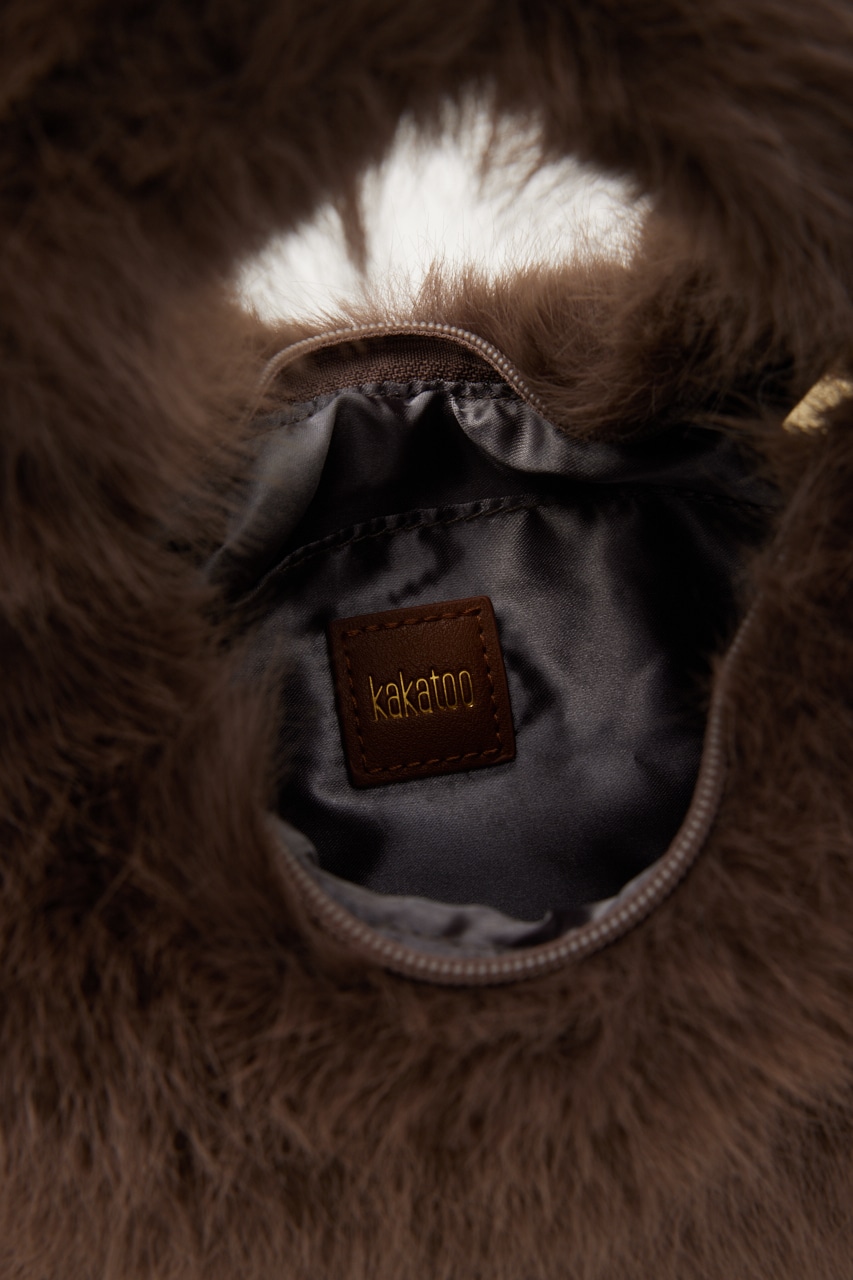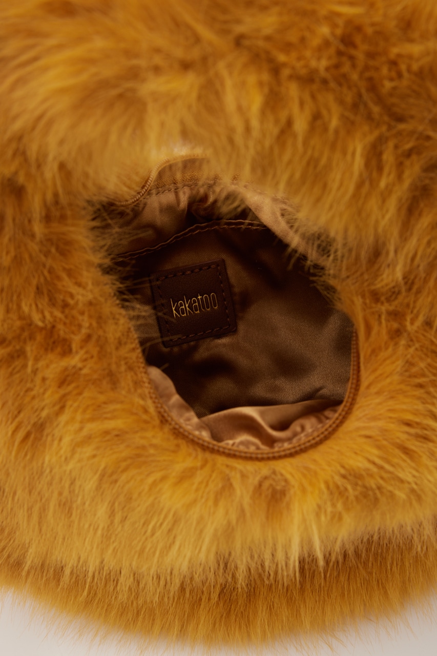 とても手触りの良いフェイクファーを使ったオーバル型の手提げバッグ。