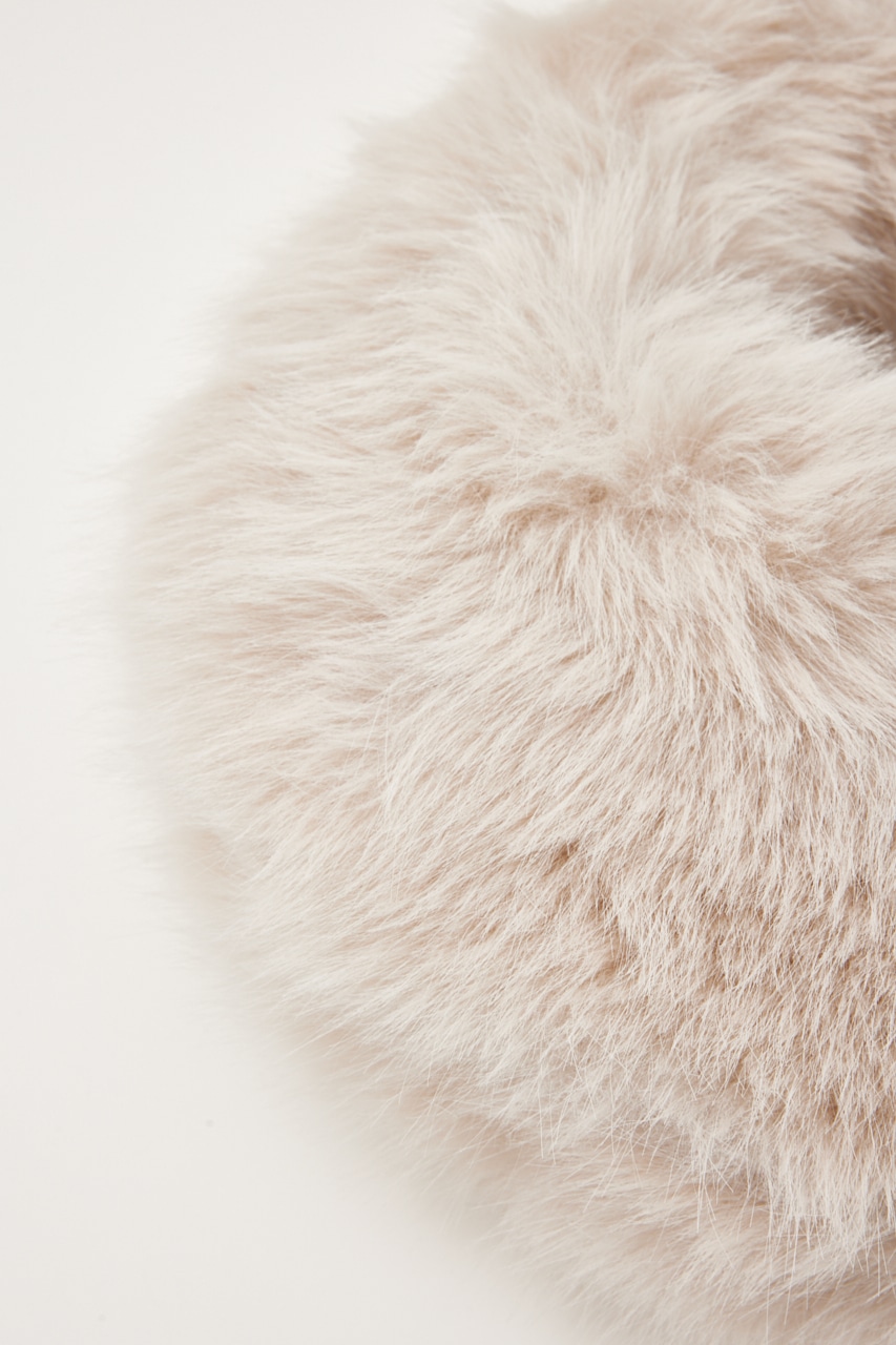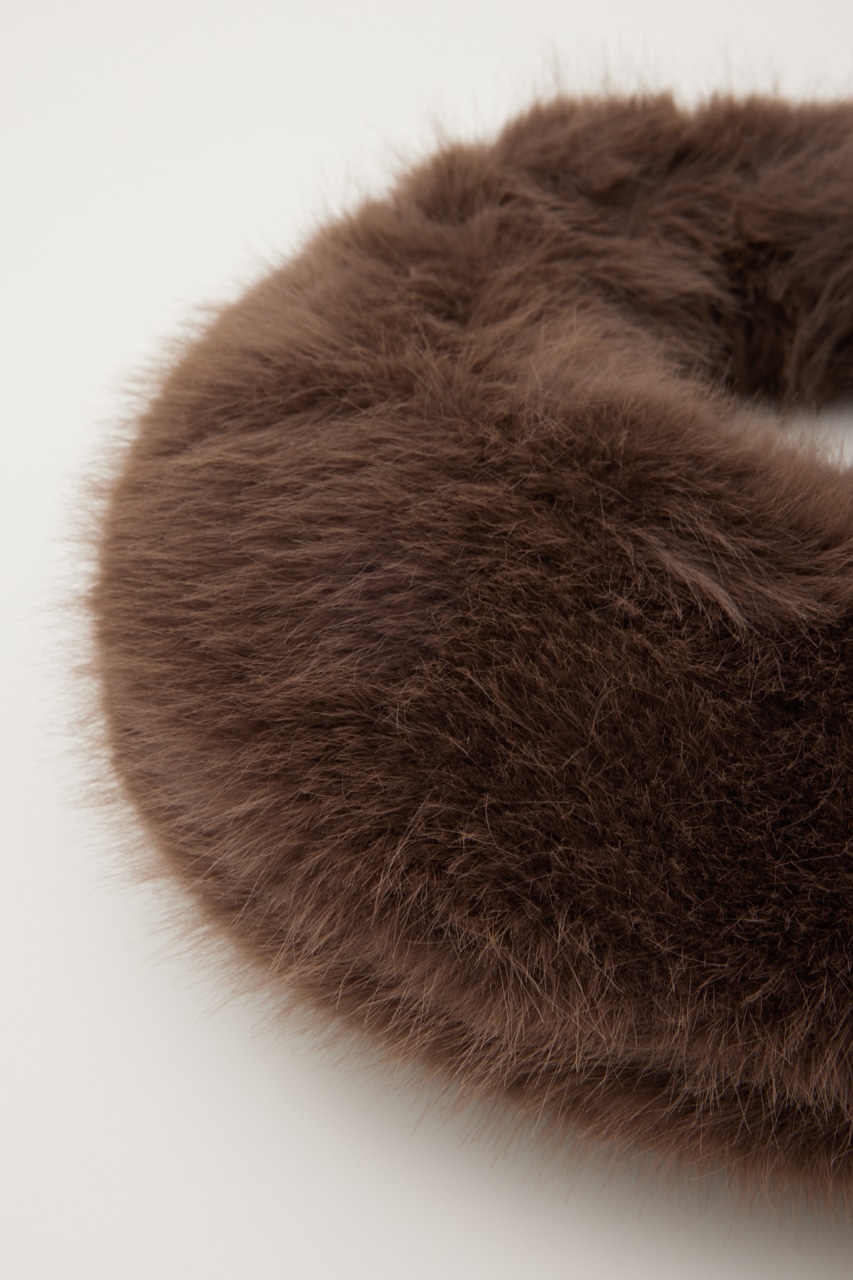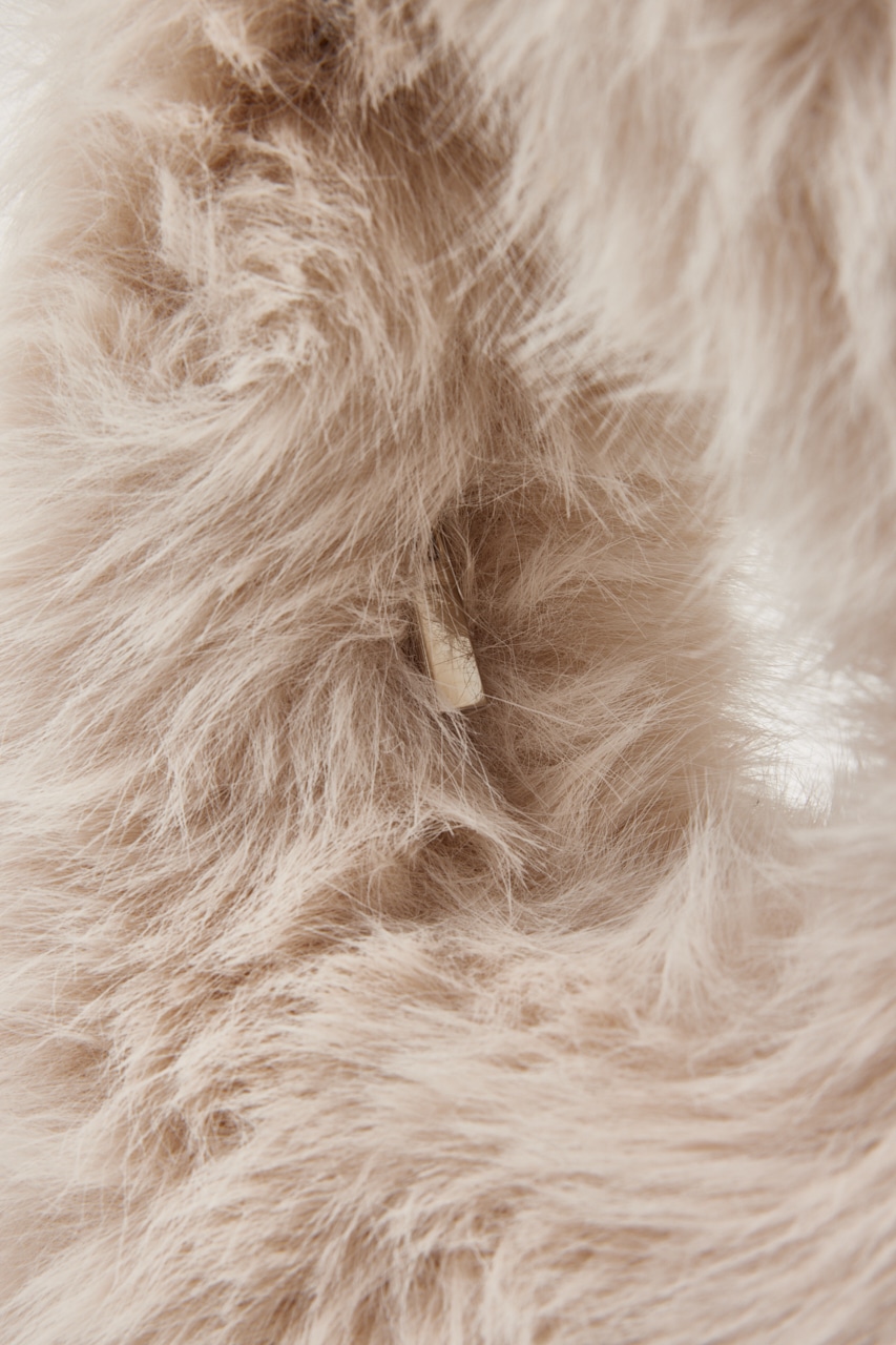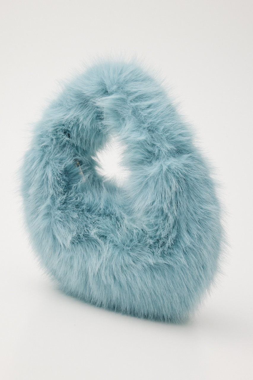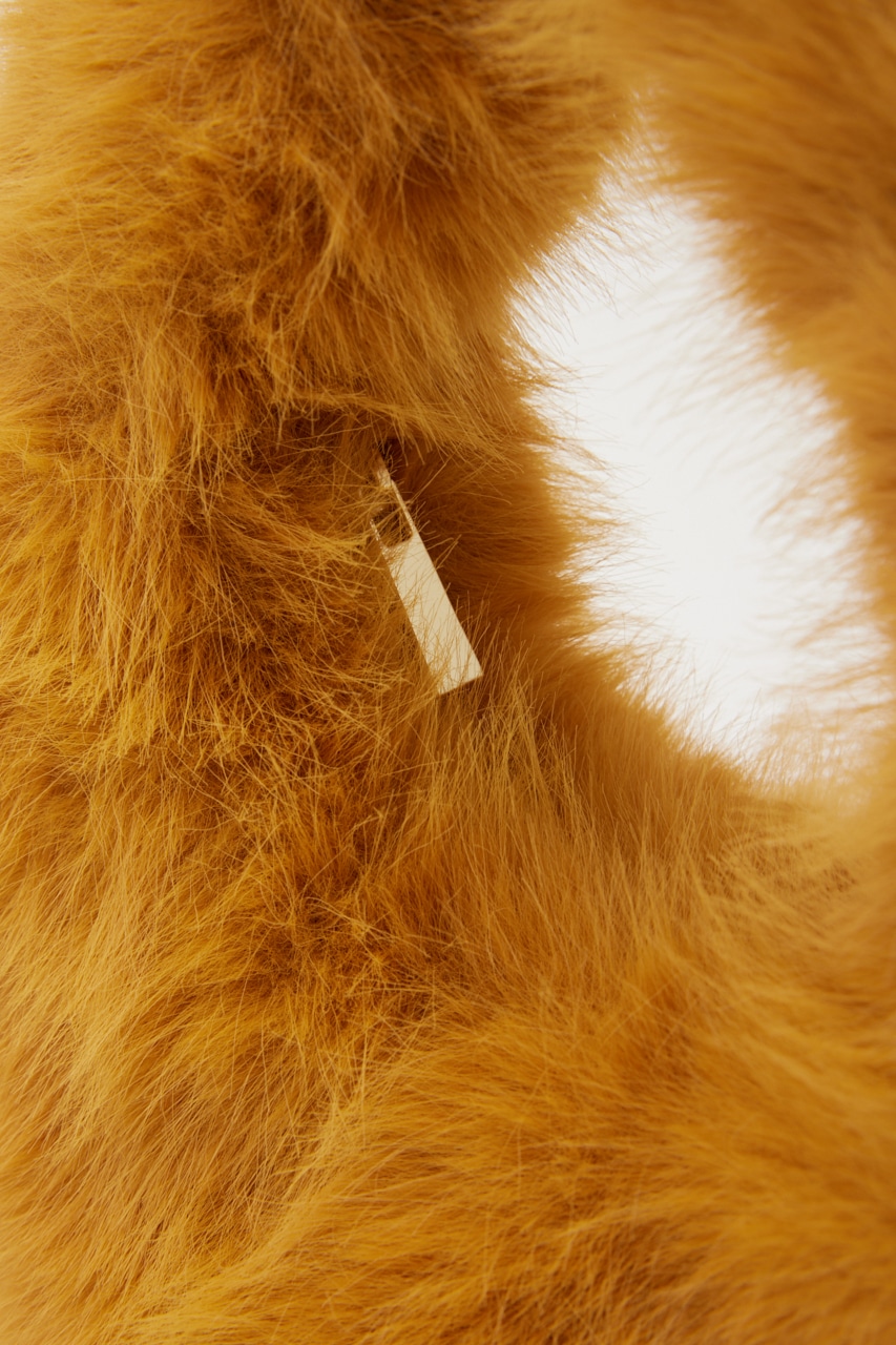 とても手触りの良いフェイクファーを使ったオーバル型の手提げバッグ。