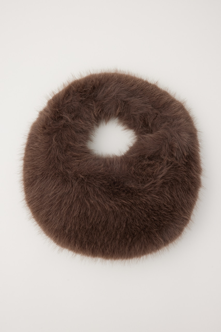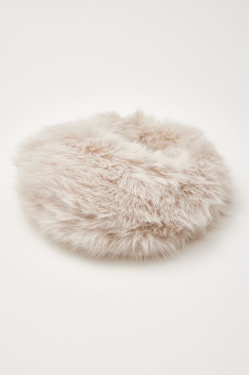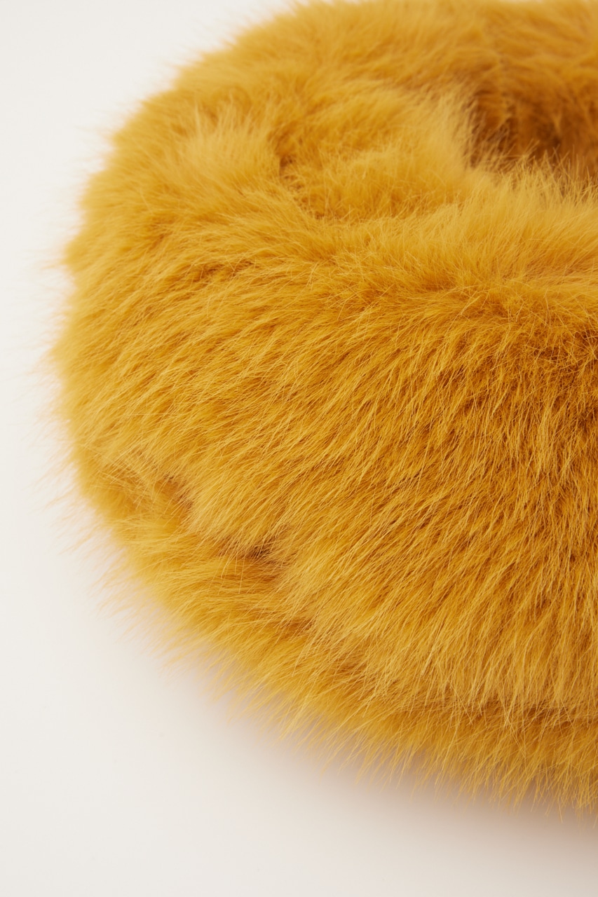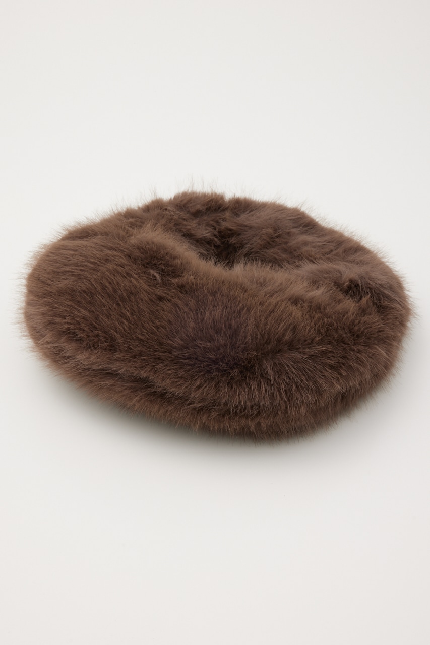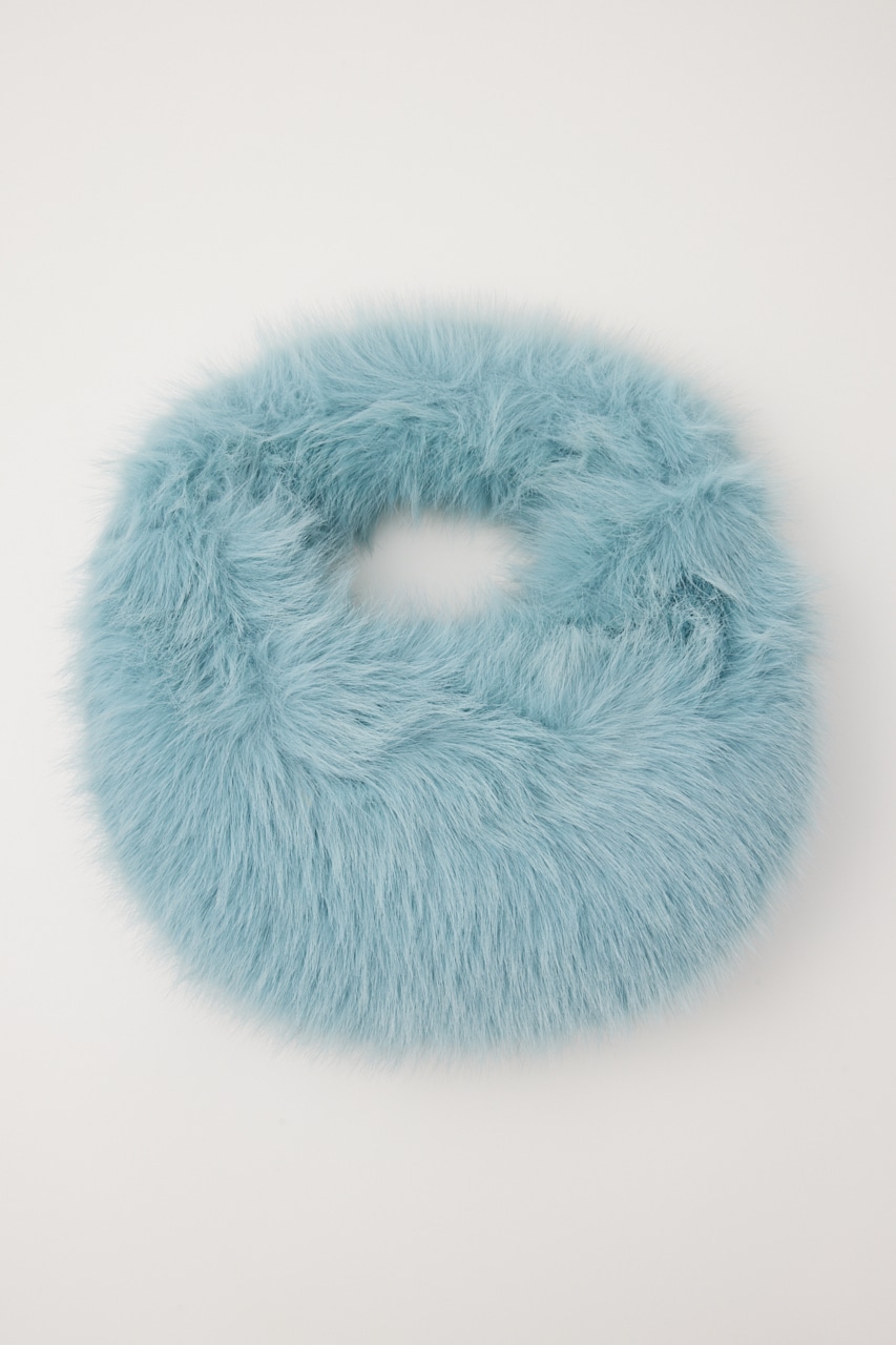 とても手触りの良いフェイクファーを使ったオーバル型の手提げバッグ。