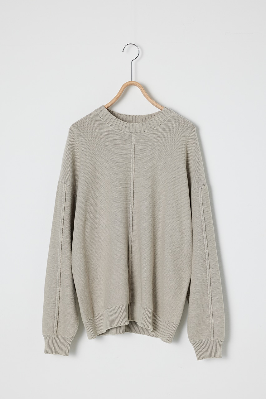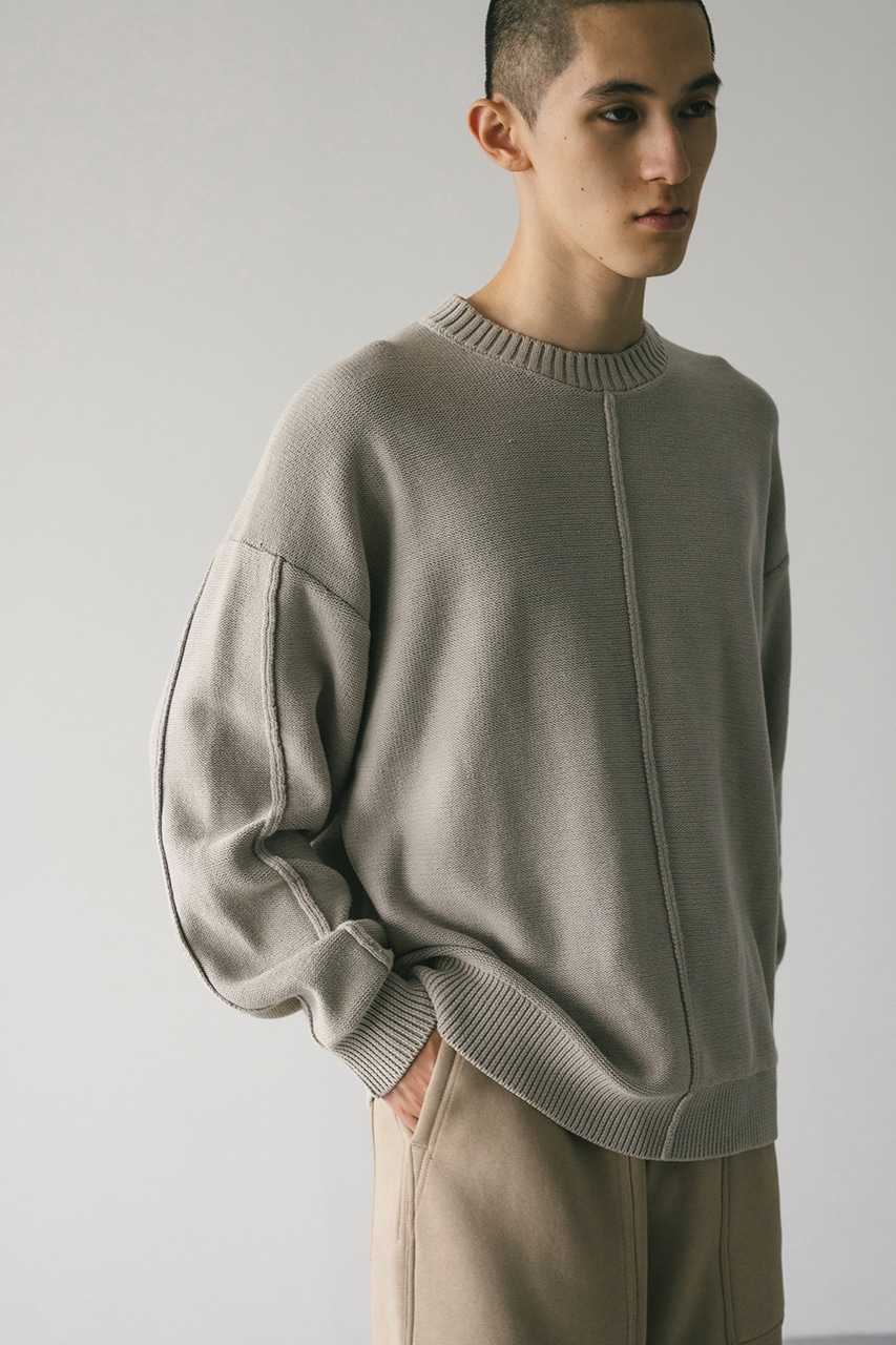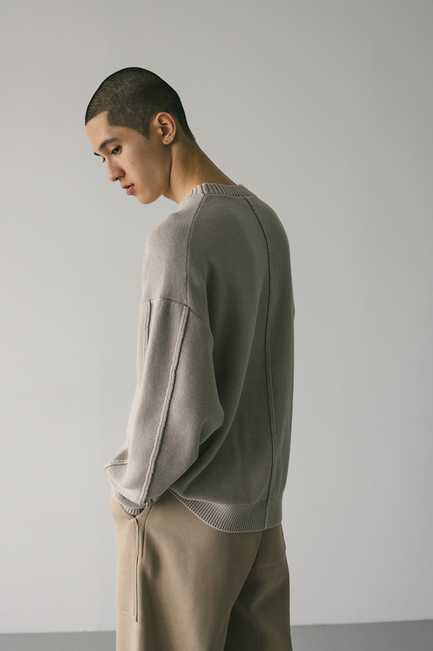 しっかりと厚みのあるしたコットン素材を使用したミドルゲージのクルーネックニット。