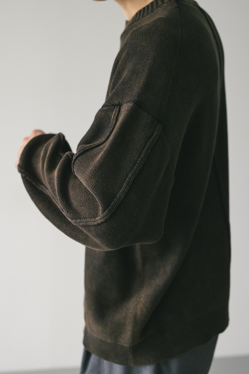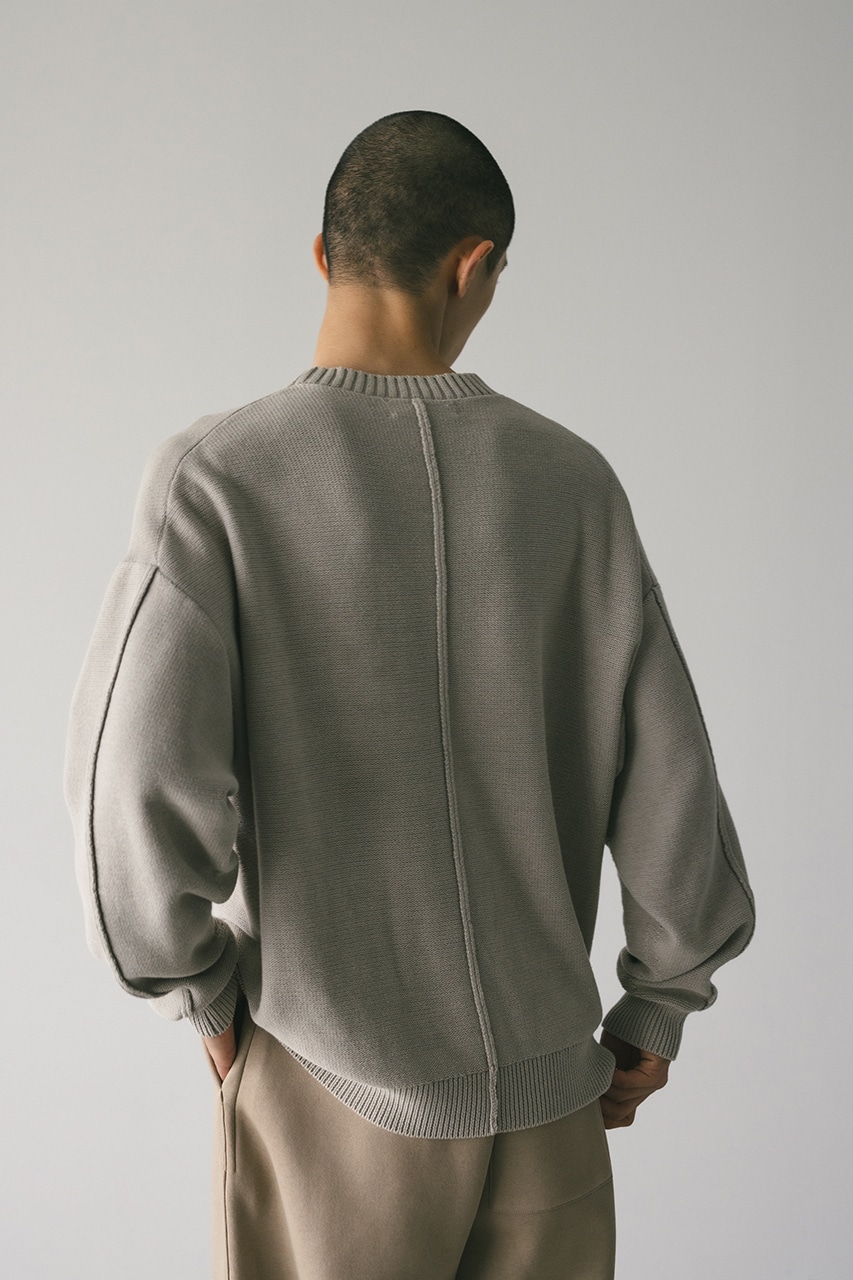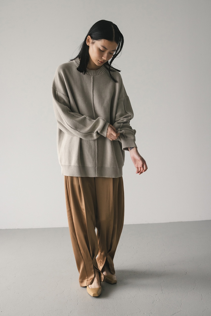 しっかりと厚みのあるしたコットン素材を使用したミドルゲージのクルーネックニット。
