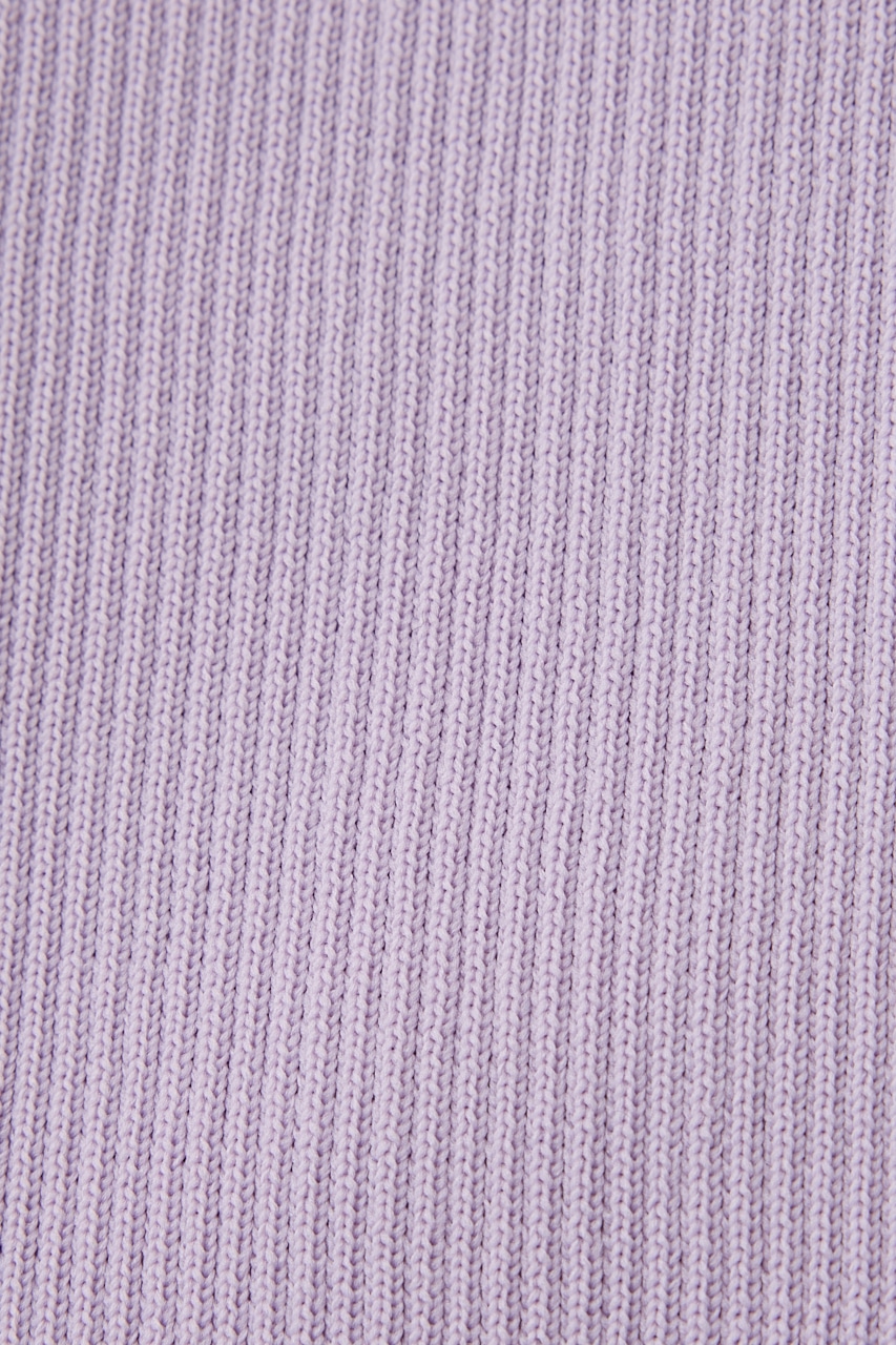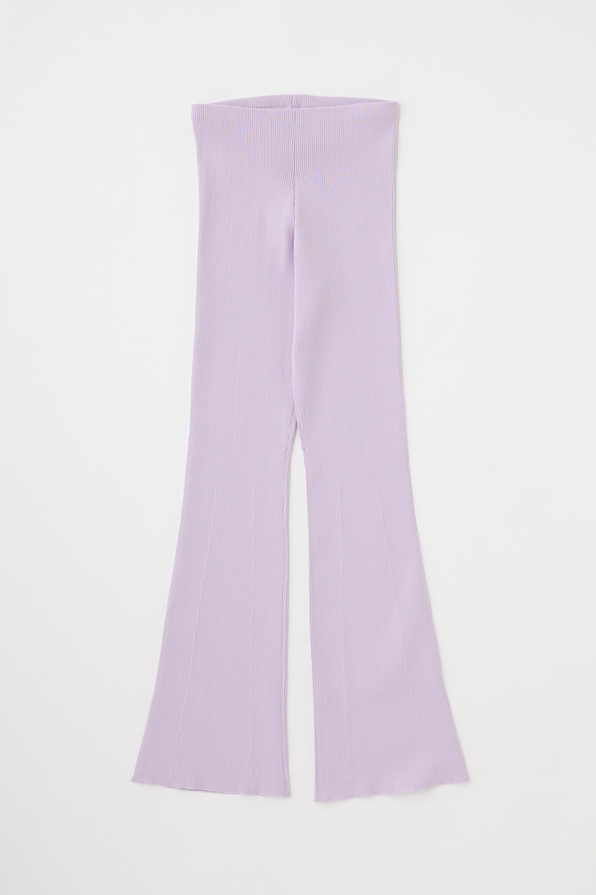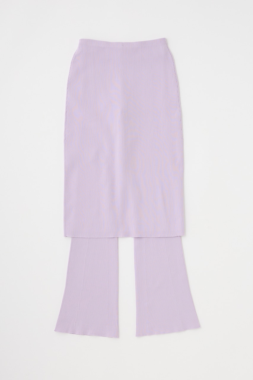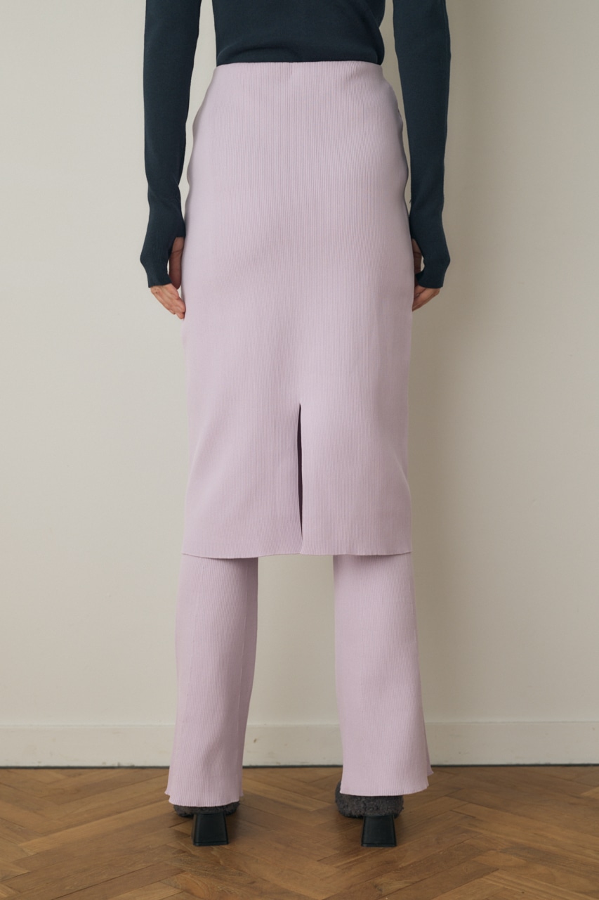 繊細なリブニットで編み上げたひざ丈のスカートと、裾フレアのニットレギンスのセット。