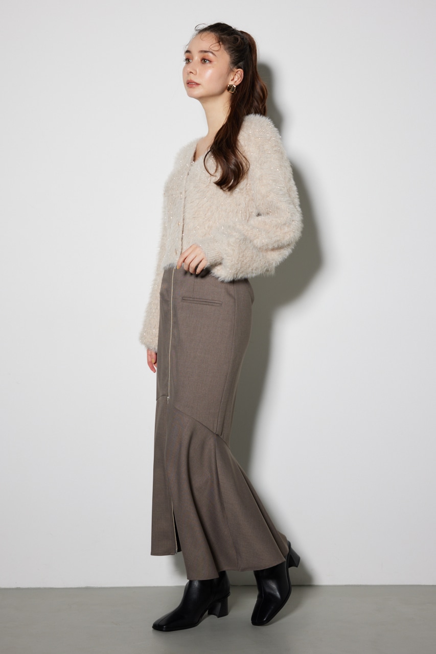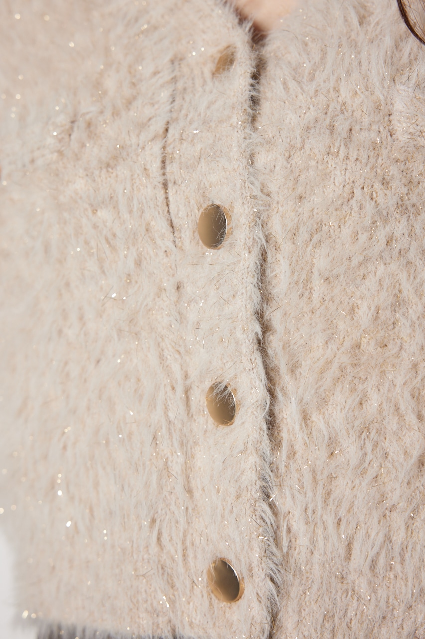 フェイクフェザーラメニットジャケットカーデ