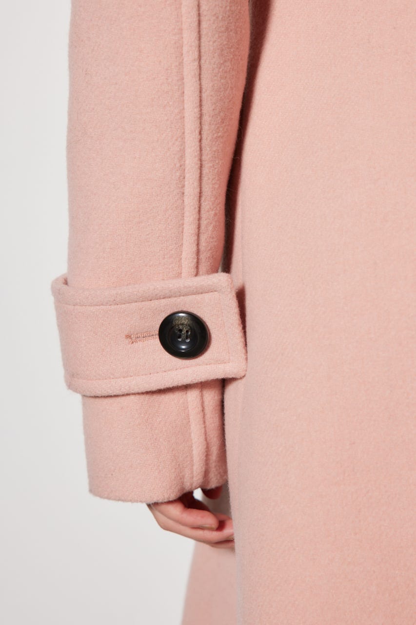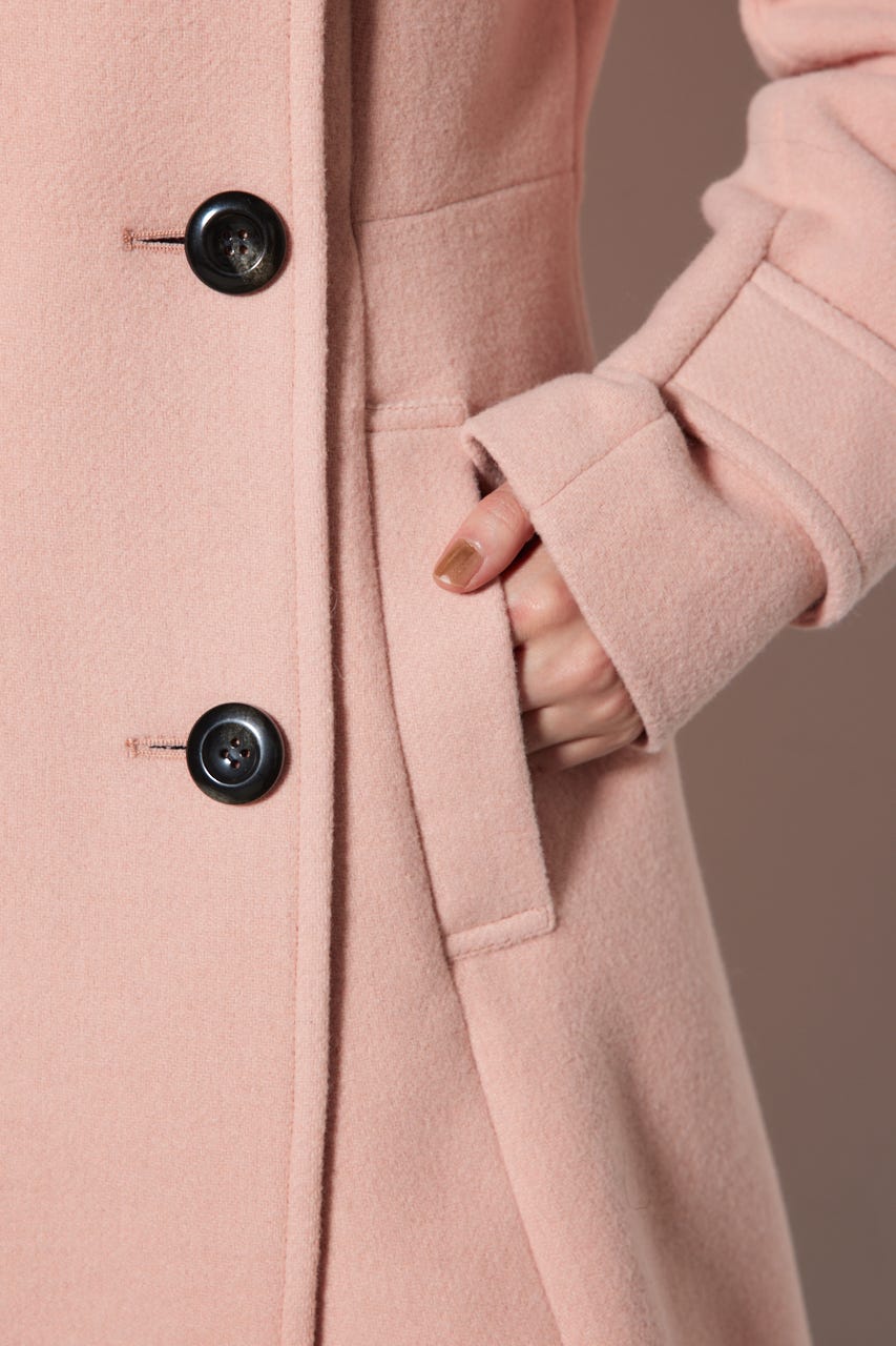 【襟元にたっぷりと生地を使用したAラインの24年版シンデレララインコート】