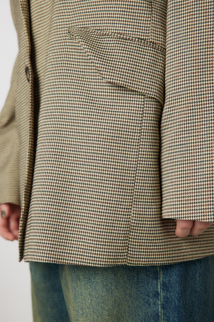 細かい千鳥チェック柄のオーバーサイズジャケット。裏地付きのきちんと感のあるジャケットで、秋コーデにぴったりなアイテムです。