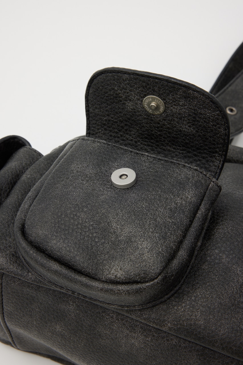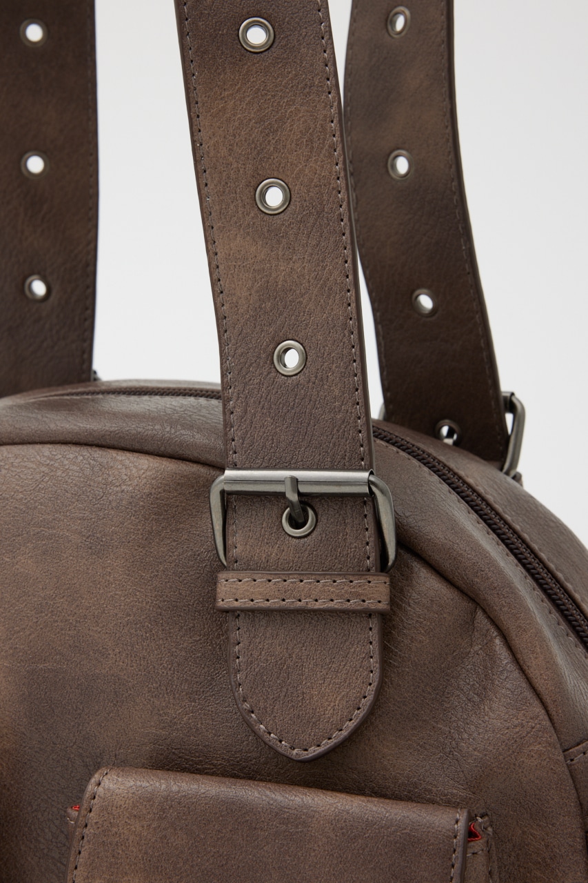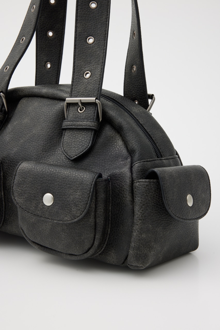 持つだけでトレンド感が出るカジュアルスタイルにぴったりなバッグ。ヴィンテージ感のあるフェイクレザーを使用し、かっちりとした形が今季らしさを演出。フロントやサイドにポケットを施し、マチも十分にあるので、見た目以上にモノが入るのもポイント。裏地は配色仕様になっていて、RODEOらしさを詰め込んだアイテムです。