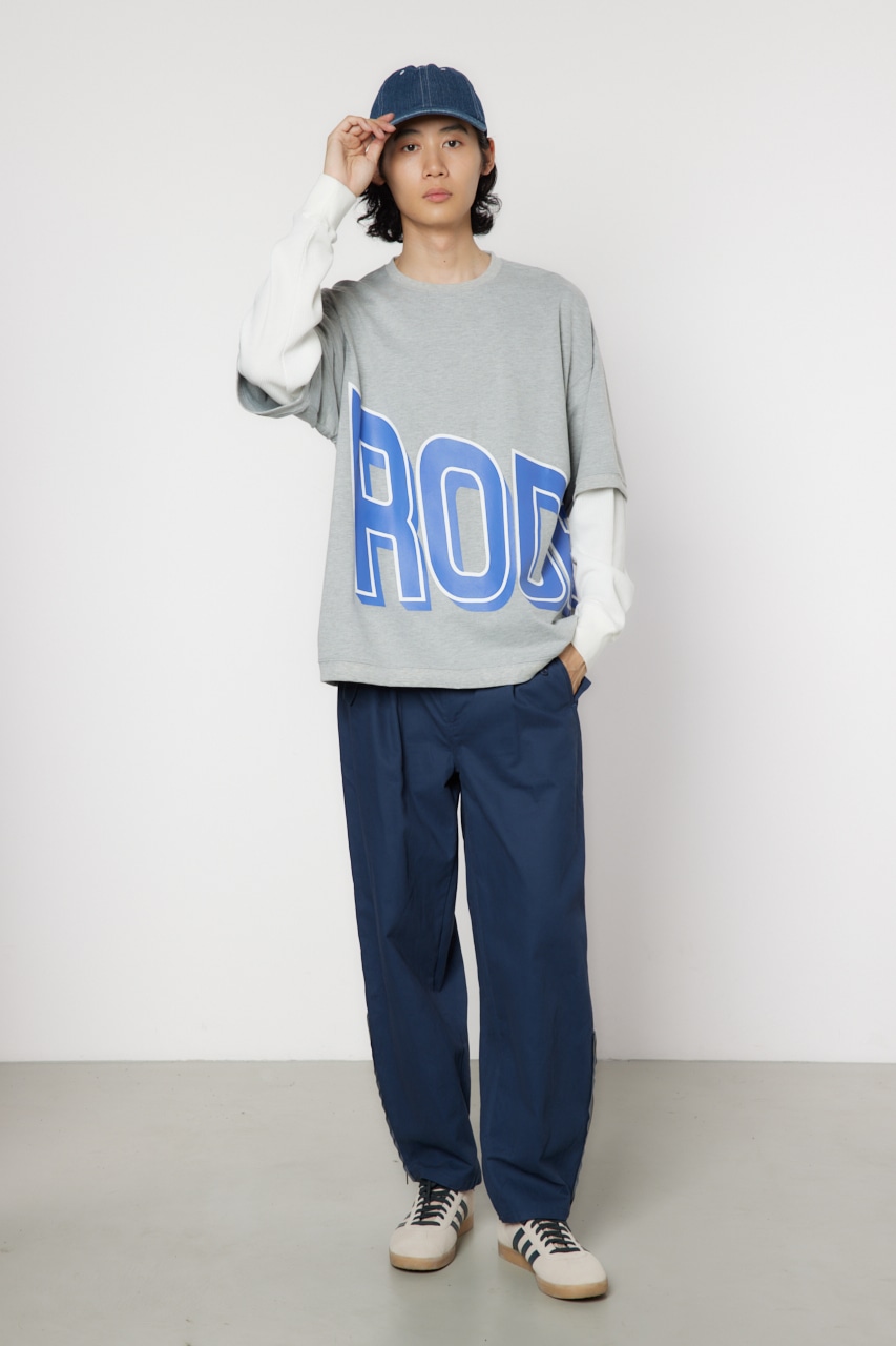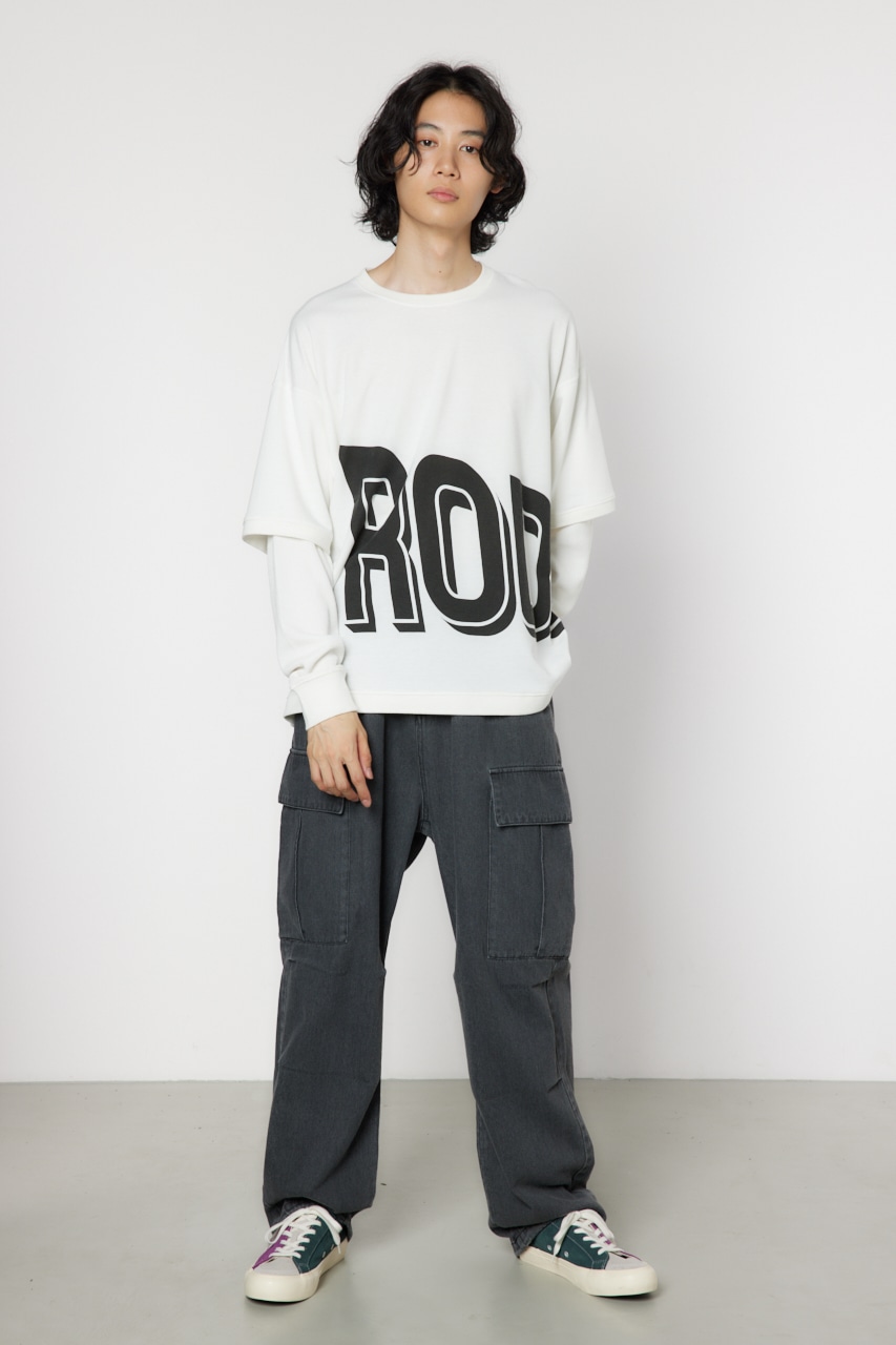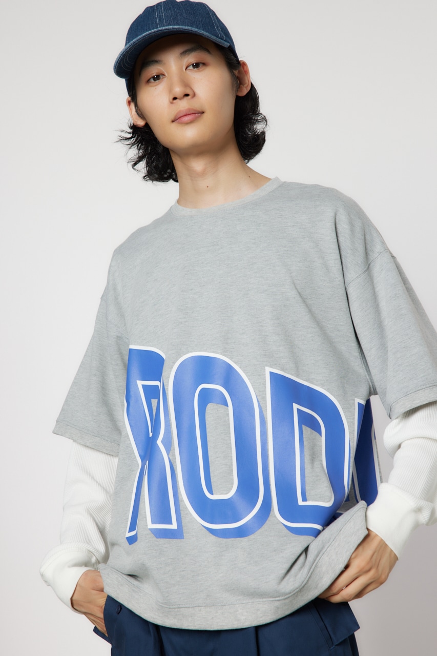 ミニ裏毛の半袖Tシャツとワッフル素材のロンTを重ね着したかのようなフェイクレイヤード仕様のトップス。大胆な配置のビッグロゴプリントが目を惹き、着用するだけでこなれたコーディネートが完成します。
