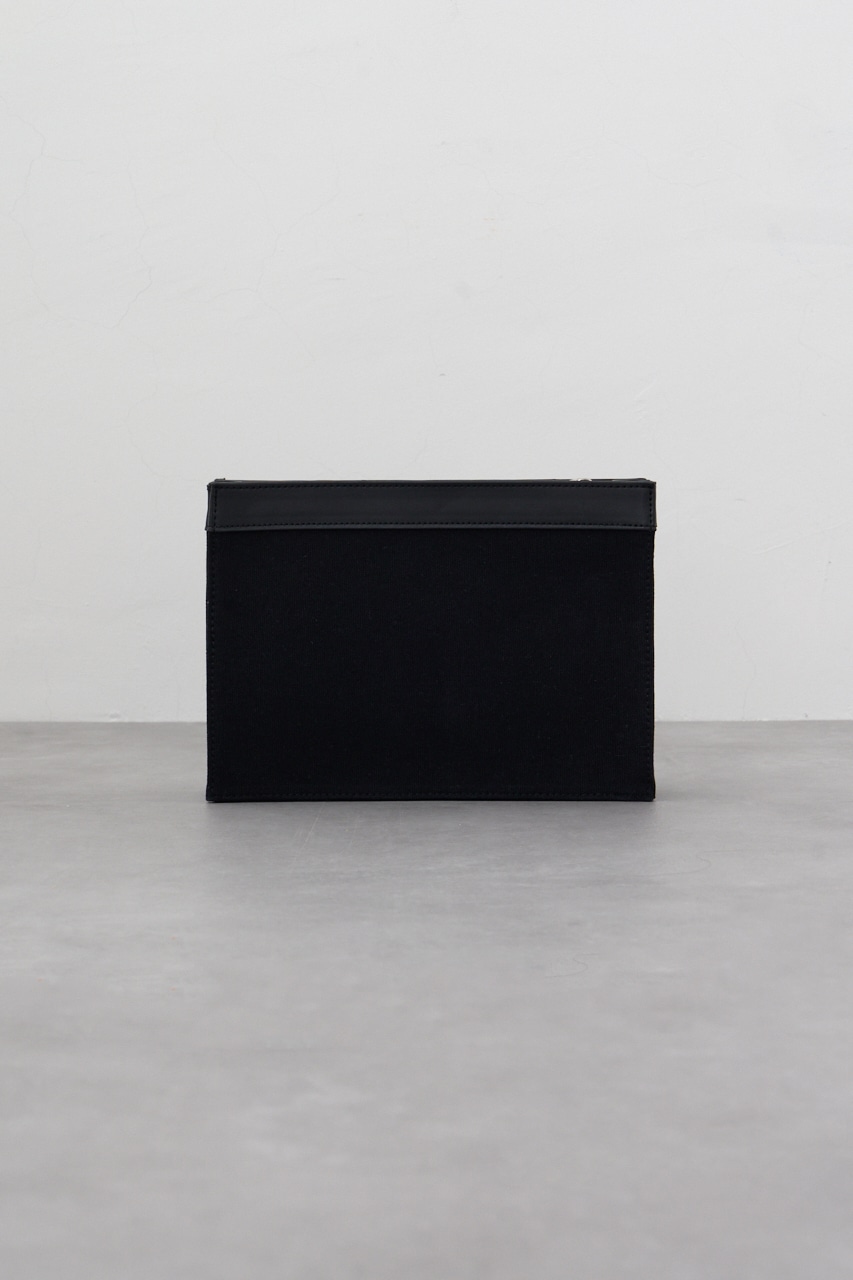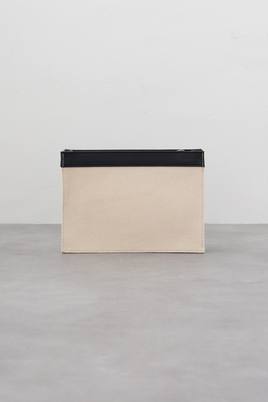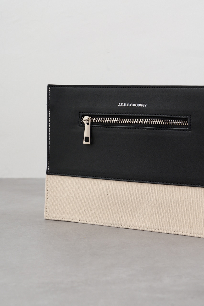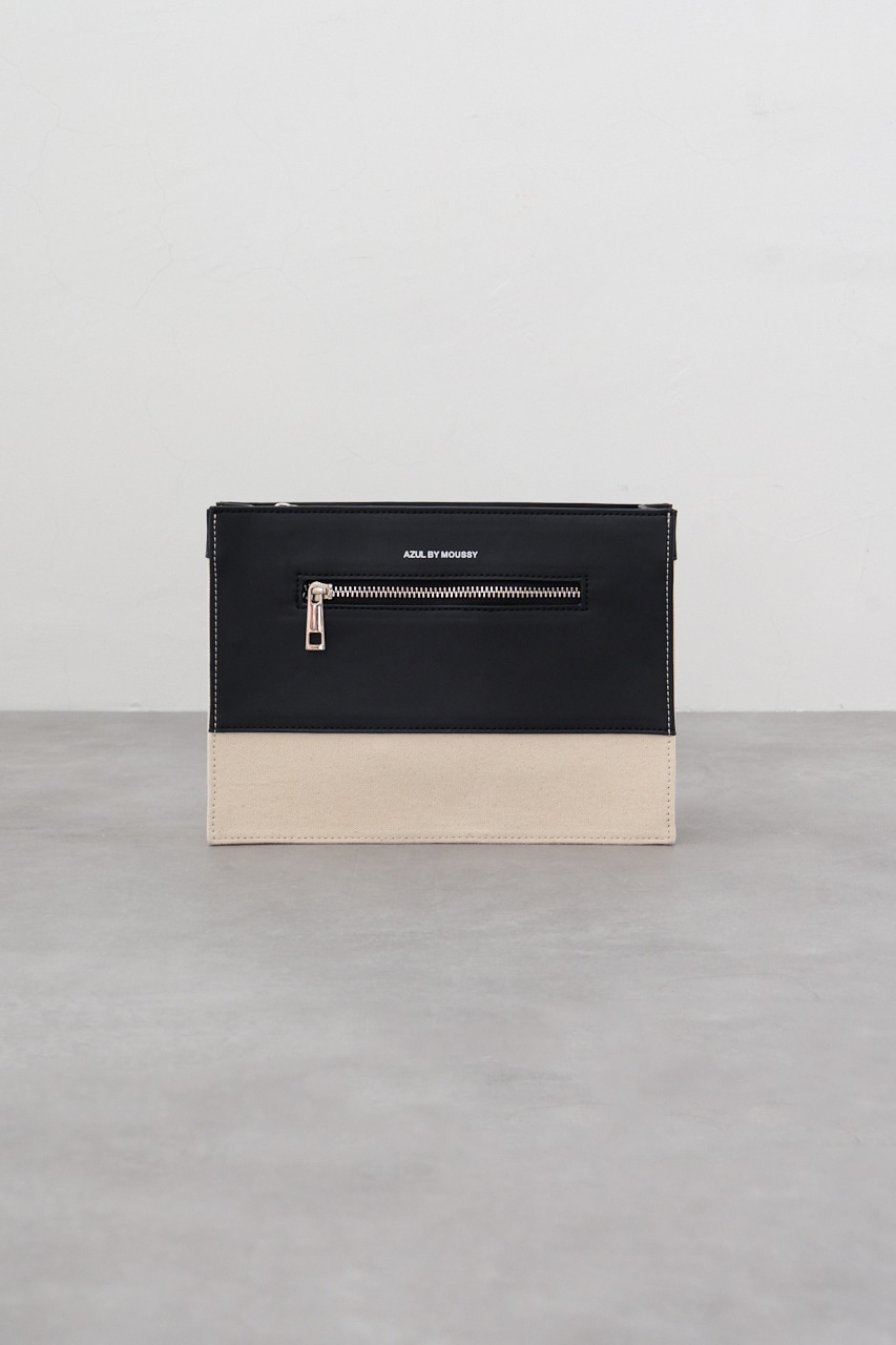 フェイクレザーとコットンの切替デザインになっているクラッチバッグです。