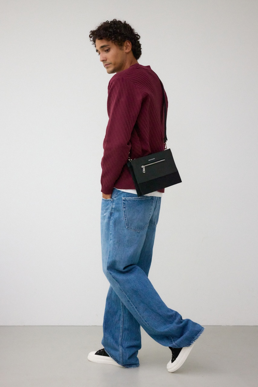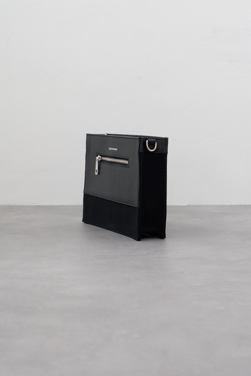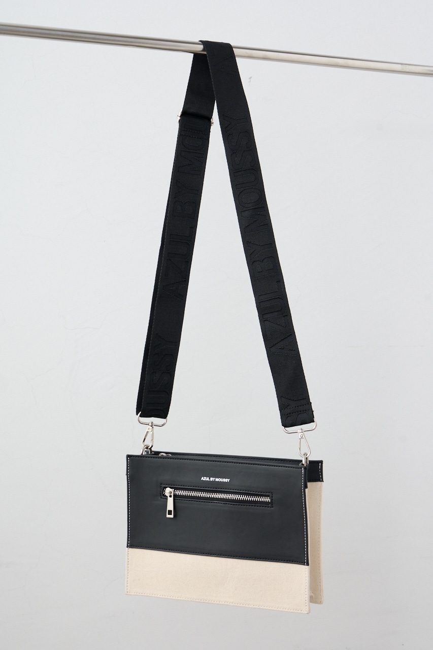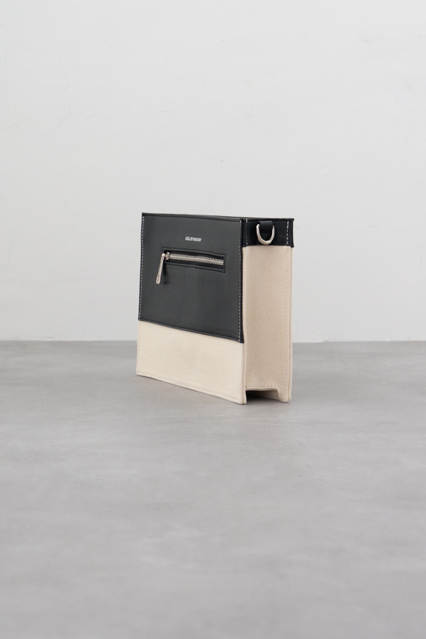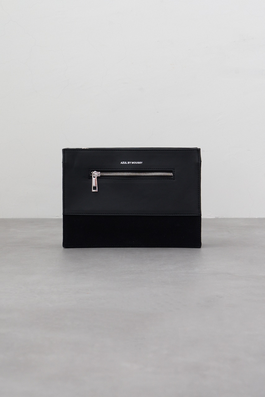 フェイクレザーとコットンの切替デザインになっているクラッチバッグです。
