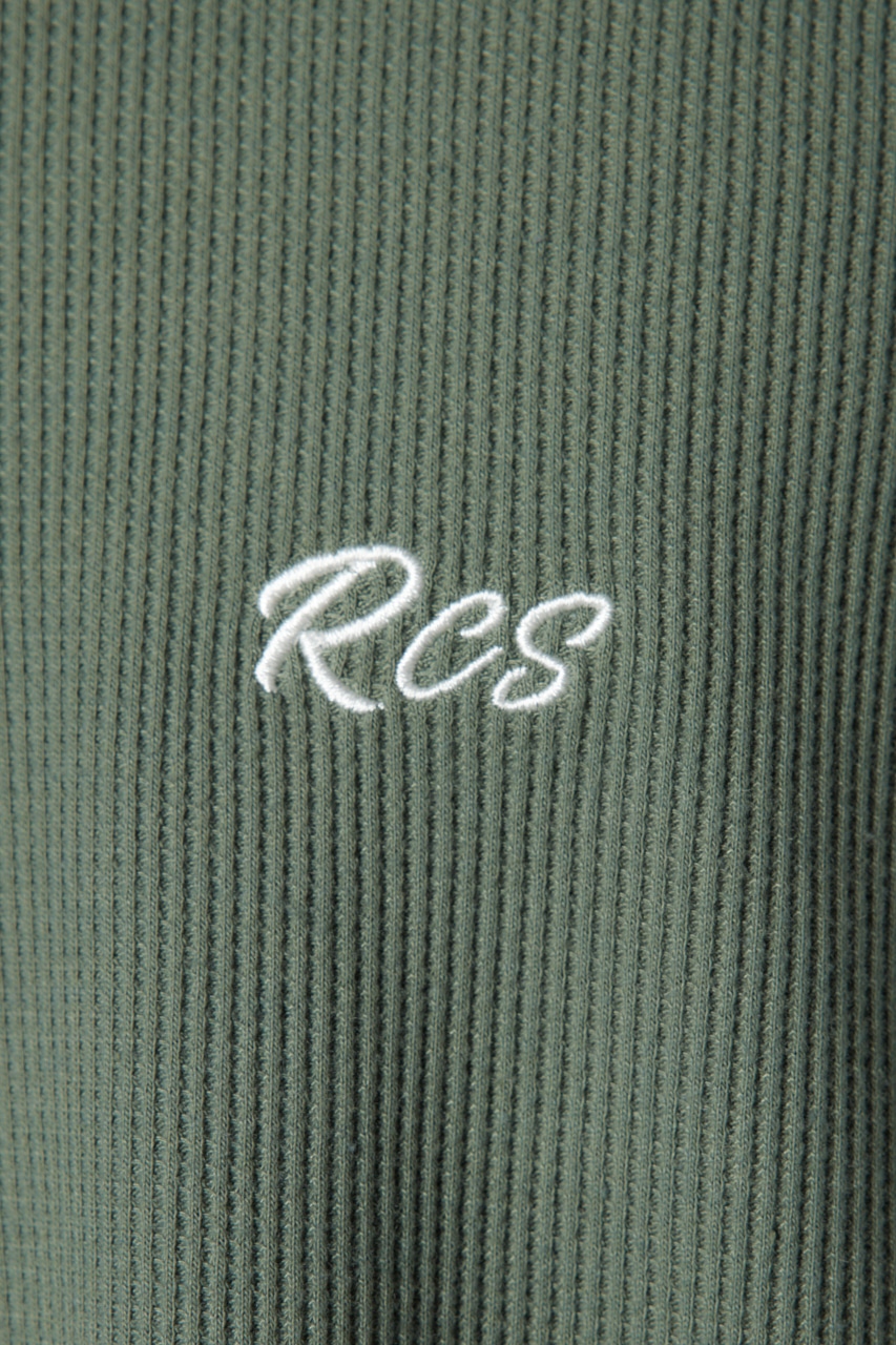様々なスタイルや重ね着にも重宝する万能アイテムのワッフルTシャツ。配色のステッチワークがポイント。