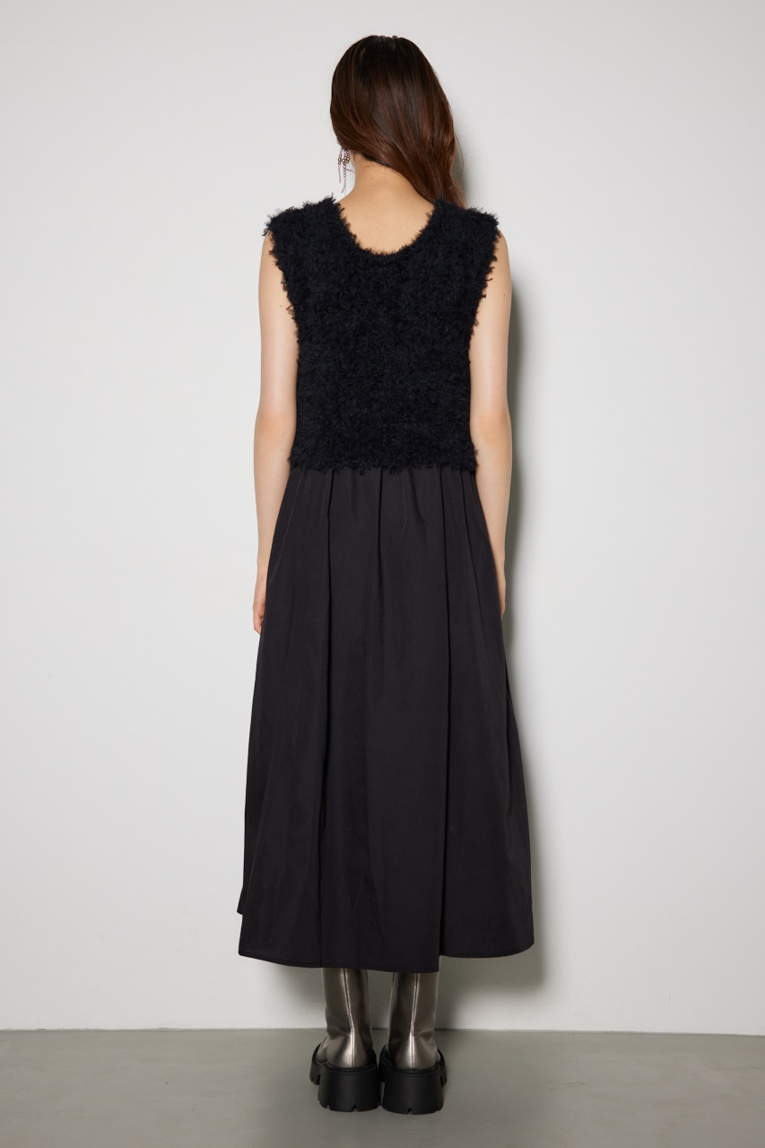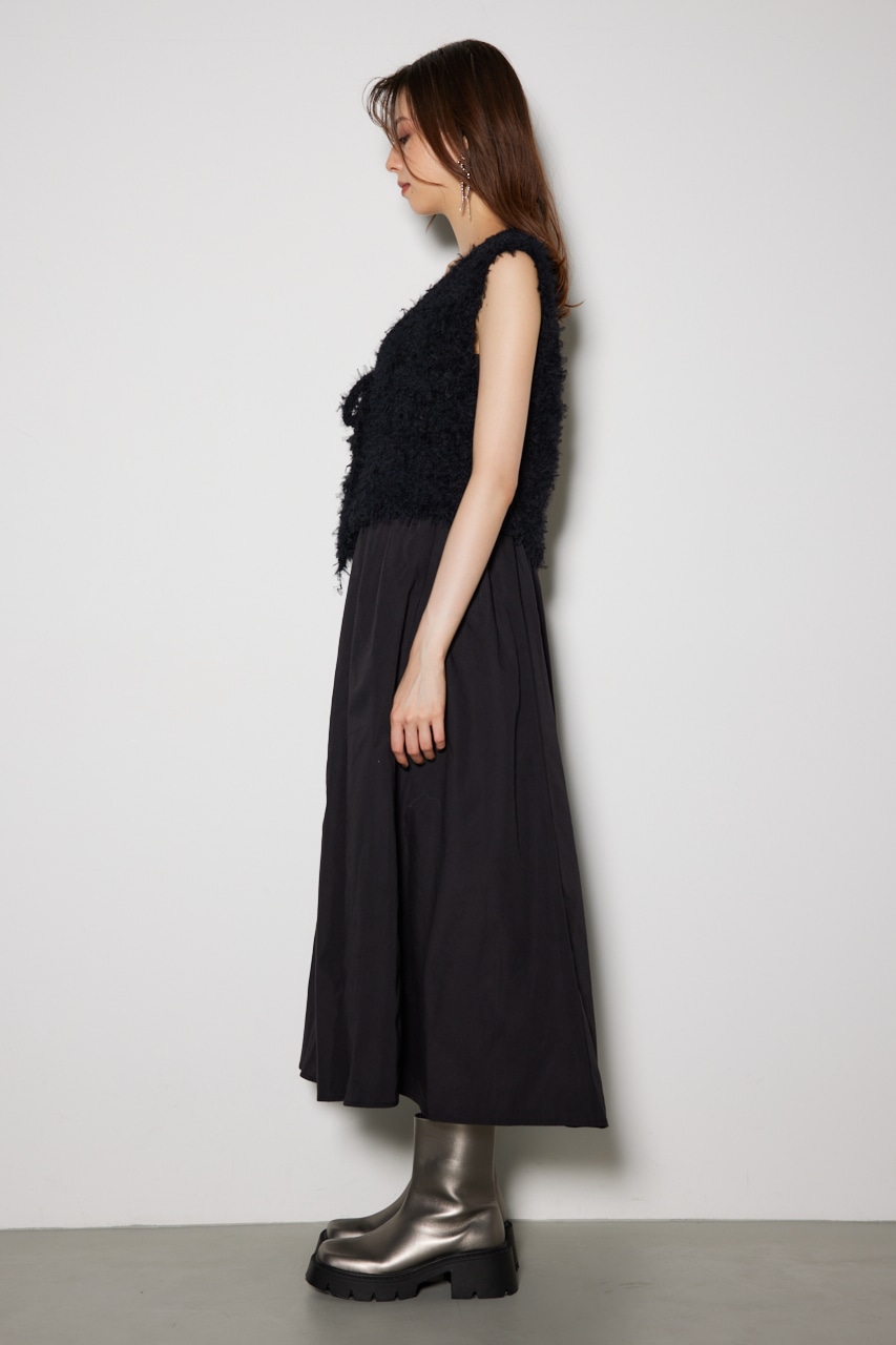 中のワンピースはキャミソール型のワンピースになっており、夏は1枚で着用可能です。ベストと合わせて着用することでシンプルながらお洒落な雰囲気をレイヤードで楽しめます。