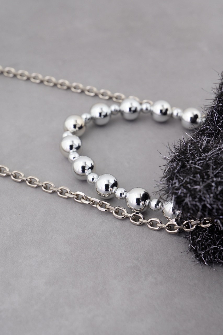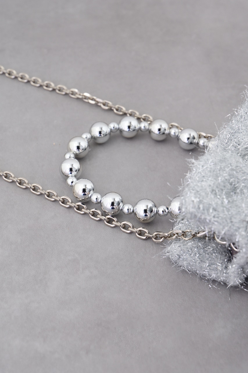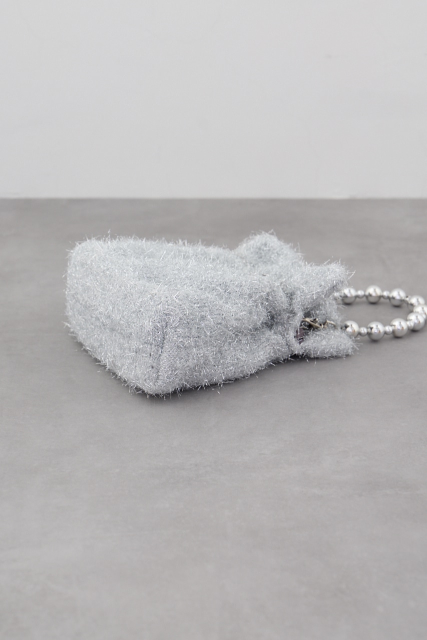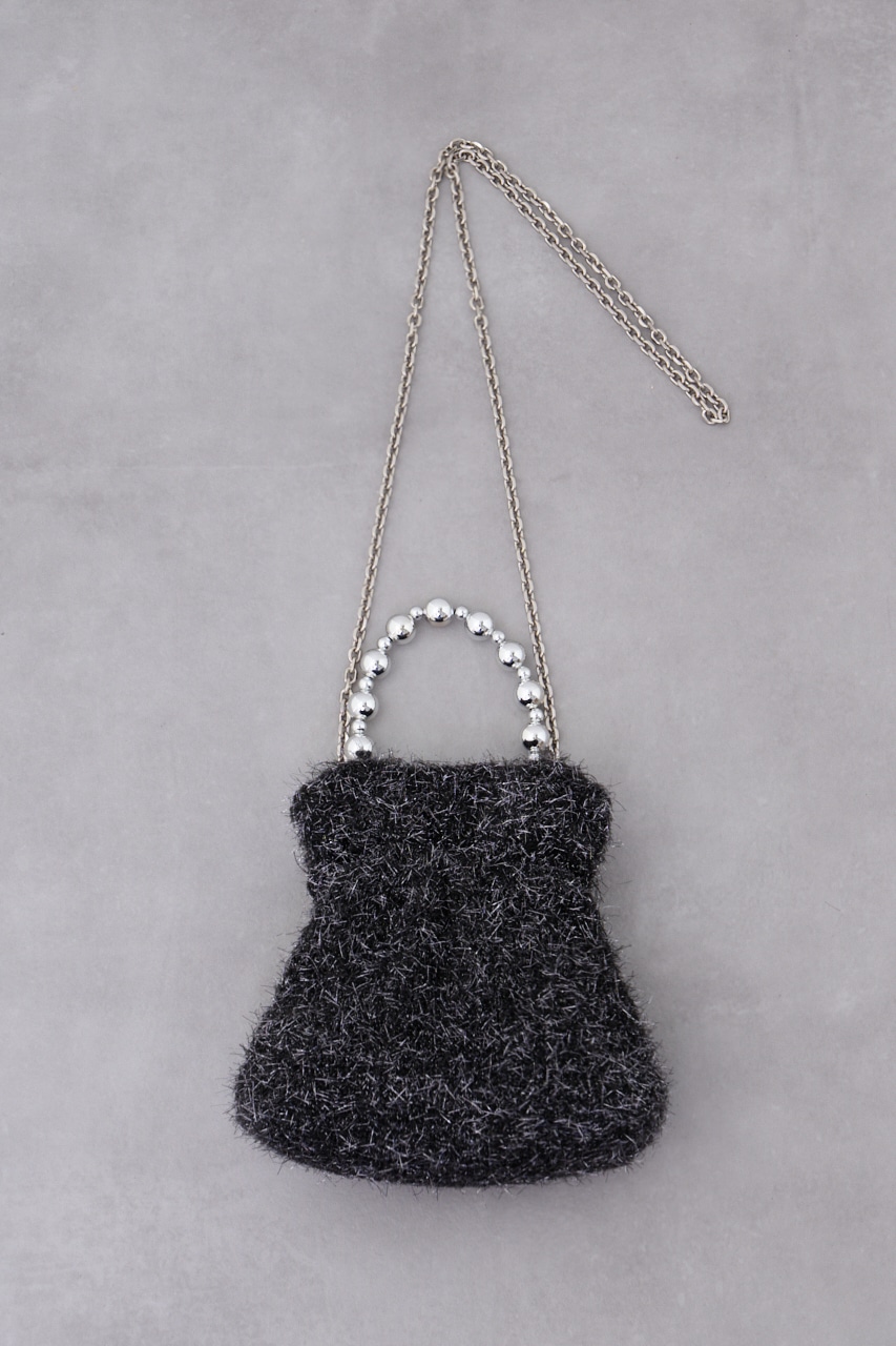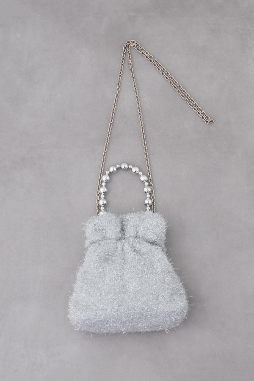 大きなメタリックのメタルボールのハンドルがアクセントになった2wayポシェットです。