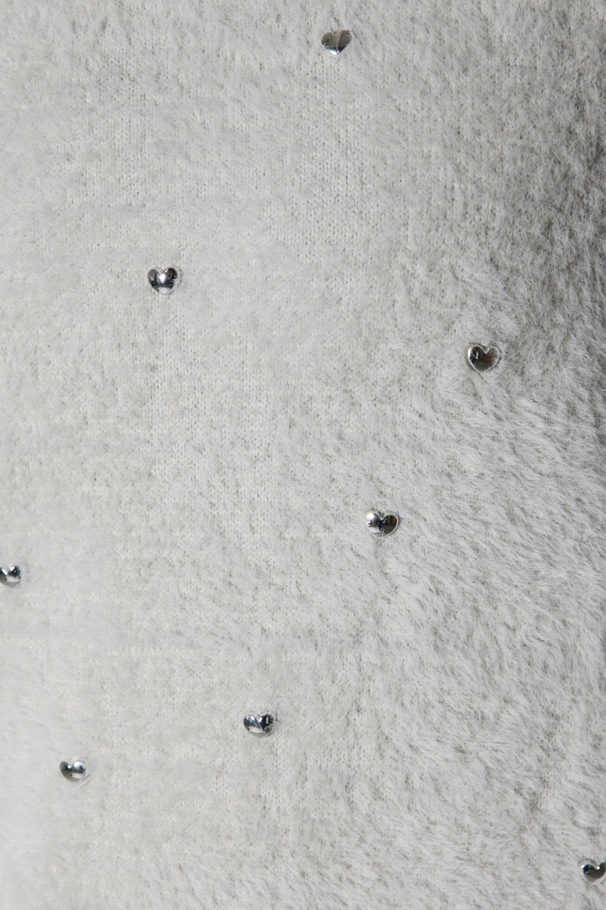 秋冬に着たくなるシャギーニットも、ハートのスタッズ付きで、他にないデザインがポイント。