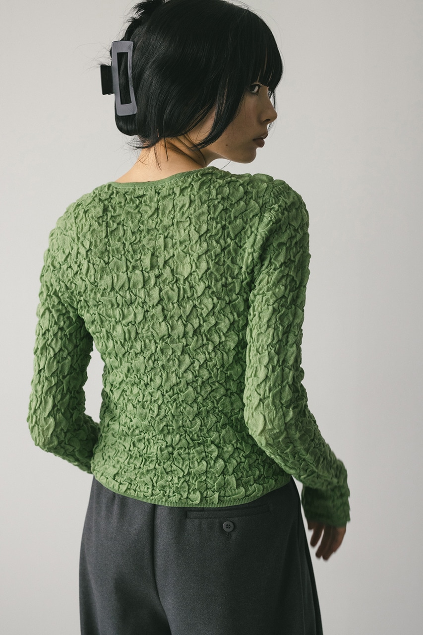 2枚構造のジャガード編みで仕上げた凹凸感が可愛いコンパクトショートニット。