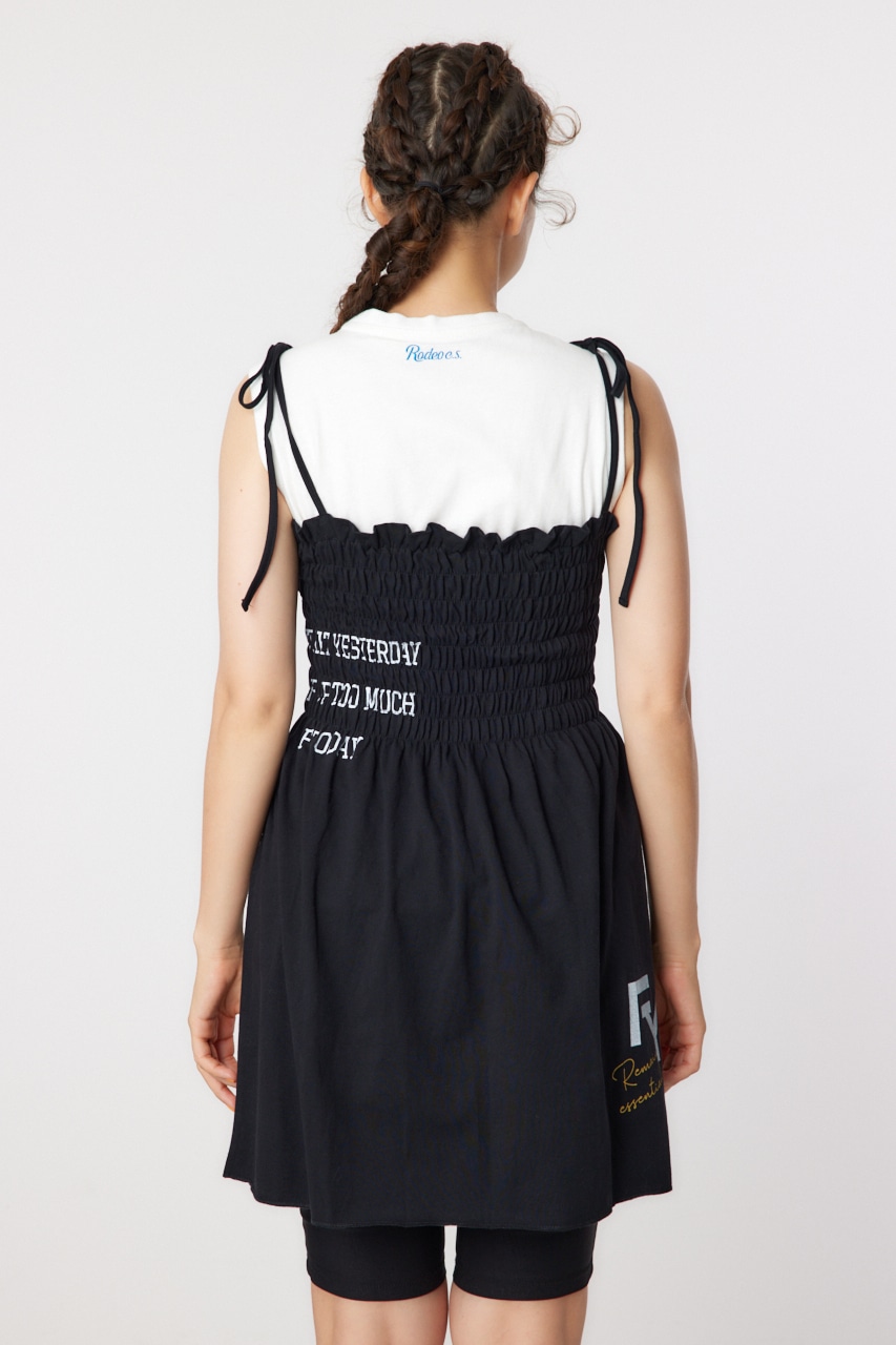 ヴィンテージ感ある様々なグラフィックを散りばめたデザインキャミソール。暑い夏は1枚で着用するのもおすすめ。秋冬はコンパクトなシアートップスや、ニットなどの上からレイヤードするスタイリングがイチオシ。腰回りが隠れるチュニック丈なのも嬉しいポイント。