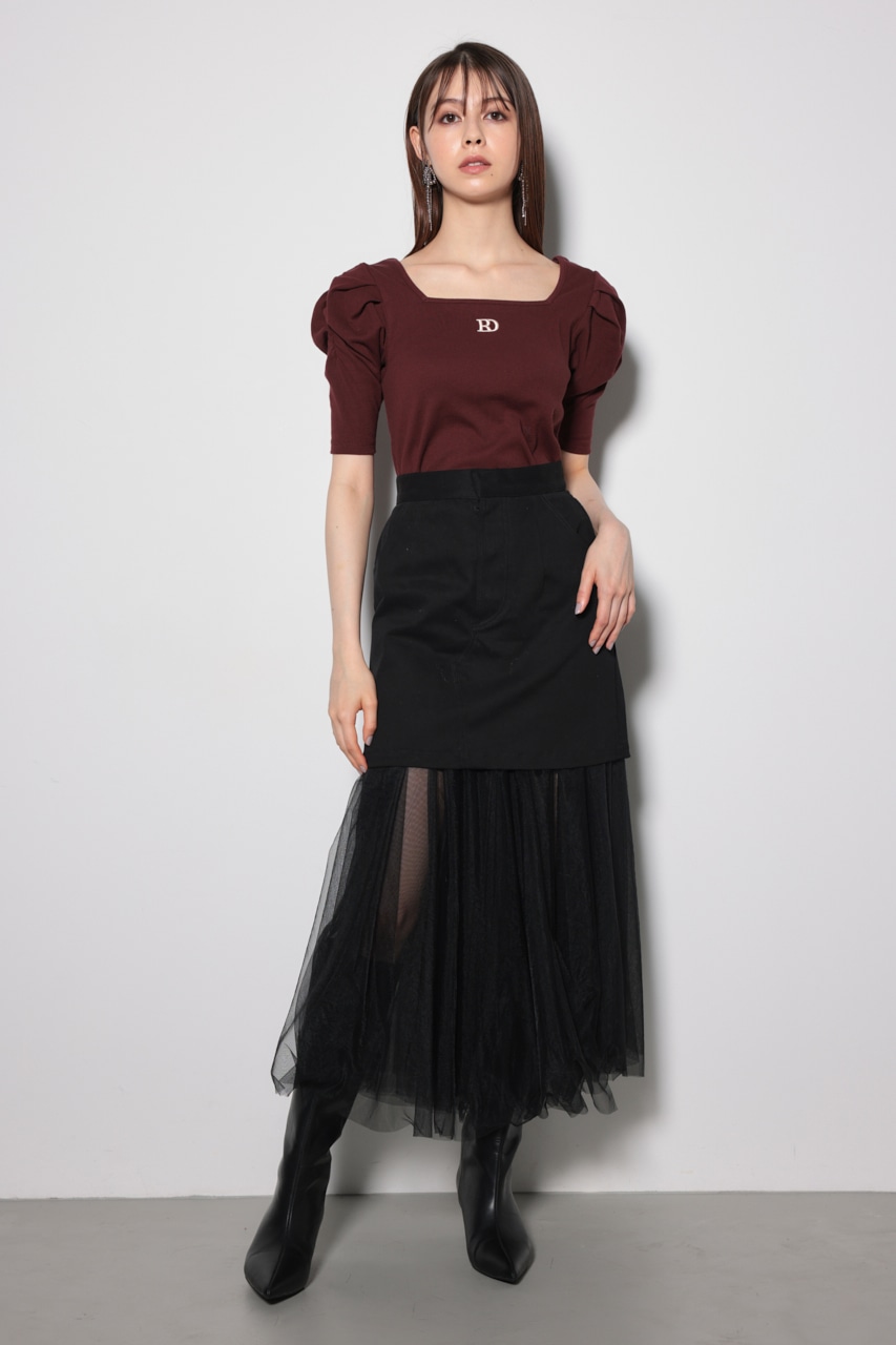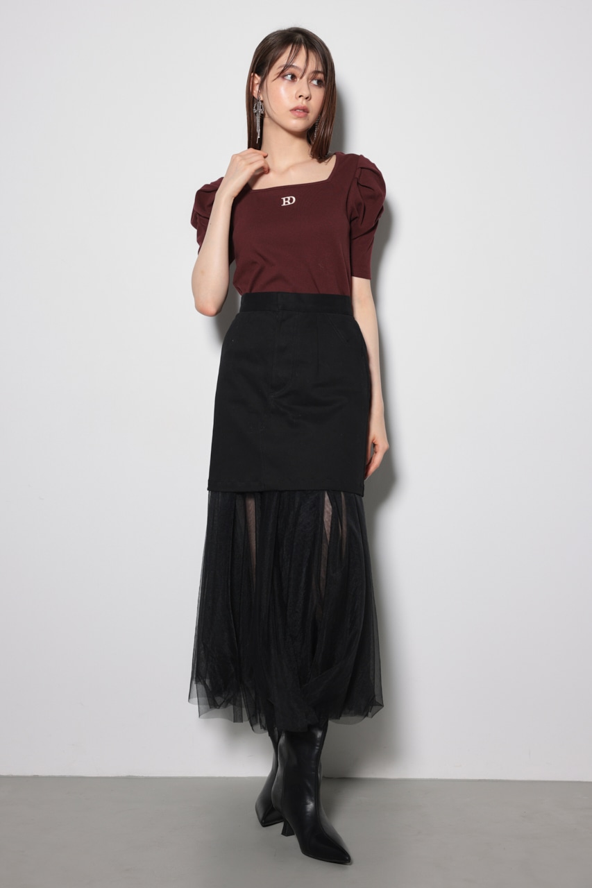 リバーシブルチュールジャストウエストスカート