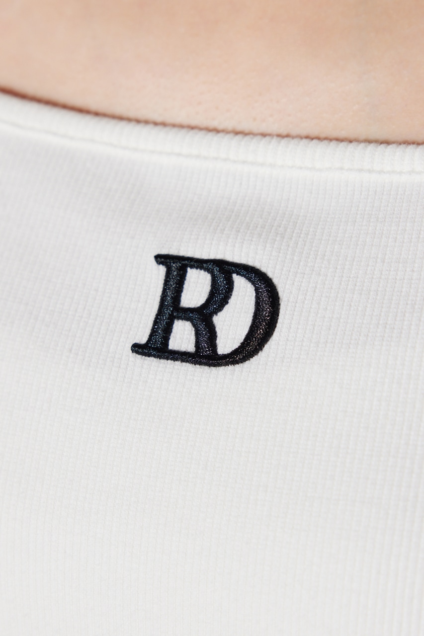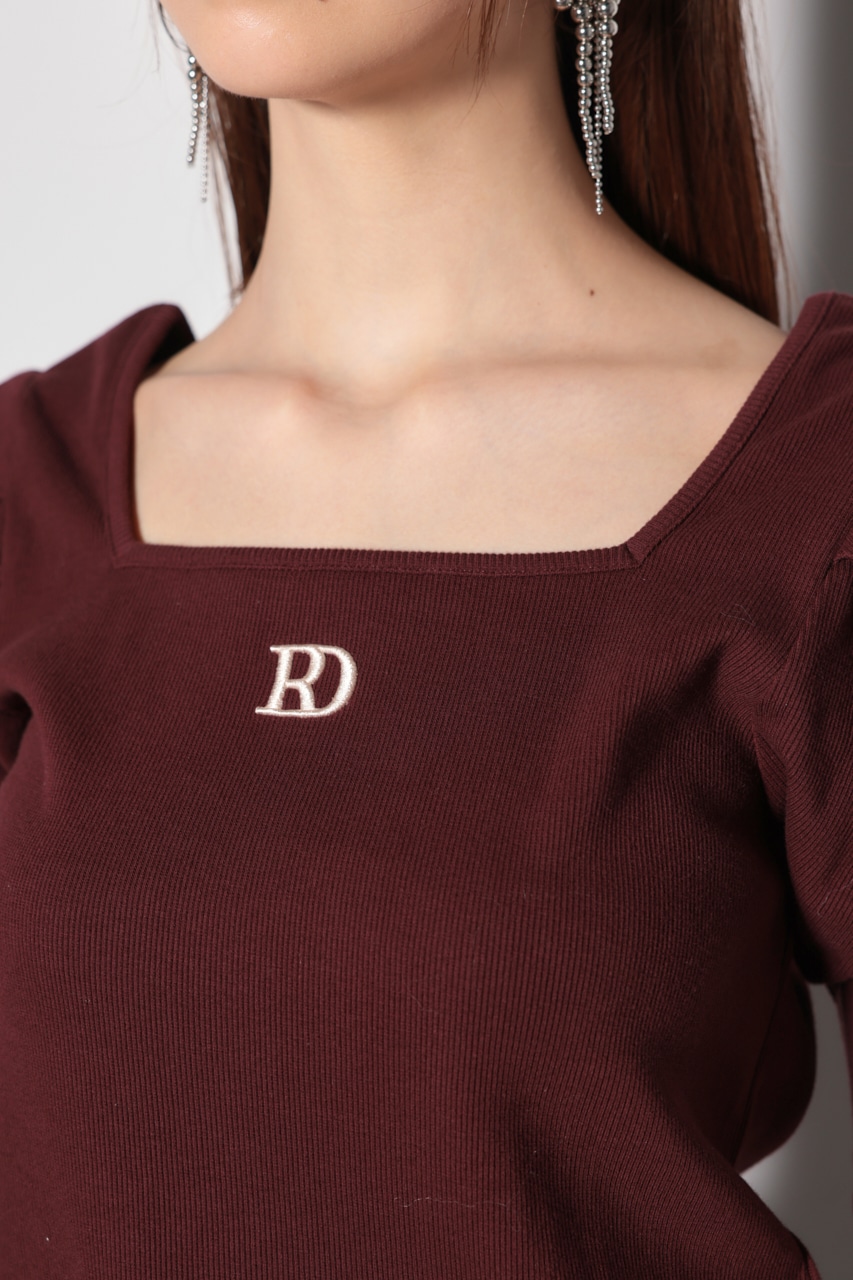 リブ素材を使用したカットソーは、女性らしさを強調するパワーショルダーがデザインポイント。