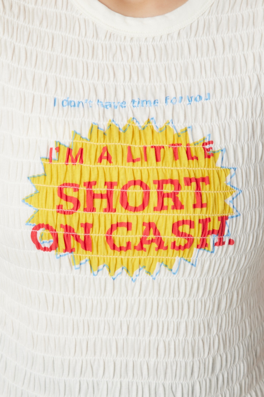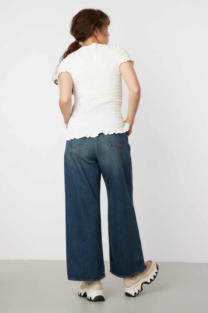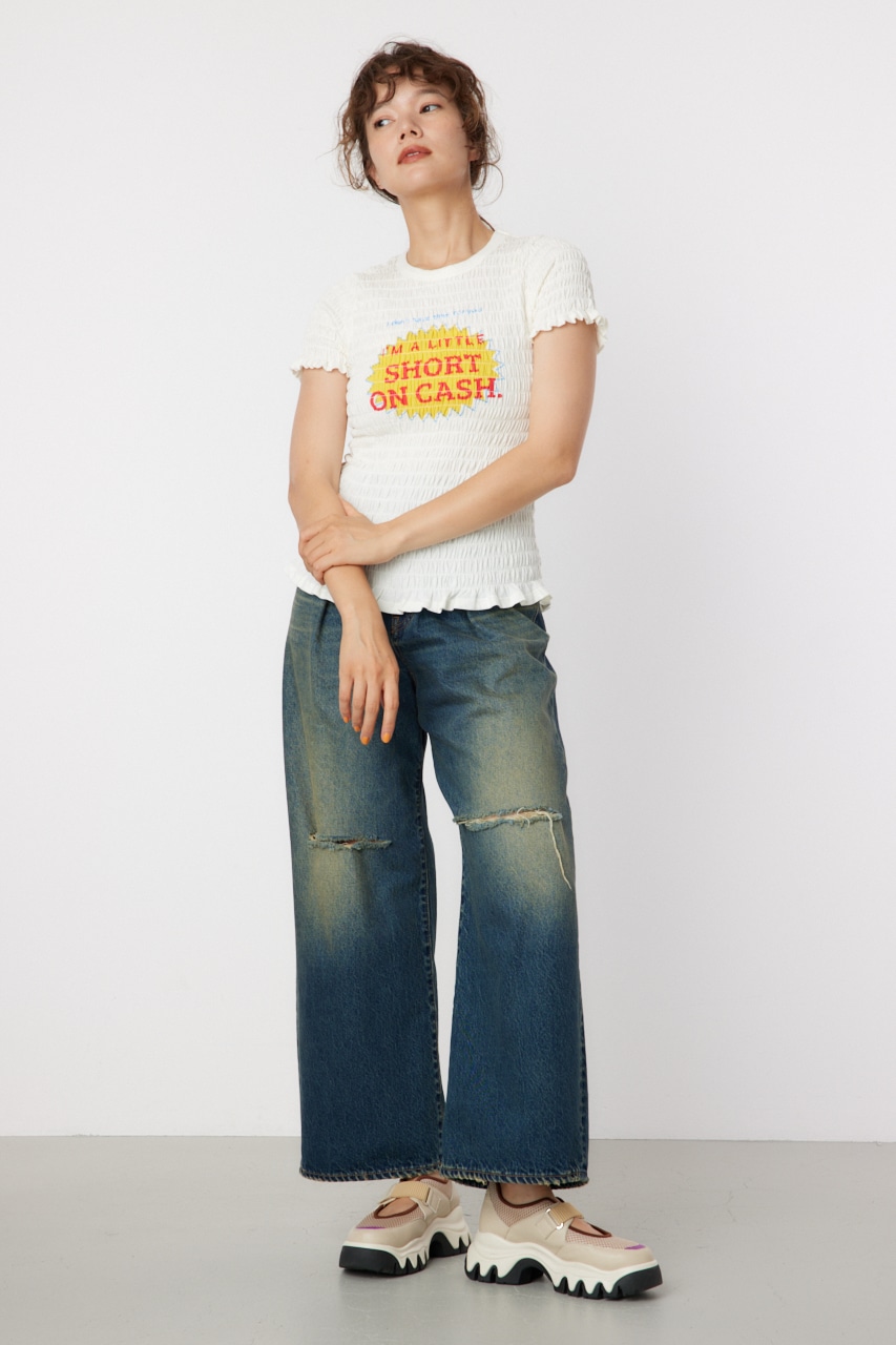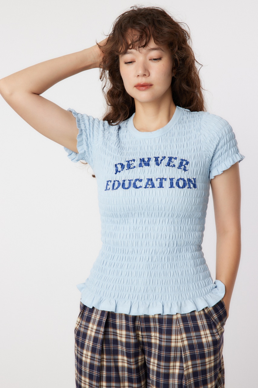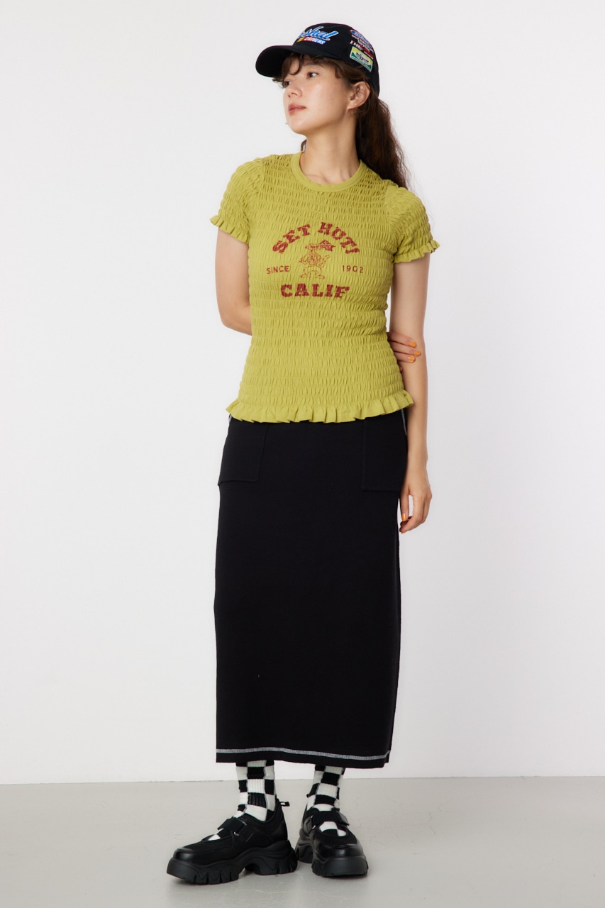 生地にシャーリング加工を施したことで、伸縮性と表面感のあるTシャツ。 柔らかな生地を使用しているので、滑らかな肌触りとストレッチ性を兼ね備えたアイテムに。カラーによって違うそれぞれ違うプリントなのもポイント。シンプルになりがちなTシャツスタイルや気分を変えたい時におすすめ。程よく体に沿うデザインなので、ワイドシルエットのパンツと相性抜群です。