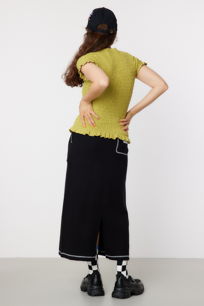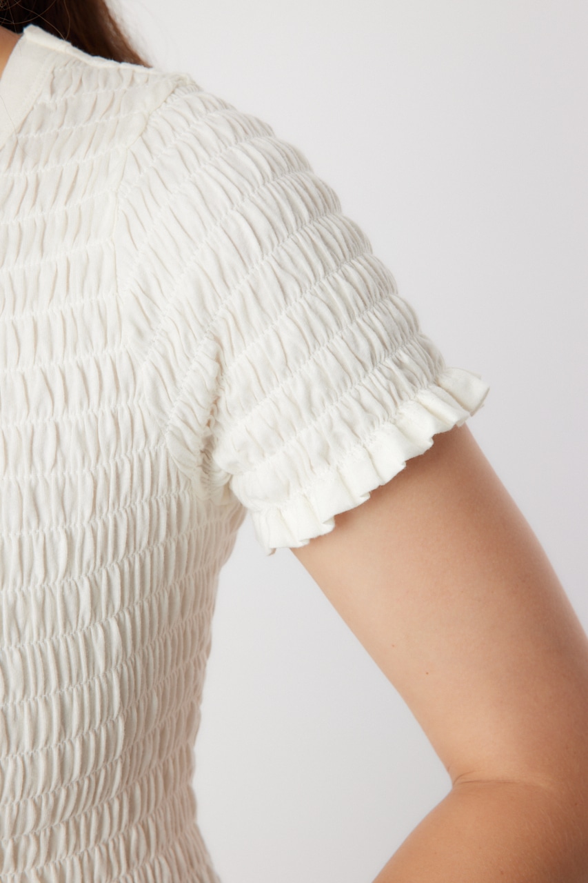 ※生地にシャーリングを寄せた素材の特徴の上、プリントサイズ、位置、寸法など製品毎に個体差があります。