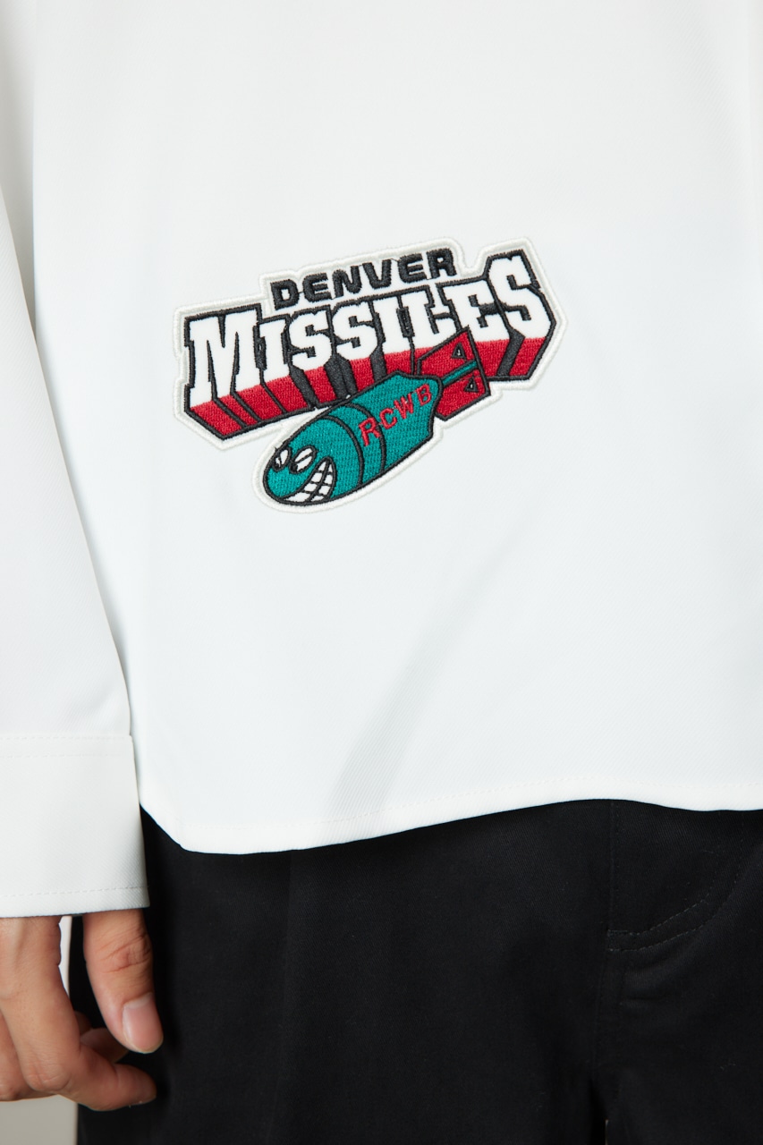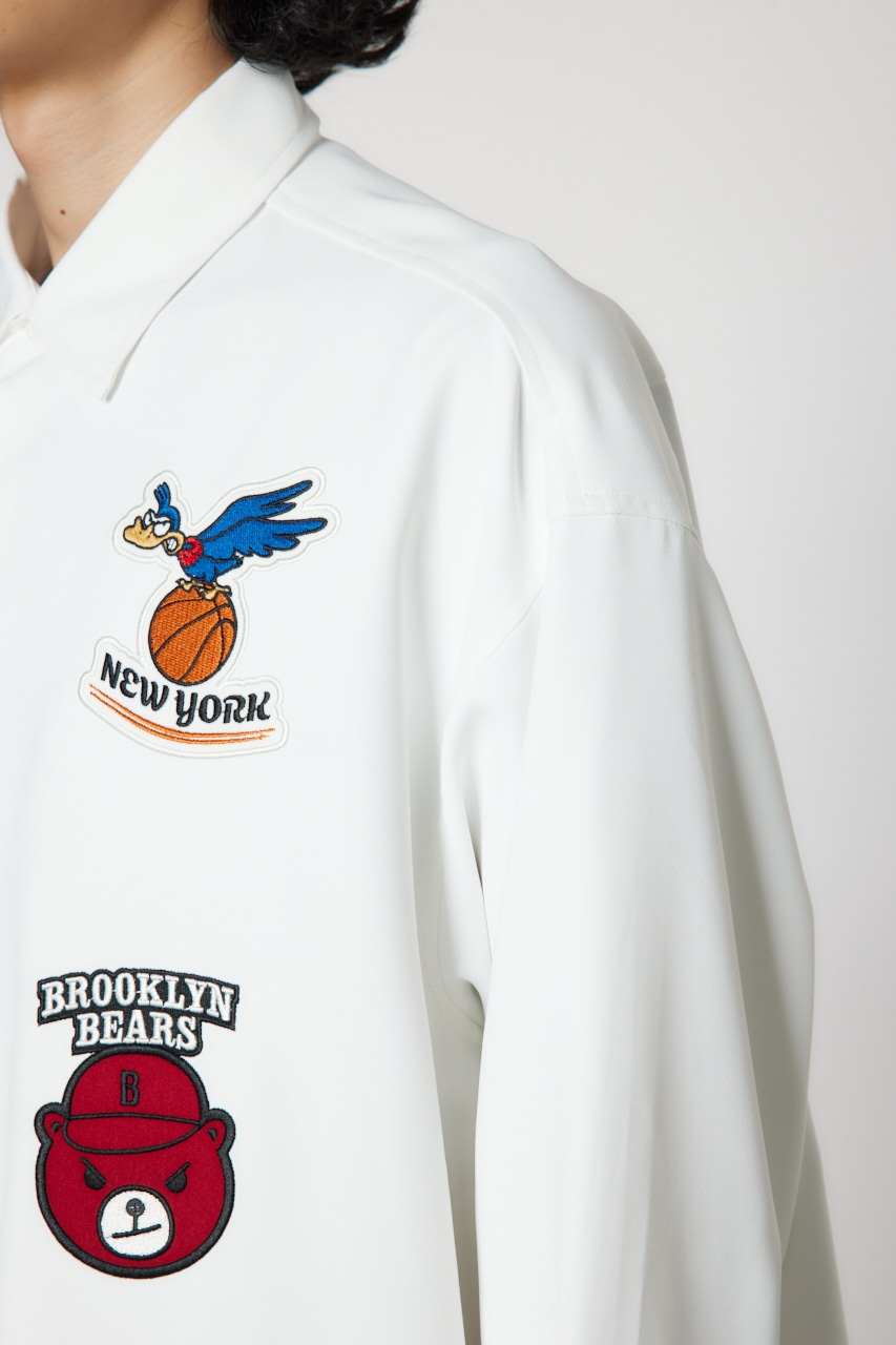 フロントに架空のチームのデザインワッペン刺繍を施した長袖シャツ。柔らかいツイル素材を使用しています。やや大きめのシルエットなので、サラッと羽織ったり、前を閉めてインナーとしても着用できるアイテムです。