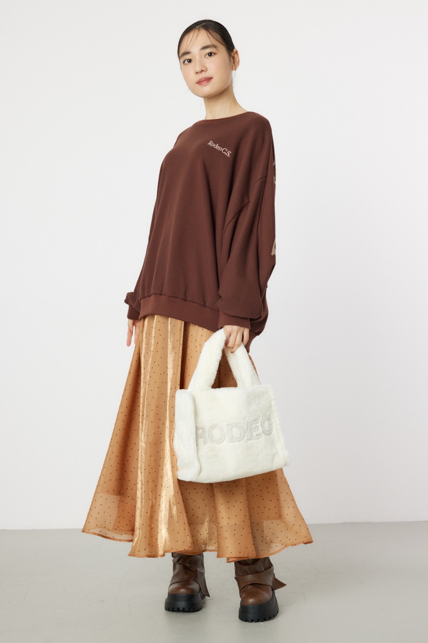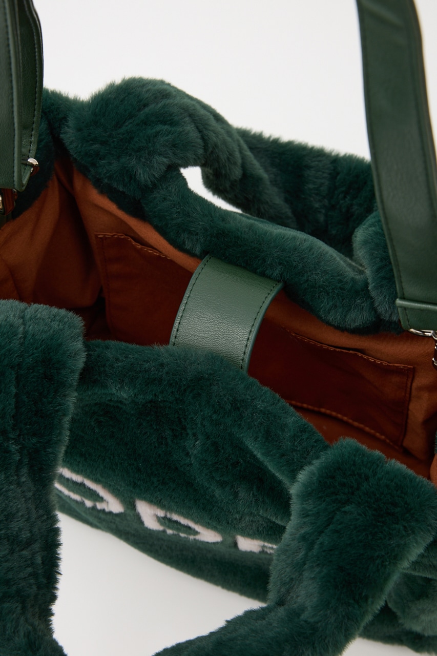 ふわふわの柔らかな肌触りの良い素材に、ブランドロゴが入ったエコファートートバッグ。ベーシックなブラック、可愛いアイボリー、クールなダークグリーンの3色展開。しっかりとしたマチで、バッグの中身が出し入れしやすいのも嬉しいポイント。ちょっとした小物が入る内ポケット付き。取り外し可能なショルダーストラップも付属しているので、シーンに合わせて使えるアイテムです。