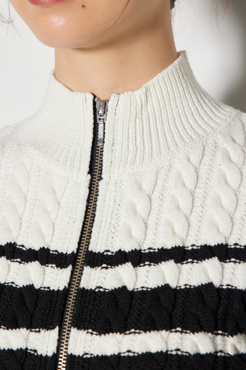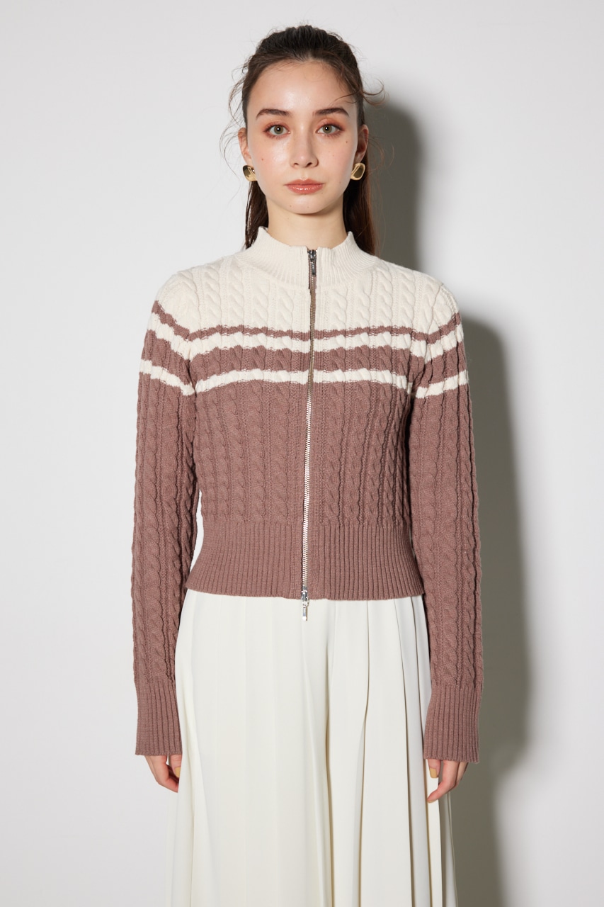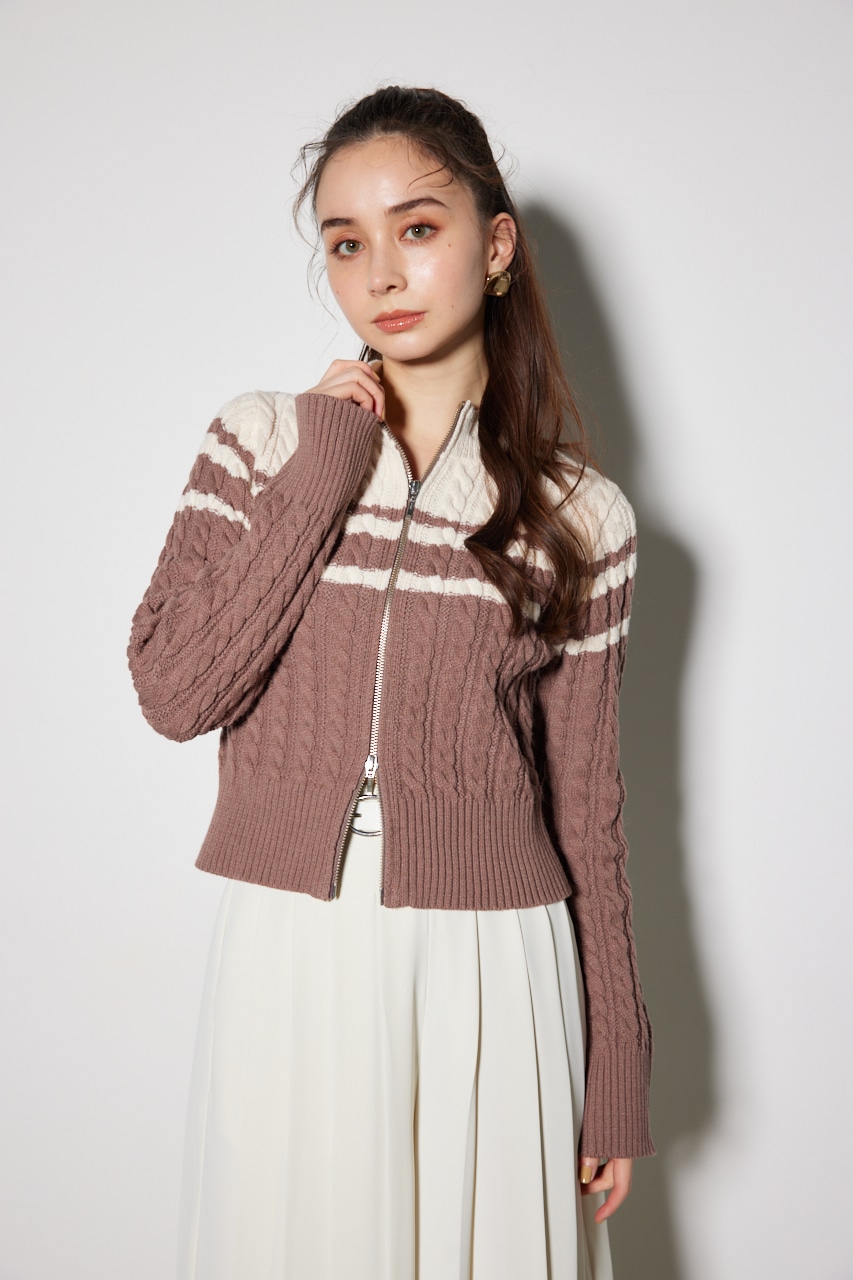 トレンドのトラックジャケットにケーブル編みを取り入れてニットで表現。