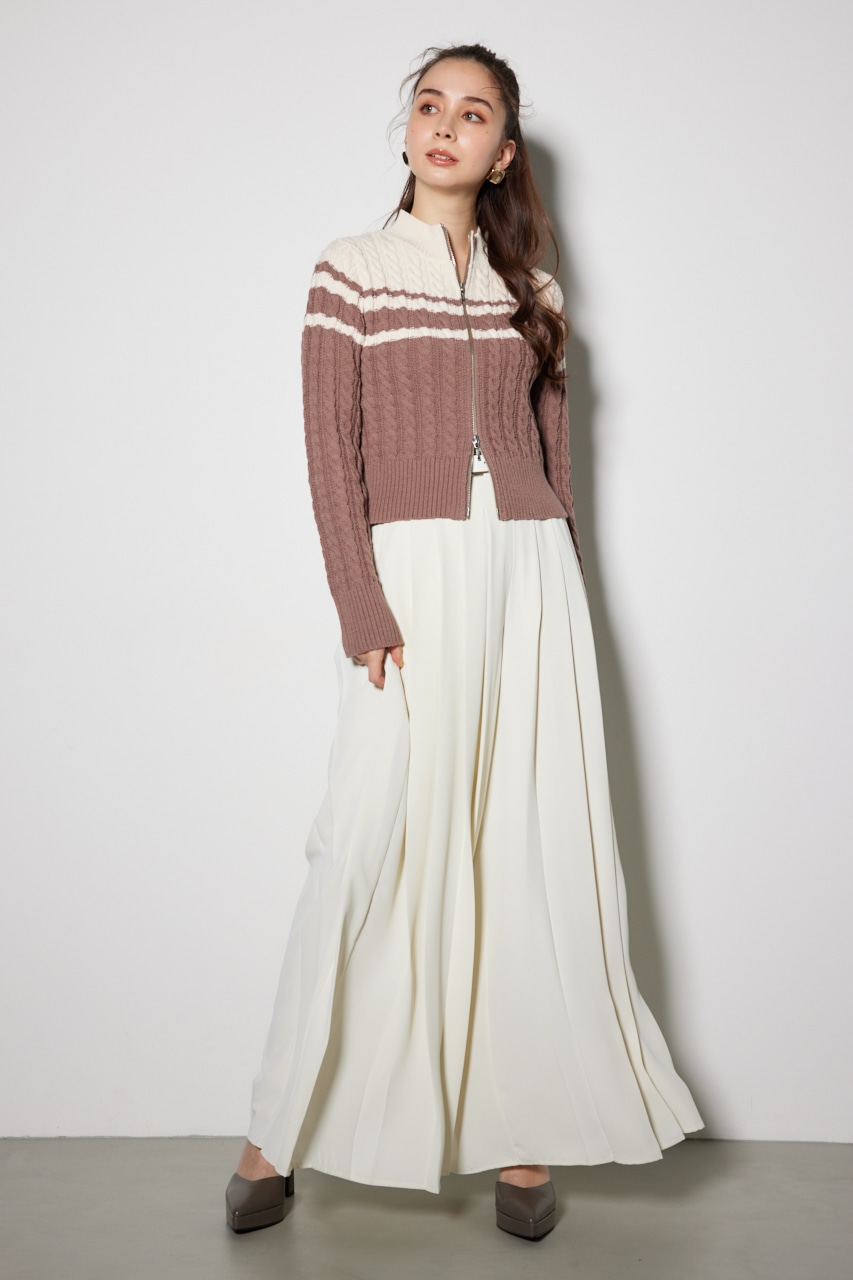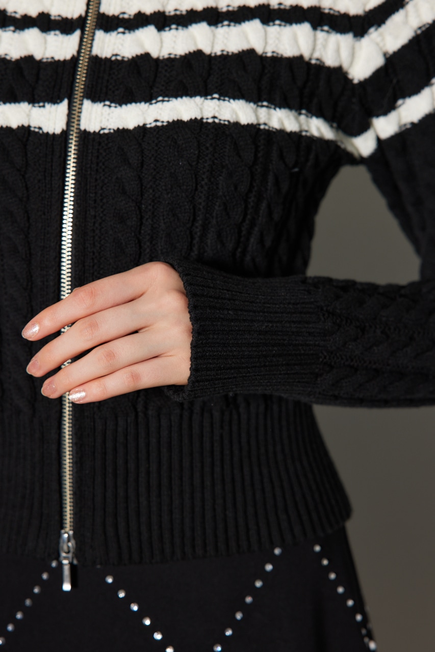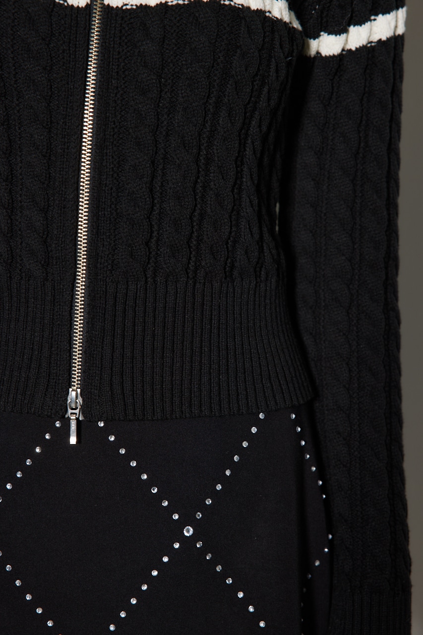 トレンドのトラックジャケットにケーブル編みを取り入れてニットで表現。