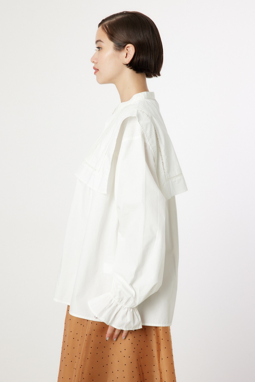 大き目のセーラーカラーが目を惹くブラウス。衿部分は取り外し可能な2WAY仕様のアイテム。存在感のあるセーラーカラーは小顔効果もあり、顔周りを華やかに彩ってくれます。オーバーオールに合わせるのがおすすめ。